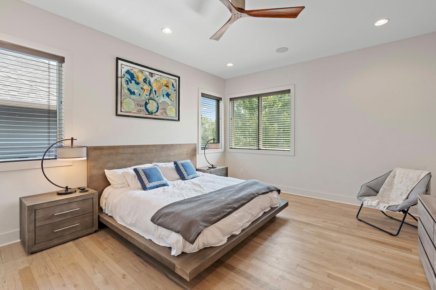 Rare Opportunity to Own a Ryan Thewes Original! Originally completed in 2018 and thoughtfully maintained, this striking contemporary home blends modern architecture with timeless livability. Flooded with natural light, the open floor plan offers seamless flow for entertaining, complete with beverage bars on two levels. Designed with convenience in mind, it comes pre-wired for audio and security, features HEATED FLOORS IN MASTER BATH, a tankless water heater, and includes a 270V garage outlet ready for your electric vehicle. Nestled in one of Nashville’s most desirable walkable communities, you’ll be just steps from 12 South, Belmont, Vanderbilt, and The Gulch. A sophisticated balance of design, function, and location—this is Nashville living at its finest.