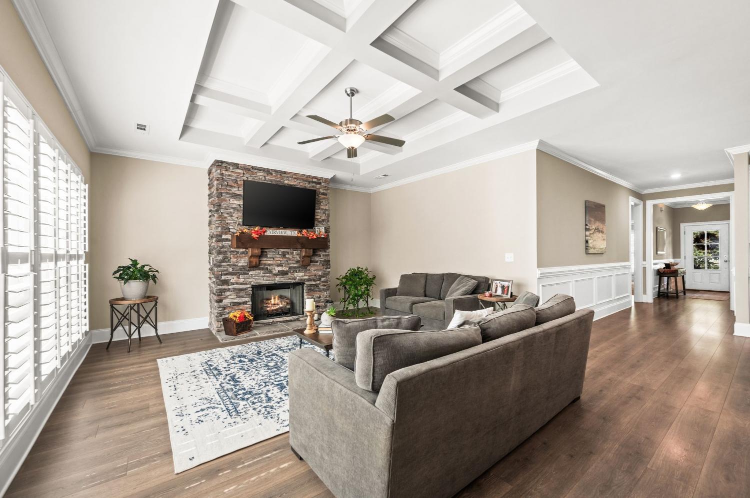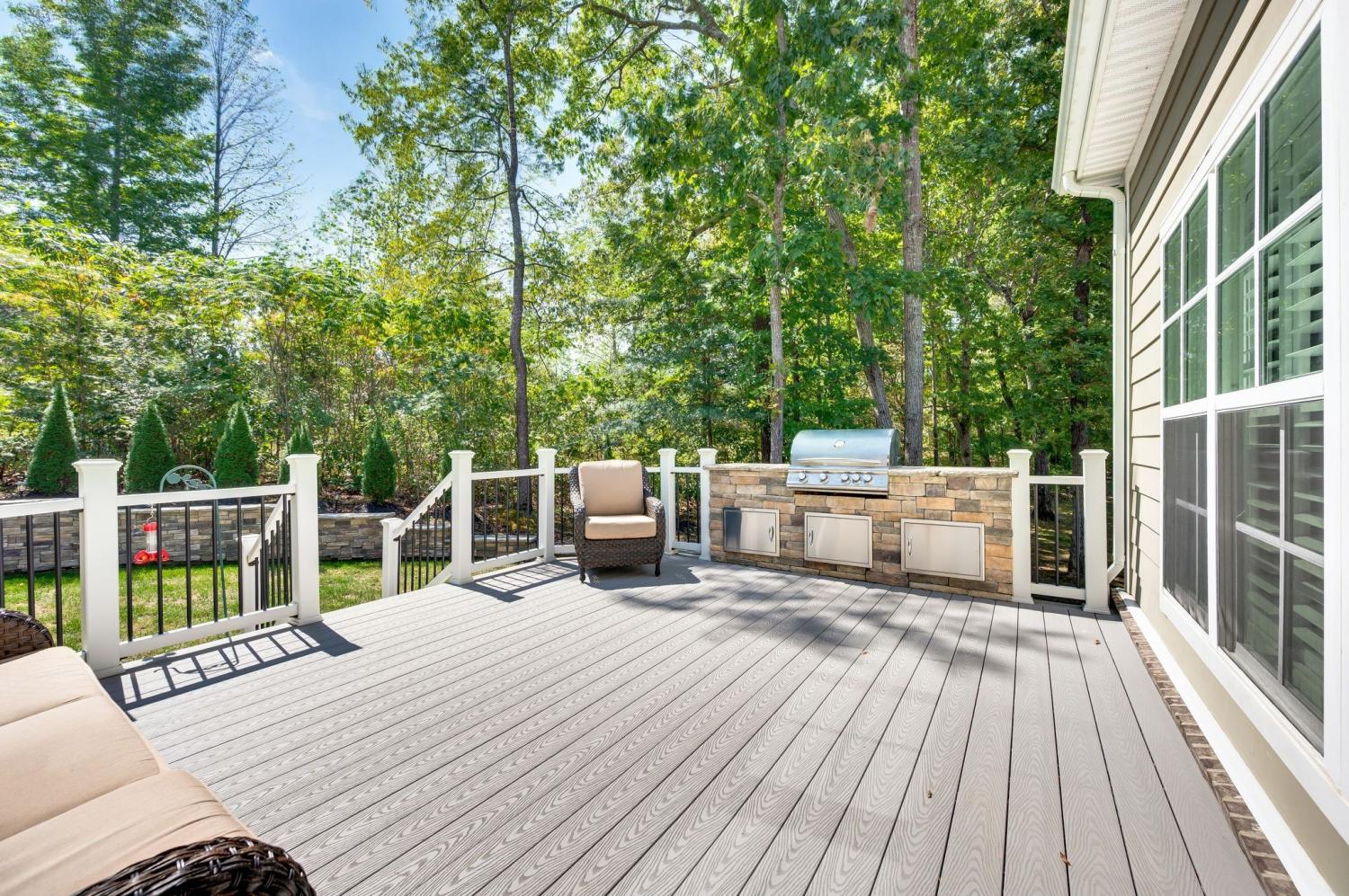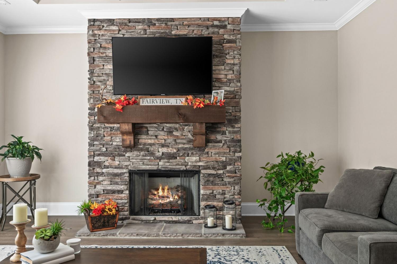 Quality Regent home built in 2020, perfectly situated on a private .98-acre lot with mature trees and professional landscaping. Designed for main-level living, this home also offers an upstairs bonus room with a full bath and a large unfinished storage space. The sellers have thoughtfully enhanced the property with an extended concrete driveway, a retaining wall, a screened-in porch with stamped concrete flooring, a Trex deck, and a fully equipped outdoor kitchen with a gas grill and warmer. A storage shed remains for added convenience. Inside, you’ll find plantation shutters, an open floor plan, and a great room with a stacked-stone gas fireplace and coffered ceiling. The gourmet kitchen boasts stainless steel appliances, quartz countertops, tile backsplash, a large island, and double ovens. The spacious laundry room includes a sink. Additional highlights include a 2-car side-entry garage and NO HOA. Zoned for highly regarded Williamson County Schools, this home is located just minutes from Franklin and only 30 minutes to Nashville.