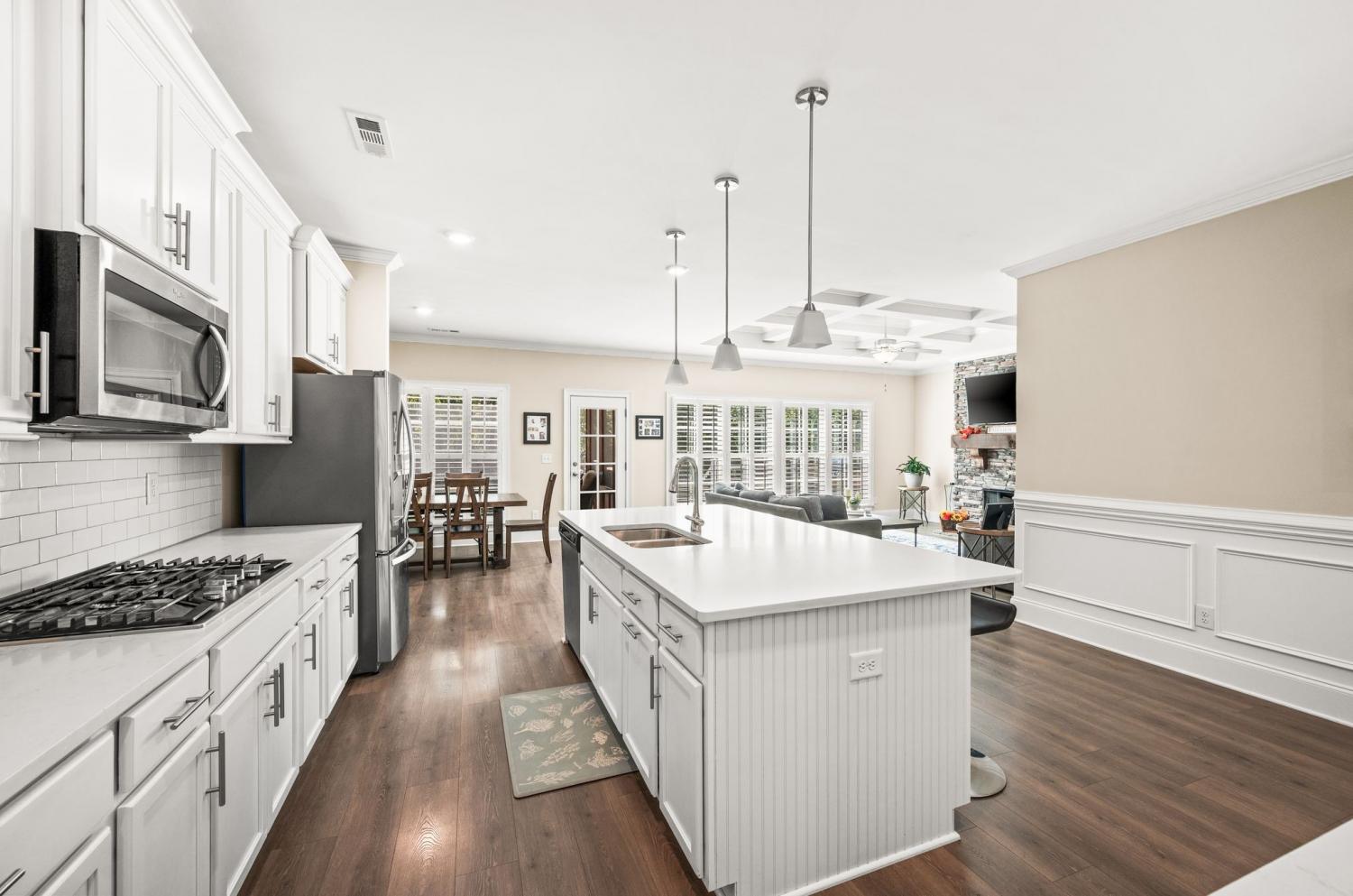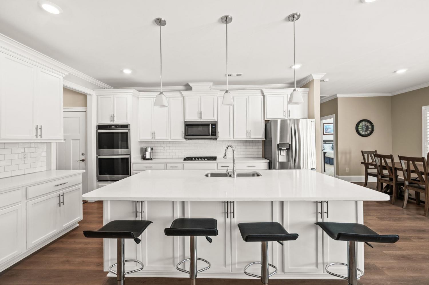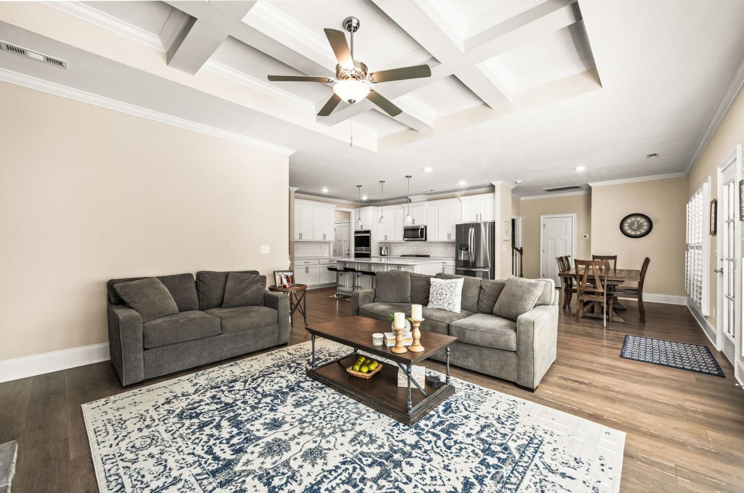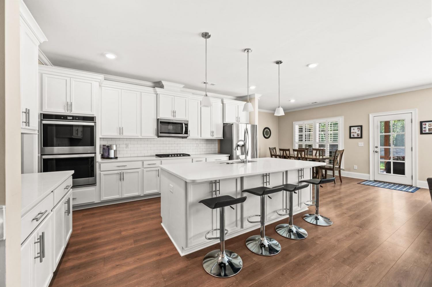 Quality Regent home built in 2020, perfectly situated on a private .98-acre lot with mature trees and professional landscaping. Designed for main-level living, this home also offers an upstairs bonus room with a full bath and a large unfinished storage space. The sellers have thoughtfully enhanced the property with an extended concrete driveway, a retaining wall, a screened-in porch with stamped concrete flooring, a Trex deck, and a fully equipped outdoor kitchen with a gas grill and warmer. A storage shed remains for added convenience. Inside, you’ll find plantation shutters, an open floor plan, and a great room with a stacked-stone gas fireplace and coffered ceiling. The gourmet kitchen boasts stainless steel appliances, quartz countertops, tile backsplash, a large island, and double ovens. The spacious laundry room includes a sink. Additional highlights include a 2-car side-entry garage and NO HOA. Zoned for highly regarded Williamson County Schools, this home is located just minutes from Franklin and only 30 minutes to Nashville.