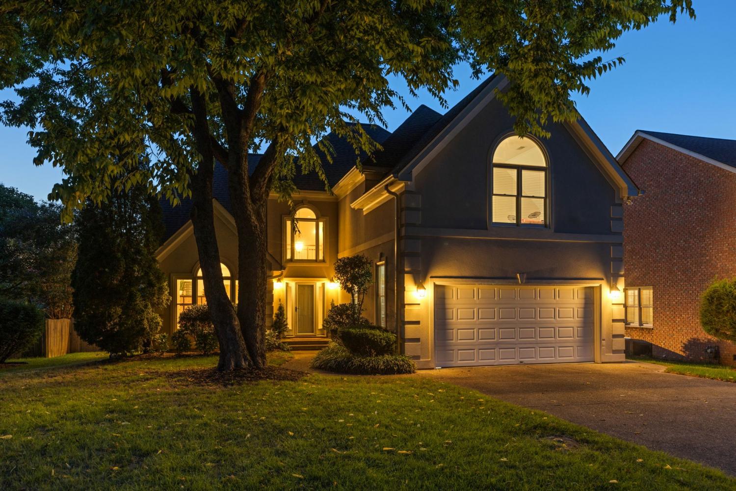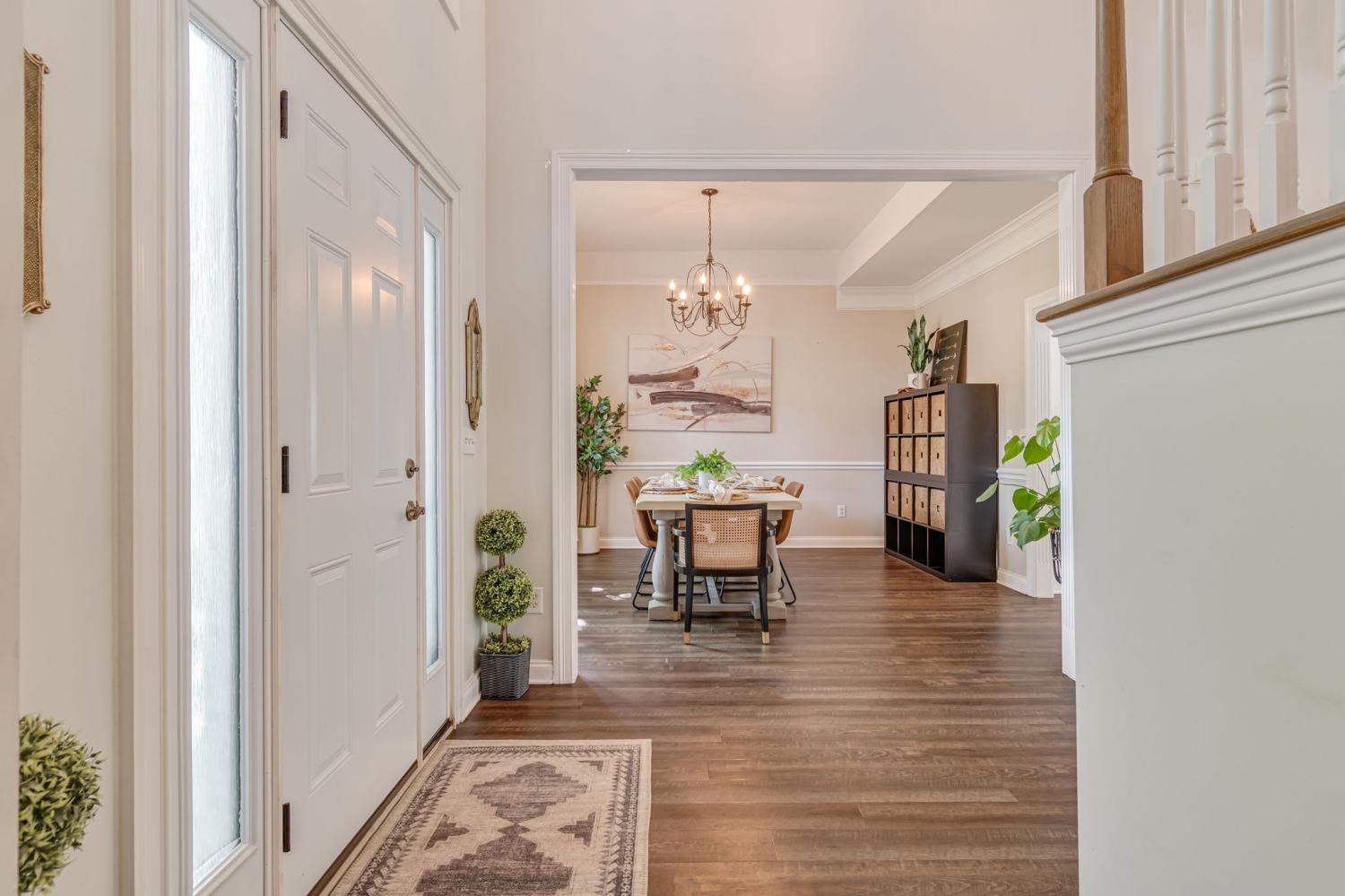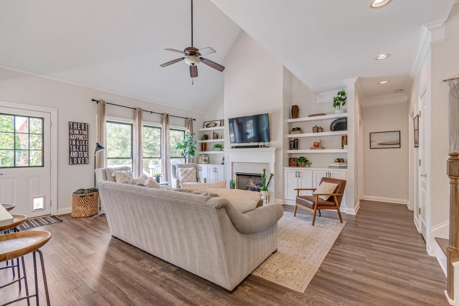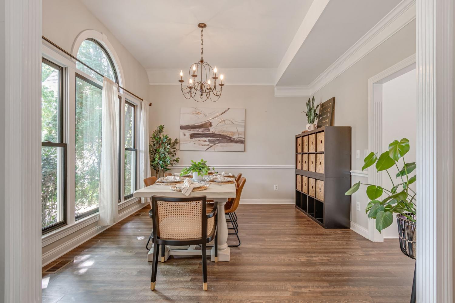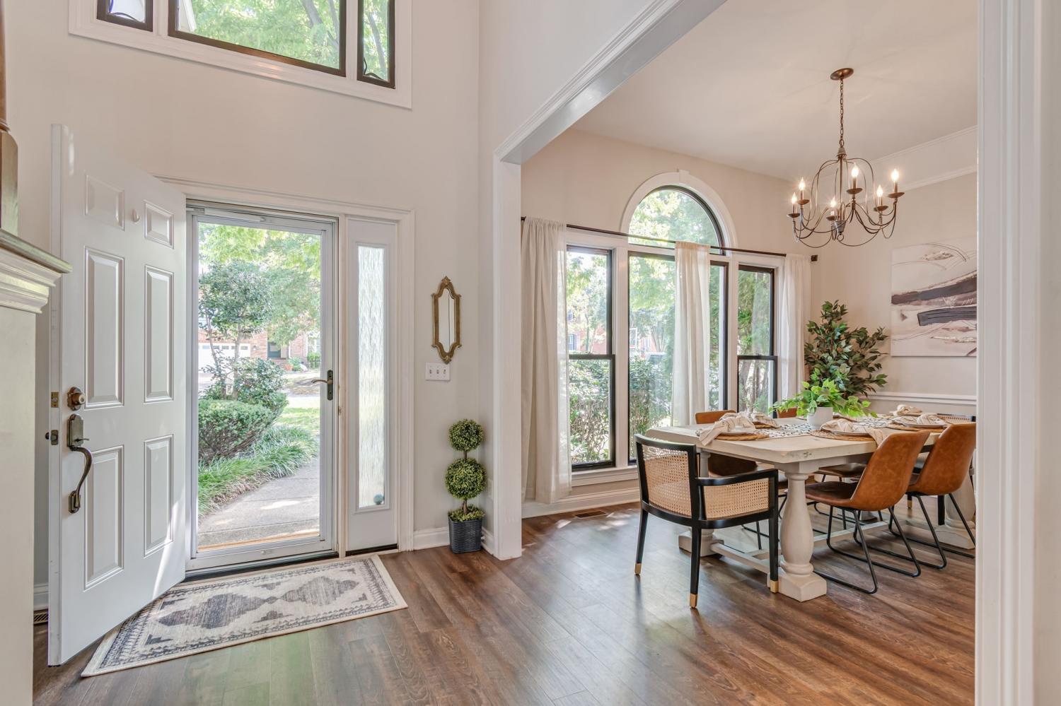 Beautiful light and bright 4 bed 3.5 bath home in desirable Forrest Crossing! 2 story foyer flooded with natural light welcomes you into this spacious, modern home. The gorgeous kitchen features a full renovation with all white wood cabinetry, black hardware, beautiful veined quartz countertops, soft white and taupe tile backsplash, stainless steel appliances, and a custom range hood. Eat-in area and counter height bar boast plenty of space for gatherings. Separate formal dining room offers upgraded lighting, crown molding, and chair railing. This is the perfect extra space to entertain or could be an additional formal sitting/living room. Kitchen opens to a soaring 2 story den with oversized windows bathing the space in light. An elegant fireplace is flanked by shelving and built-ins for ample storage. Primary bedroom features a vaulted tray ceiling, crown molding and oversized windows. Primary bath has double vanities, separate tub and shower and a walk-in closet. Downstairs powder bath features modern wallpaper and upgraded fixtures and lighting. Large bedroom up features wal- in closet and en suite bath. 2 remaining bedrooms feature large shared hall bath. Bonus room with a vaulted ceiling and walk in closet is perfect as a playroom, theatre room, or school room! Mature trees offer shade in this private back yard featuring a large deck. Neighborhood offers a pool and clubhouse. The location provides easy access to downtown Franklin and is just 5 minutes to I 65. Amazing schools and incredible community. A perfect 10!
