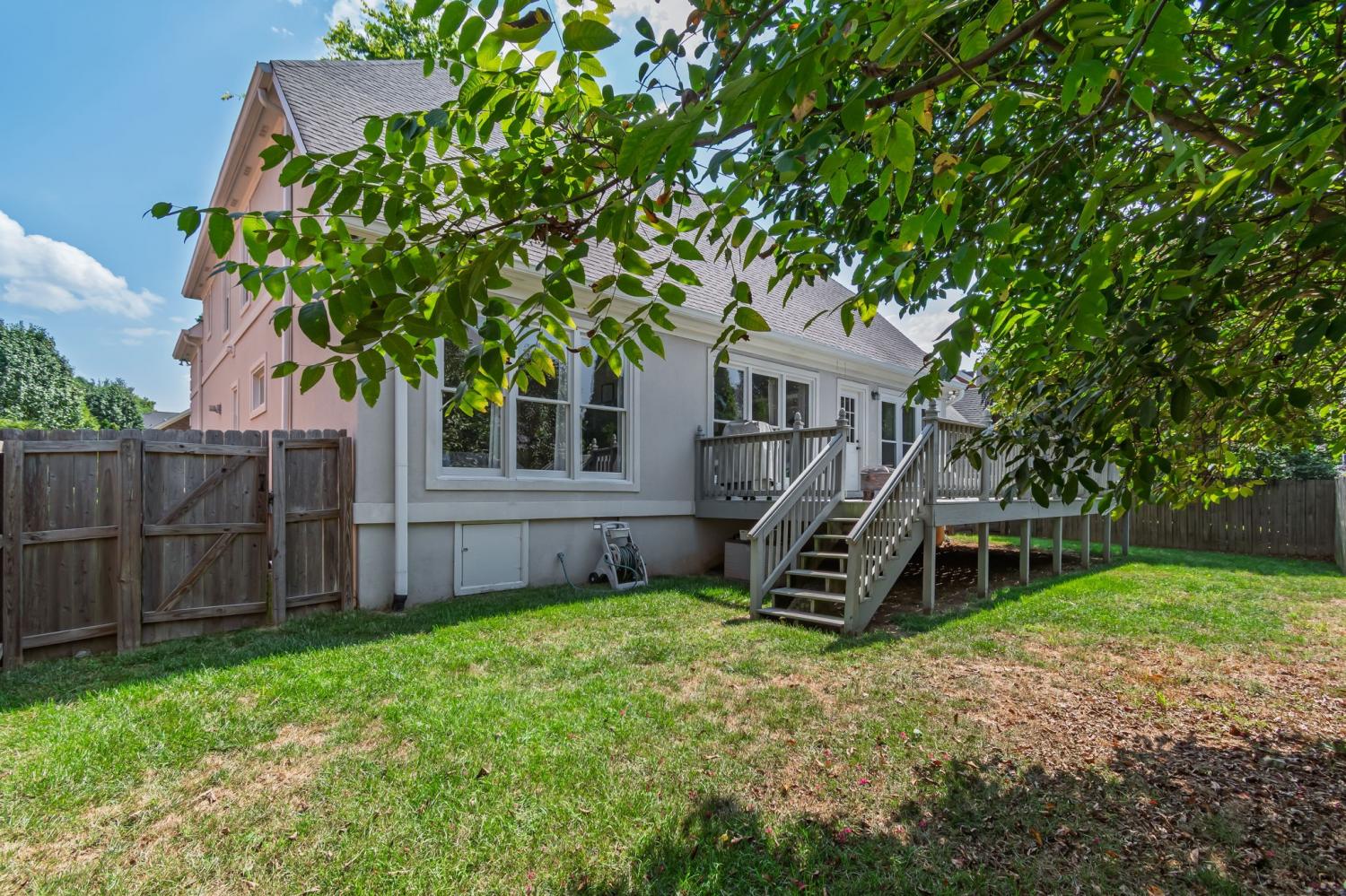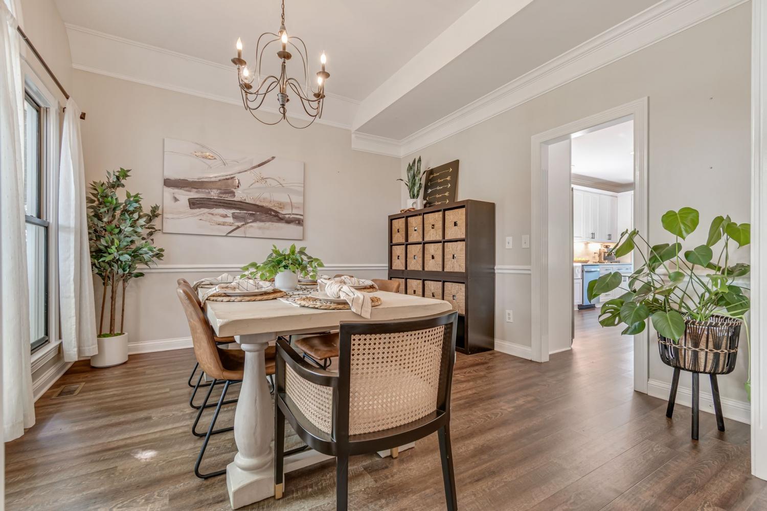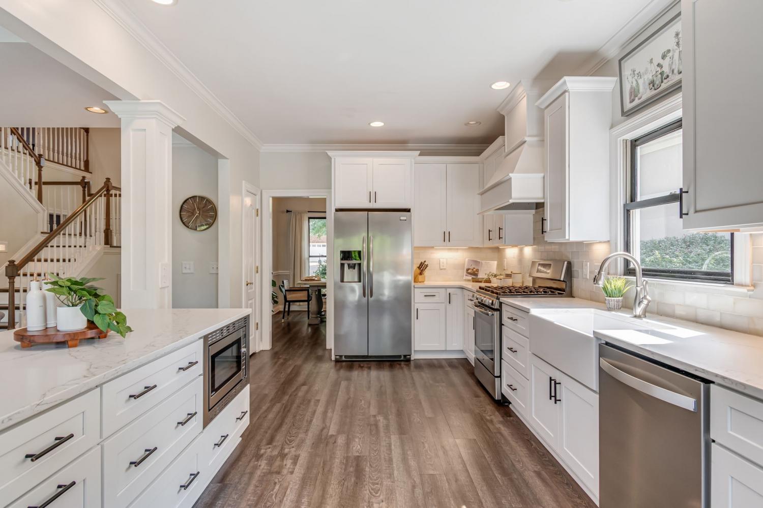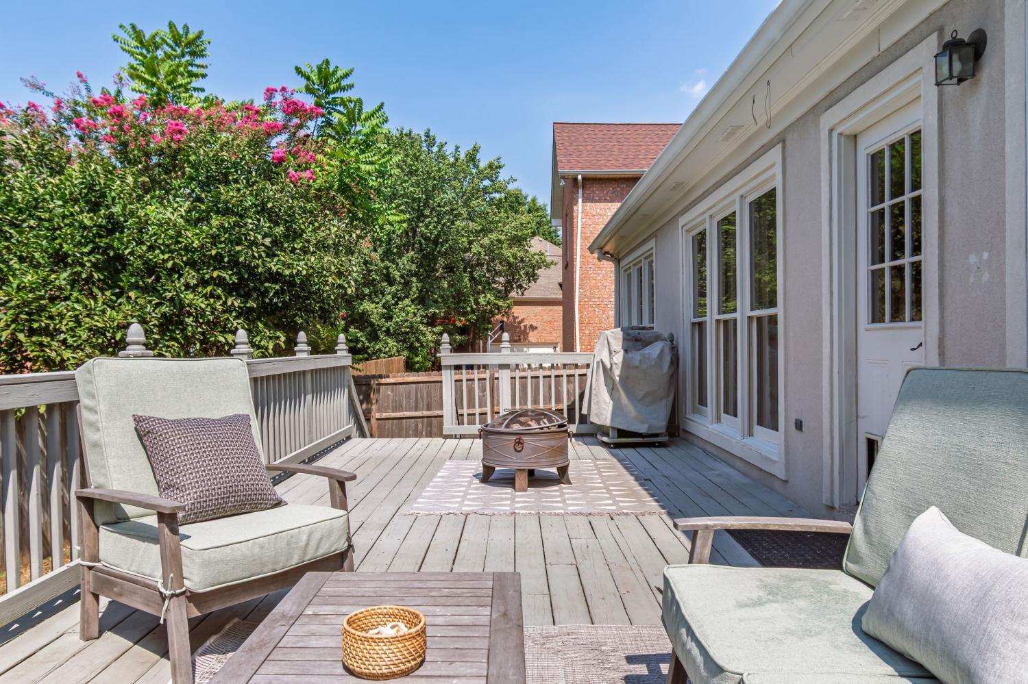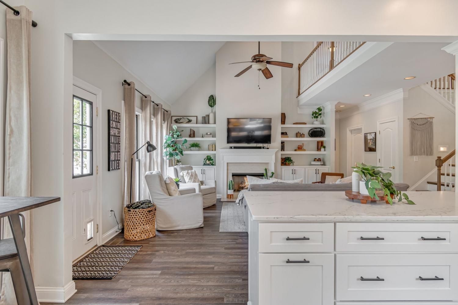 Beautiful light and bright 4 bed 3.5 bath home in desirable Forrest Crossing! 2 story foyer flooded with natural light welcomes you into this spacious, modern home. The gorgeous kitchen features a full renovation with all white wood cabinetry, black hardware, beautiful veined quartz countertops, soft white and taupe tile backsplash, stainless steel appliances, and a custom range hood. Eat-in area and counter height bar boast plenty of space for gatherings. Separate formal dining room offers upgraded lighting, crown molding, and chair railing. This is the perfect extra space to entertain or could be an additional formal sitting/living room. Kitchen opens to a soaring 2 story den with oversized windows bathing the space in light. An elegant fireplace is flanked by shelving and built-ins for ample storage. Primary bedroom features a vaulted tray ceiling, crown molding and oversized windows. Primary bath has double vanities, separate tub and shower and a walk-in closet. Downstairs powder bath features modern wallpaper and upgraded fixtures and lighting. Large bedroom up features wal- in closet and en suite bath. 2 remaining bedrooms feature large shared hall bath. Bonus room with a vaulted ceiling and walk in closet is perfect as a playroom, theatre room, or school room! Mature trees offer shade in this private back yard featuring a large deck. Neighborhood offers a pool and clubhouse. The location provides easy access to downtown Franklin and is just 5 minutes to I 65. Amazing schools and incredible community. A perfect 10!