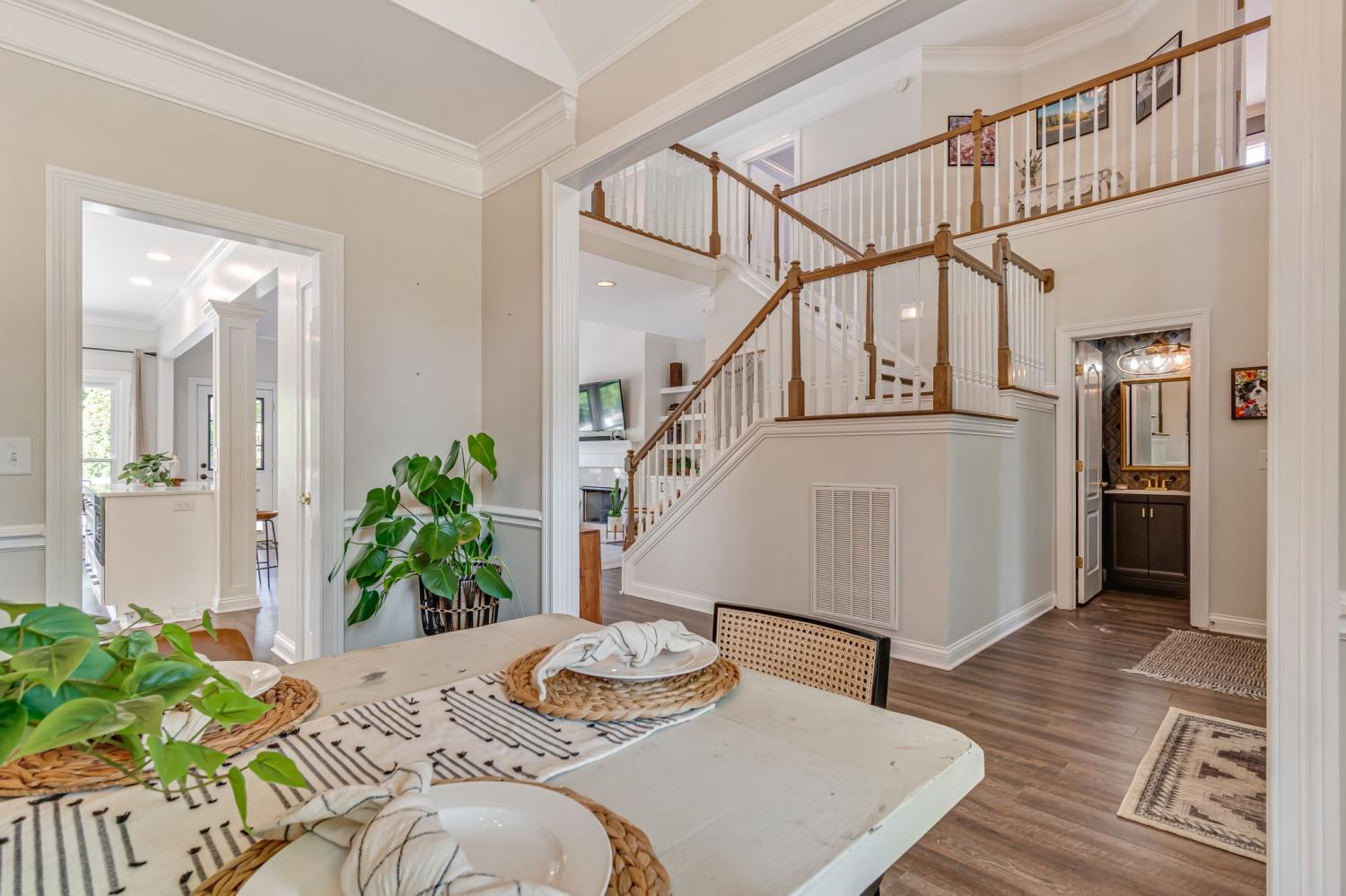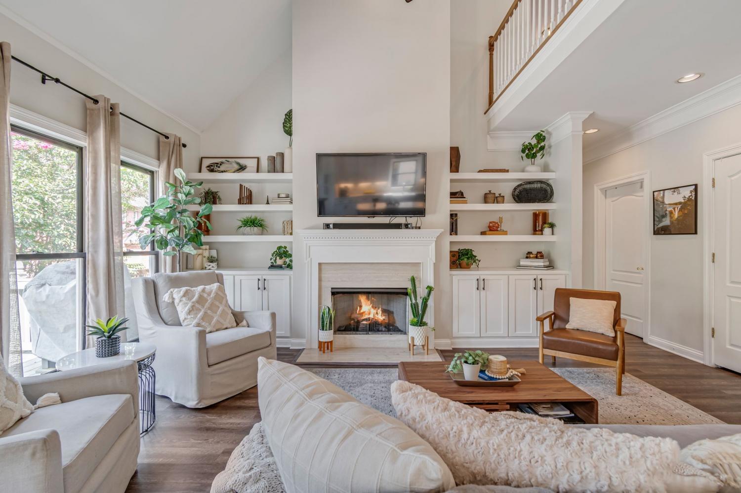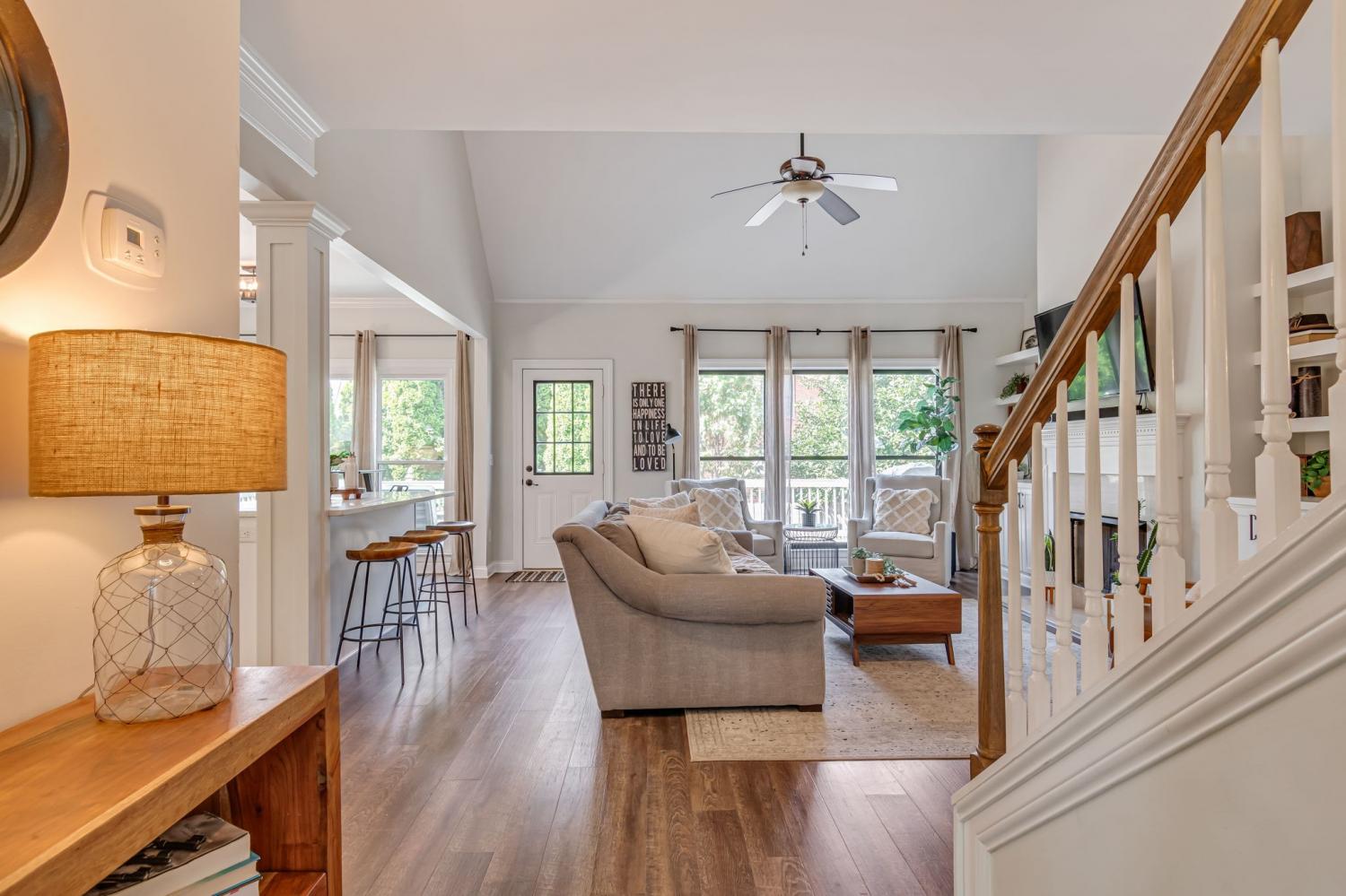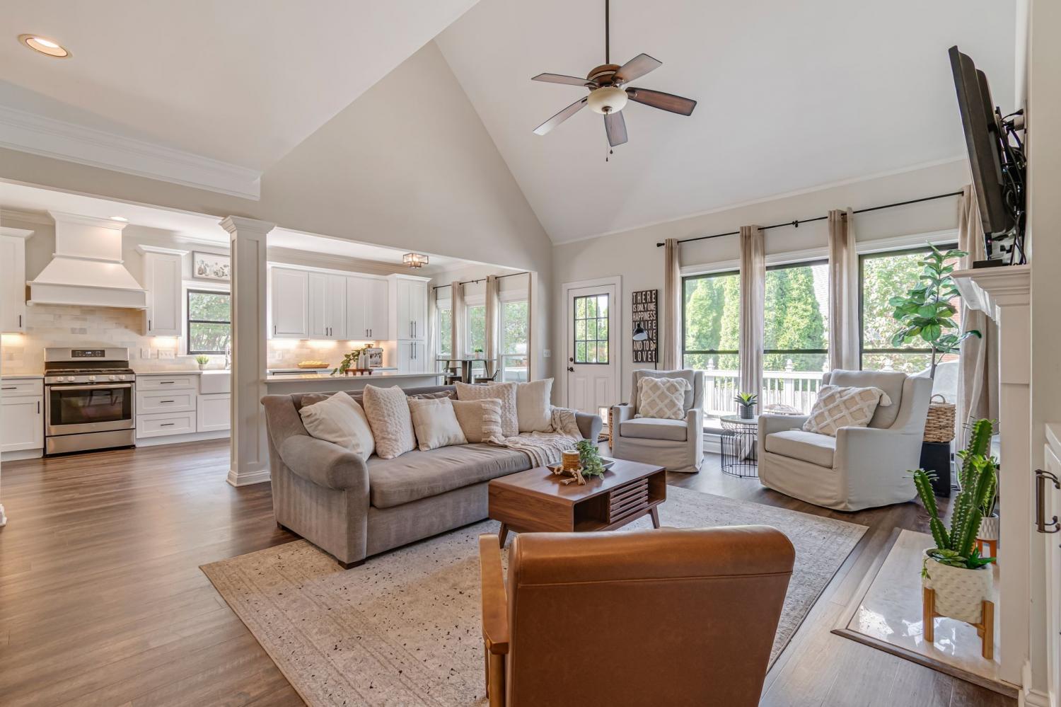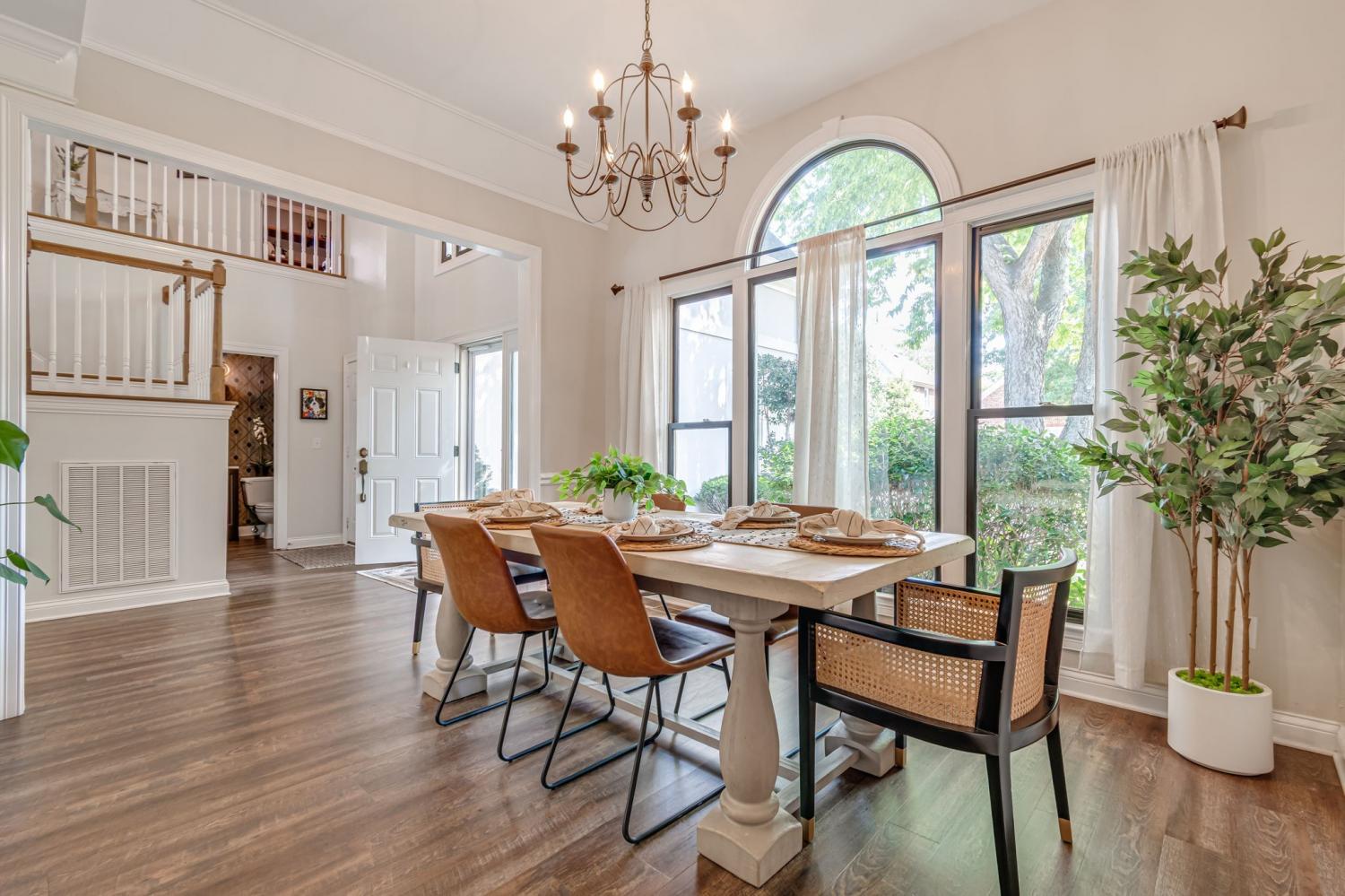 Beautiful light and bright 4 bed 3.5 bath home in desirable Forrest Crossing! 2 story foyer flooded with natural light welcomes you into this spacious, modern home. The gorgeous kitchen features a full renovation with all white wood cabinetry, black hardware, beautiful veined quartz countertops, soft white and taupe tile backsplash, stainless steel appliances, and a custom range hood. Eat-in area and counter height bar boast plenty of space for gatherings. Separate formal dining room offers upgraded lighting, crown molding, and chair railing. This is the perfect extra space to entertain or could be an additional formal sitting/living room. Kitchen opens to a soaring 2 story den with oversized windows bathing the space in light. An elegant fireplace is flanked by shelving and built-ins for ample storage. Primary bedroom features a vaulted tray ceiling, crown molding and oversized windows. Primary bath has double vanities, separate tub and shower and a walk-in closet. Downstairs powder bath features modern wallpaper and upgraded fixtures and lighting. Large bedroom up features wal- in closet and en suite bath. 2 remaining bedrooms feature large shared hall bath. Bonus room with a vaulted ceiling and walk in closet is perfect as a playroom, theatre room, or school room! Mature trees offer shade in this private back yard featuring a large deck. Neighborhood offers a pool and clubhouse. The location provides easy access to downtown Franklin and is just 5 minutes to I 65. Amazing schools and incredible community. A perfect 10!