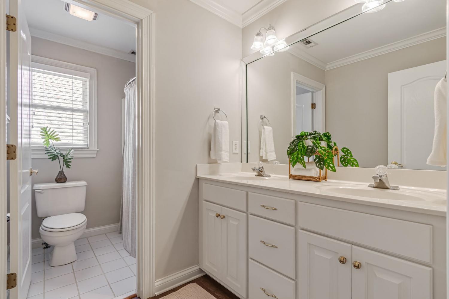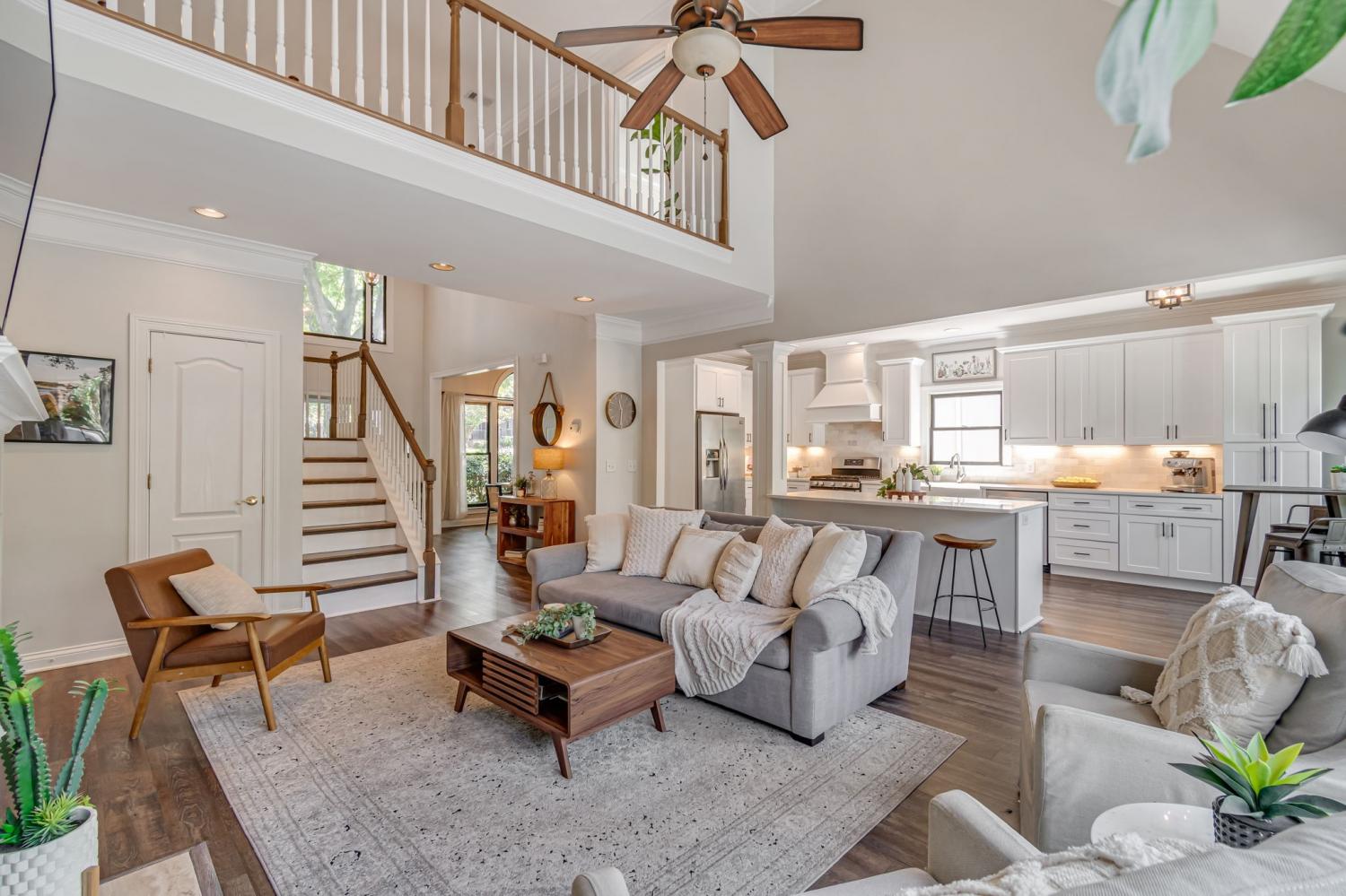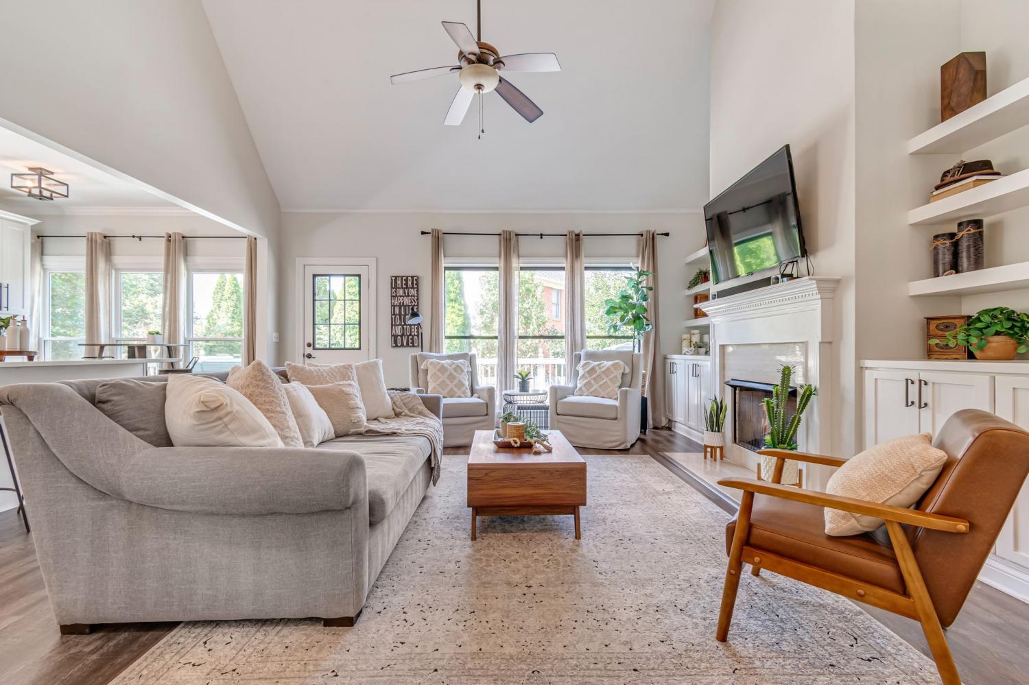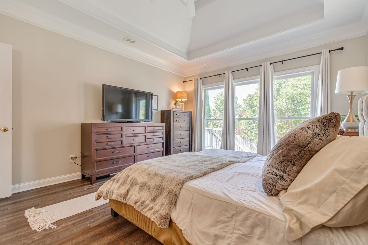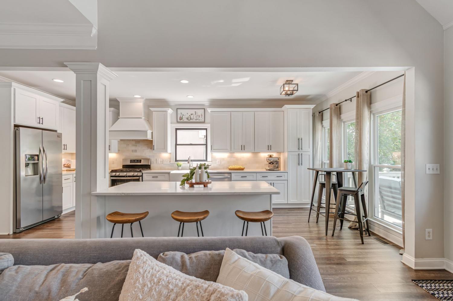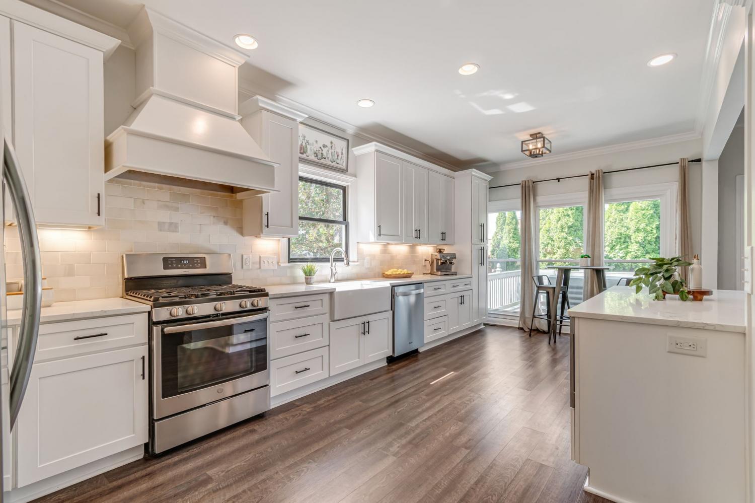 Beautiful light and bright 4 bed 3.5 bath home in desirable Forrest Crossing! 2 story foyer flooded with natural light welcomes you into this spacious, modern home. The gorgeous kitchen features a full renovation with all white wood cabinetry, black hardware, beautiful veined quartz countertops, soft white and taupe tile backsplash, stainless steel appliances, and a custom range hood. Eat-in area and counter height bar boast plenty of space for gatherings. Separate formal dining room offers upgraded lighting, crown molding, and chair railing. This is the perfect extra space to entertain or could be an additional formal sitting/living room. Kitchen opens to a soaring 2 story den with oversized windows bathing the space in light. An elegant fireplace is flanked by shelving and built-ins for ample storage. Primary bedroom features a vaulted tray ceiling, crown molding and oversized windows. Primary bath has double vanities, separate tub and shower and a walk-in closet. Downstairs powder bath features modern wallpaper and upgraded fixtures and lighting. Large bedroom up features wal- in closet and en suite bath. 2 remaining bedrooms feature large shared hall bath. Bonus room with a vaulted ceiling and walk in closet is perfect as a playroom, theatre room, or school room! Mature trees offer shade in this private back yard featuring a large deck. Neighborhood offers a pool and clubhouse. The location provides easy access to downtown Franklin and is just 5 minutes to I 65. Amazing schools and incredible community. A perfect 10!