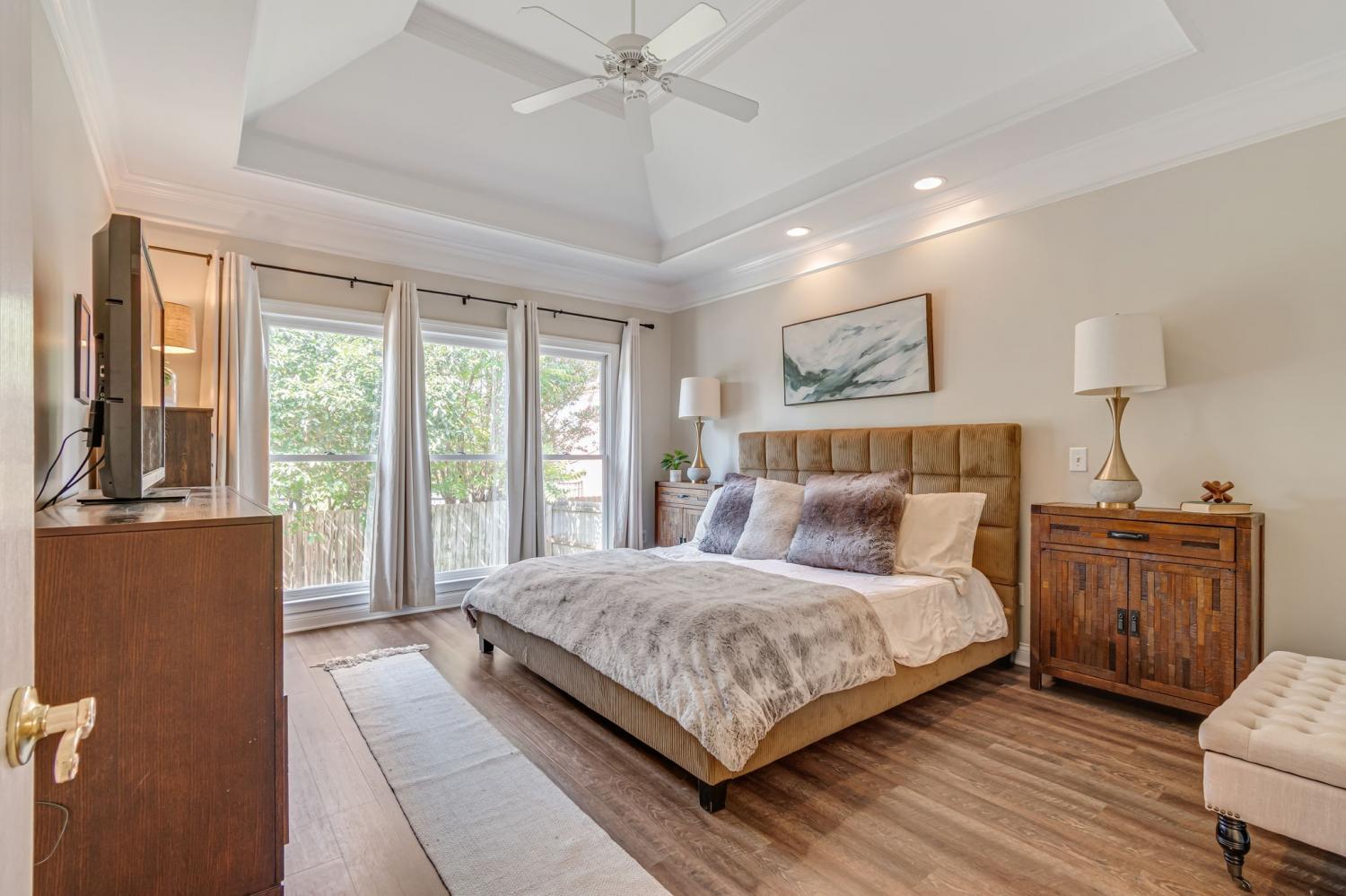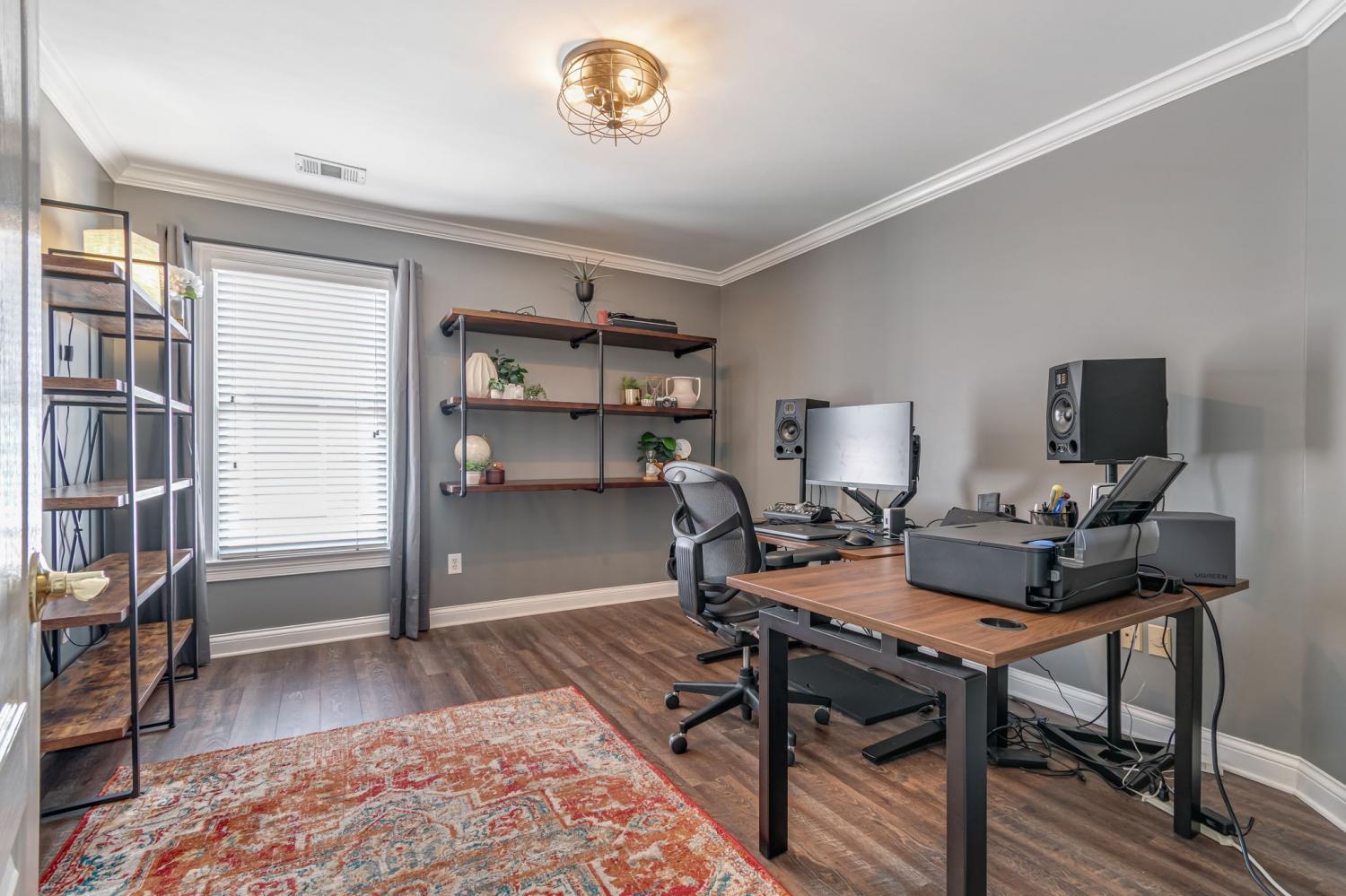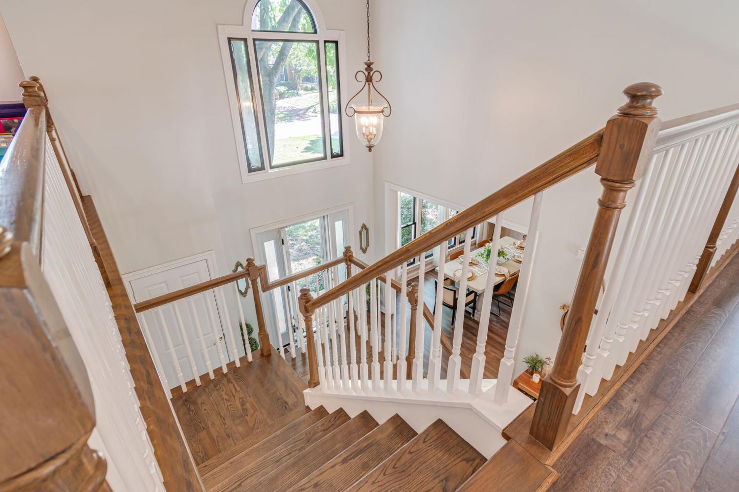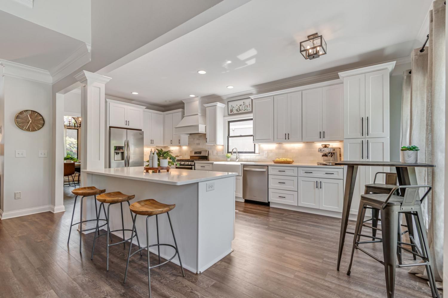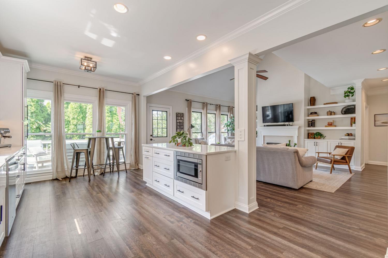 Beautiful light and bright 4 bed 3.5 bath home in desirable Forrest Crossing! 2 story foyer flooded with natural light welcomes you into this spacious, modern home. The gorgeous kitchen features a full renovation with all white wood cabinetry, black hardware, beautiful veined quartz countertops, soft white and taupe tile backsplash, stainless steel appliances, and a custom range hood. Eat-in area and counter height bar boast plenty of space for gatherings. Separate formal dining room offers upgraded lighting, crown molding, and chair railing. This is the perfect extra space to entertain or could be an additional formal sitting/living room. Kitchen opens to a soaring 2 story den with oversized windows bathing the space in light. An elegant fireplace is flanked by shelving and built-ins for ample storage. Primary bedroom features a vaulted tray ceiling, crown molding and oversized windows. Primary bath has double vanities, separate tub and shower and a walk-in closet. Downstairs powder bath features modern wallpaper and upgraded fixtures and lighting. Large bedroom up features wal- in closet and en suite bath. 2 remaining bedrooms feature large shared hall bath. Bonus room with a vaulted ceiling and walk in closet is perfect as a playroom, theatre room, or school room! Mature trees offer shade in this private back yard featuring a large deck. Neighborhood offers a pool and clubhouse. The location provides easy access to downtown Franklin and is just 5 minutes to I 65. Amazing schools and incredible community. A perfect 10!