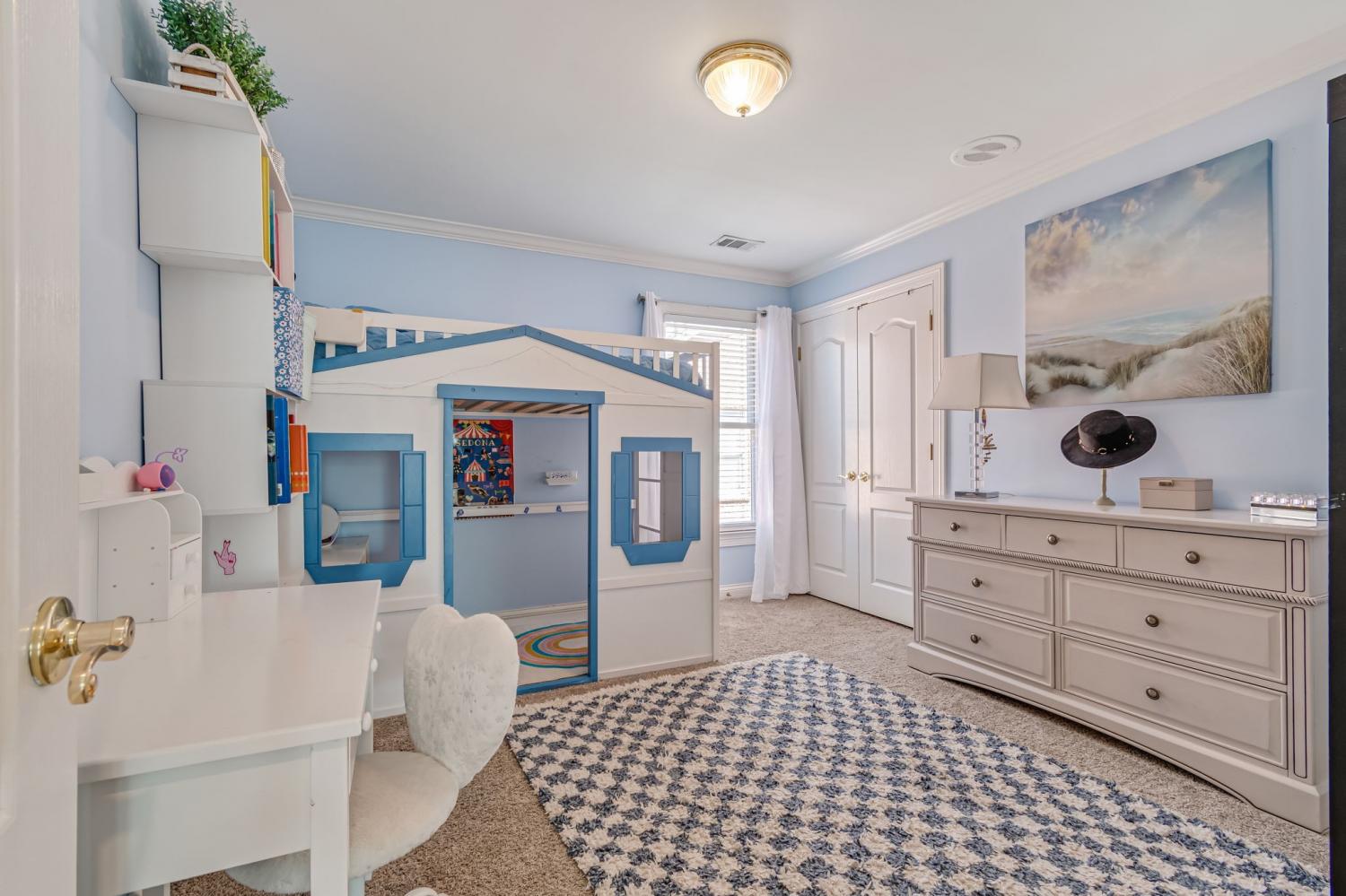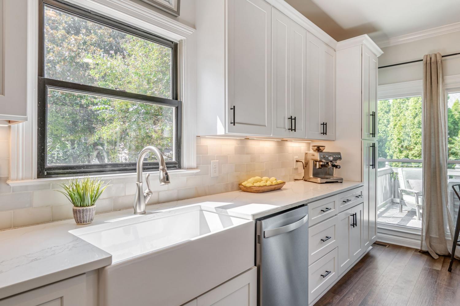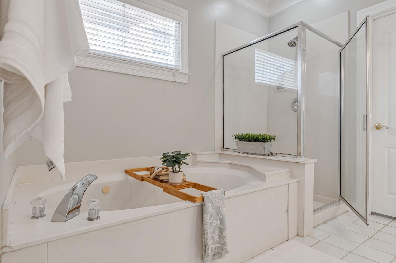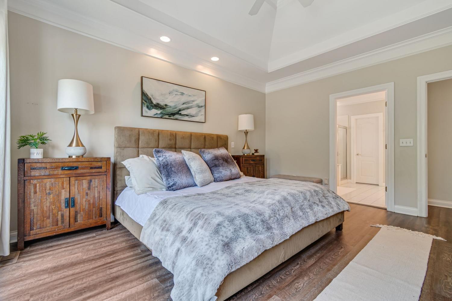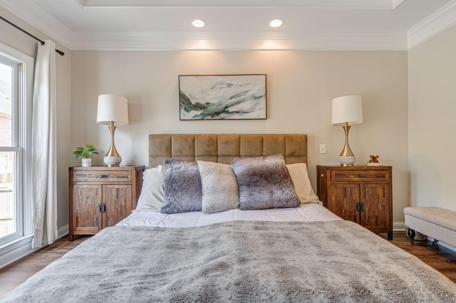 Beautiful light and bright 4 bed 3.5 bath home in desirable Forrest Crossing! 2 story foyer flooded with natural light welcomes you into this spacious, modern home. The gorgeous kitchen features a full renovation with all white wood cabinetry, black hardware, beautiful veined quartz countertops, soft white and taupe tile backsplash, stainless steel appliances, and a custom range hood. Eat-in area and counter height bar boast plenty of space for gatherings. Separate formal dining room offers upgraded lighting, crown molding, and chair railing. This is the perfect extra space to entertain or could be an additional formal sitting/living room. Kitchen opens to a soaring 2 story den with oversized windows bathing the space in light. An elegant fireplace is flanked by shelving and built-ins for ample storage. Primary bedroom features a vaulted tray ceiling, crown molding and oversized windows. Primary bath has double vanities, separate tub and shower and a walk-in closet. Downstairs powder bath features modern wallpaper and upgraded fixtures and lighting. Large bedroom up features wal- in closet and en suite bath. 2 remaining bedrooms feature large shared hall bath. Bonus room with a vaulted ceiling and walk in closet is perfect as a playroom, theatre room, or school room! Mature trees offer shade in this private back yard featuring a large deck. Neighborhood offers a pool and clubhouse. The location provides easy access to downtown Franklin and is just 5 minutes to I 65. Amazing schools and incredible community. A perfect 10!