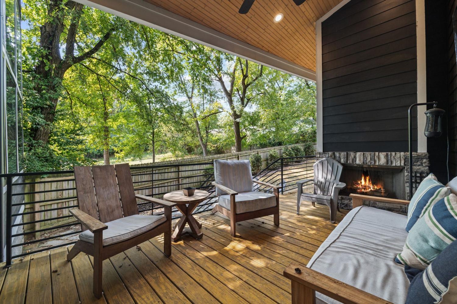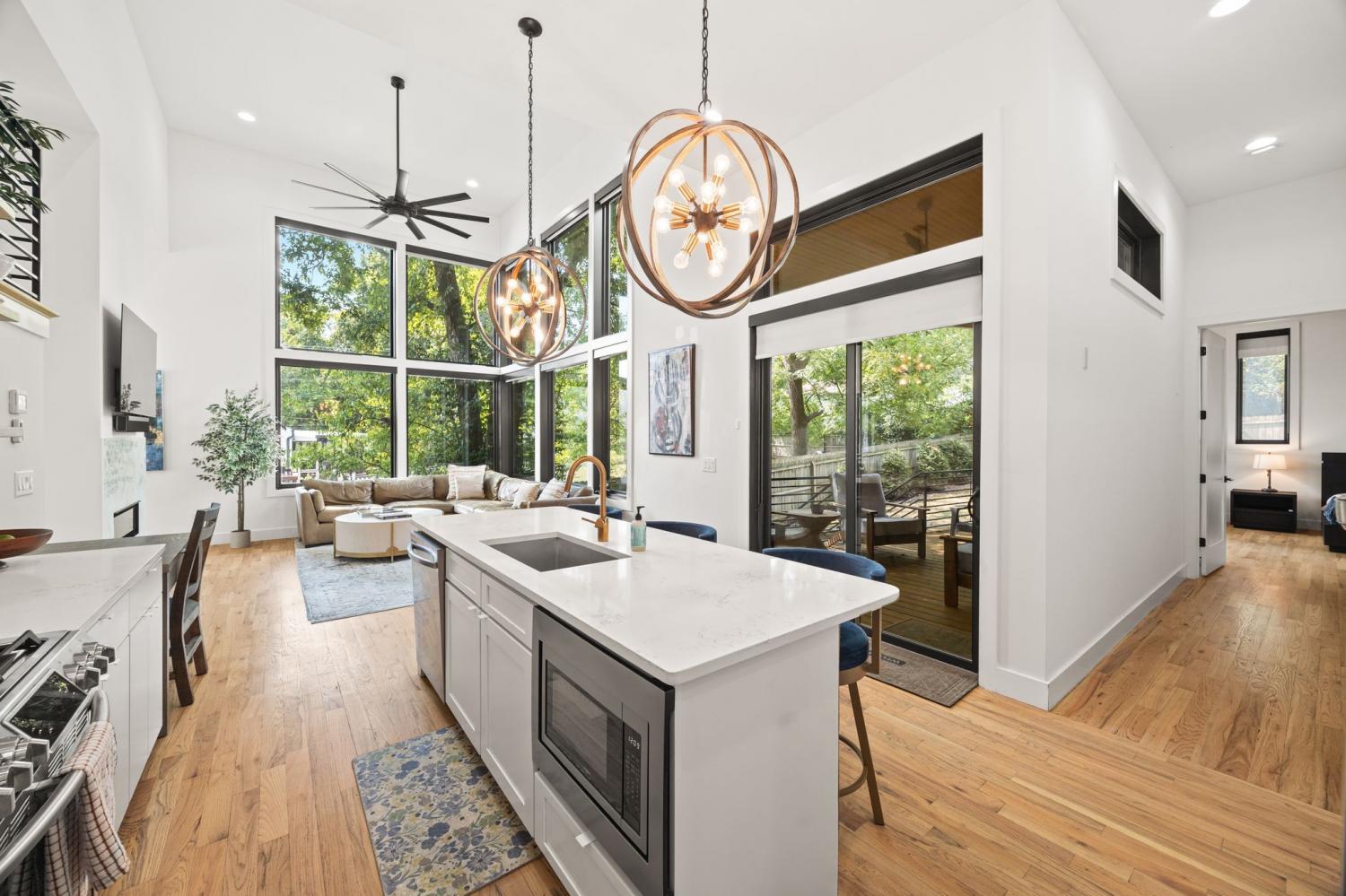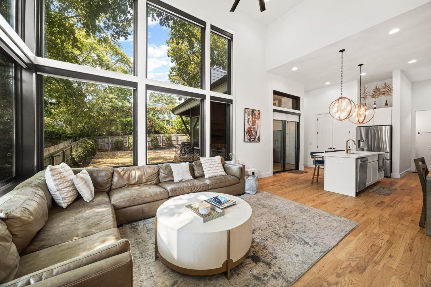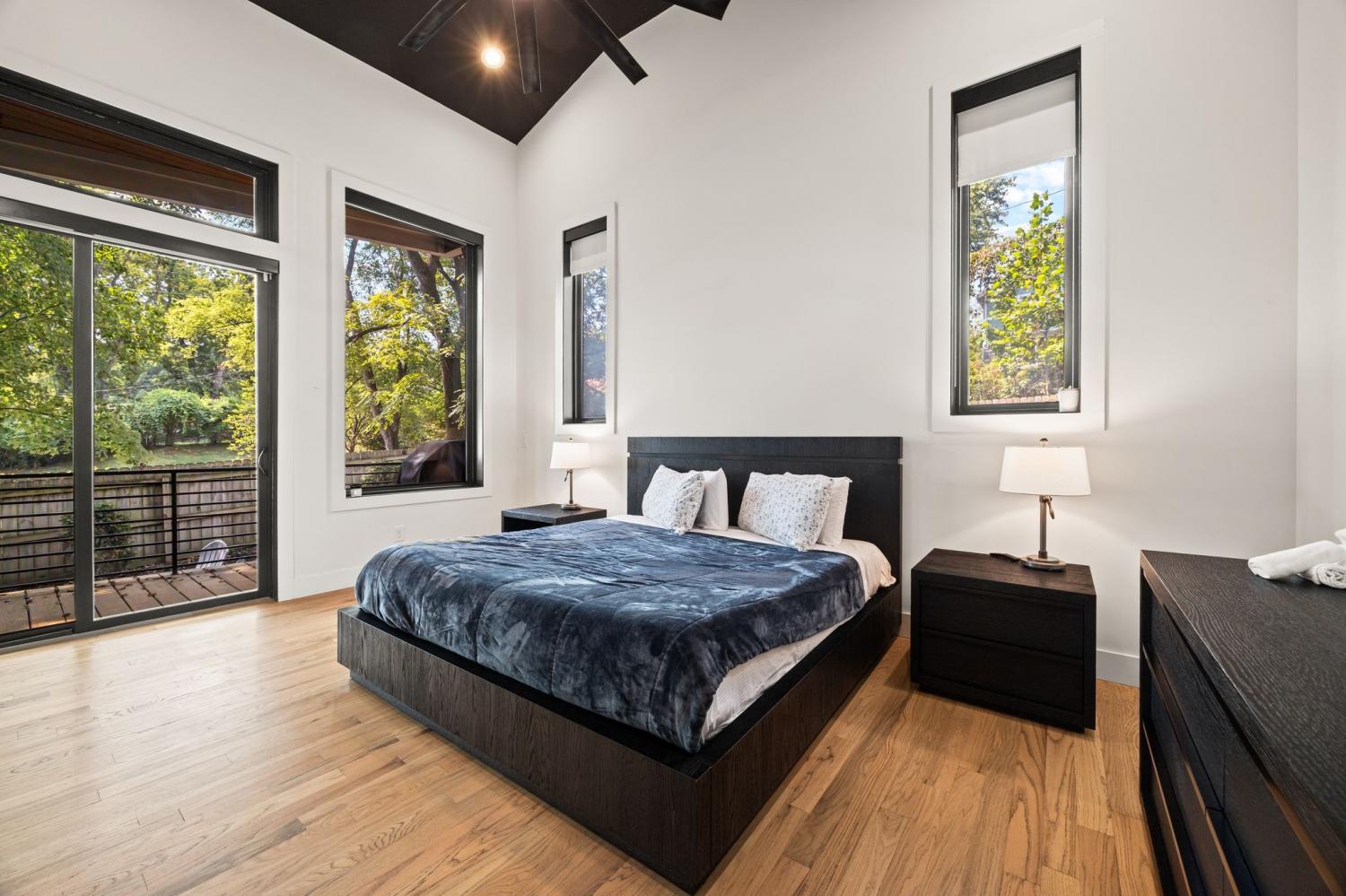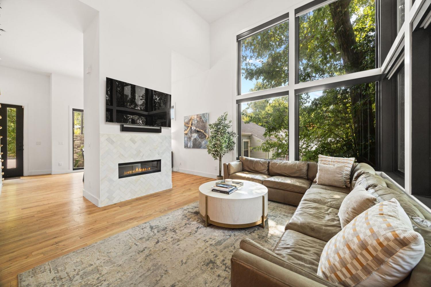 Located at the end of Electric Avenue and just 25 yards from Shelby Bottoms Park, this architecturally striking home is more than a residence—it’s your front-row seat to East Nashville’s vibrant culture. Inside, the home blends soaring scale with warm livability. Twenty-foot ceilings and huge black-framed windows flood the open-concept living area with natural light. A double-height great room flows into a designer kitchen and dining space, creating a breezy, communal feel. Automatic shades in the downstairs add to the comfort of the home. The primary suite is conveniently located on the main level and enjoys direct access to a covered deck with a fireplace—perfect for al-fresco dinners or quiet mornings overlooking the patio and firepit or fenced backyard. On the upper floors, every bedroom has its own ensuite bath, offering privacy for family and guests. The top-floor bonus room opens to a walk-out balcony, ideal for sunset cocktails or taking in treetop views. Additional highlights include a dedicated office nook, generous storage, premium appliances and a two-car garage. Comfort and connection come naturally here. Whether you’re enjoying shopping, going for food and drinks at Five Points, playing a round at Shelby’s historic golf course or catching a summer concert at Cornelia Fort Airpark, this home puts you at the center of it all. With its dramatic architecture, thoughtful floor plan and walkable location, 716 Village Ct offers a lifestyle that celebrates both modern luxury and the timeless spirit of East Nashville.