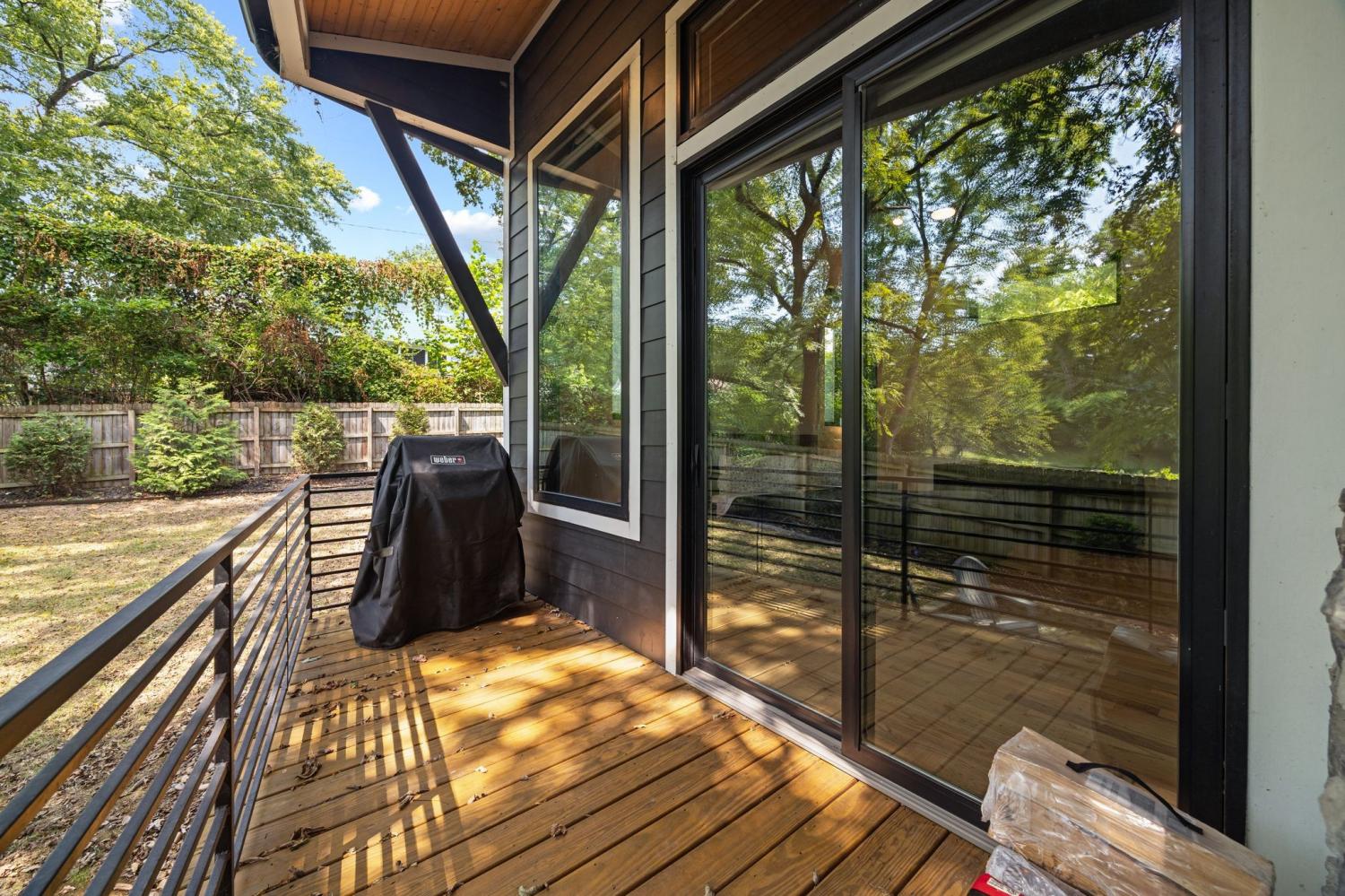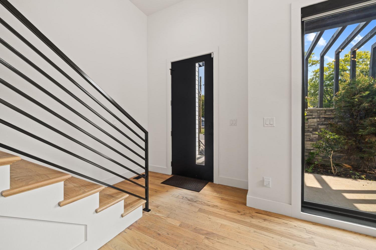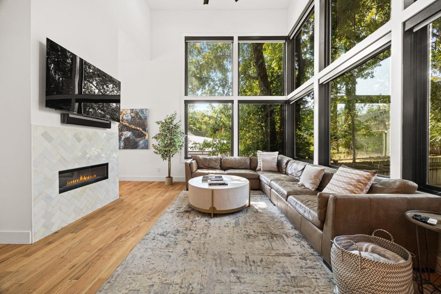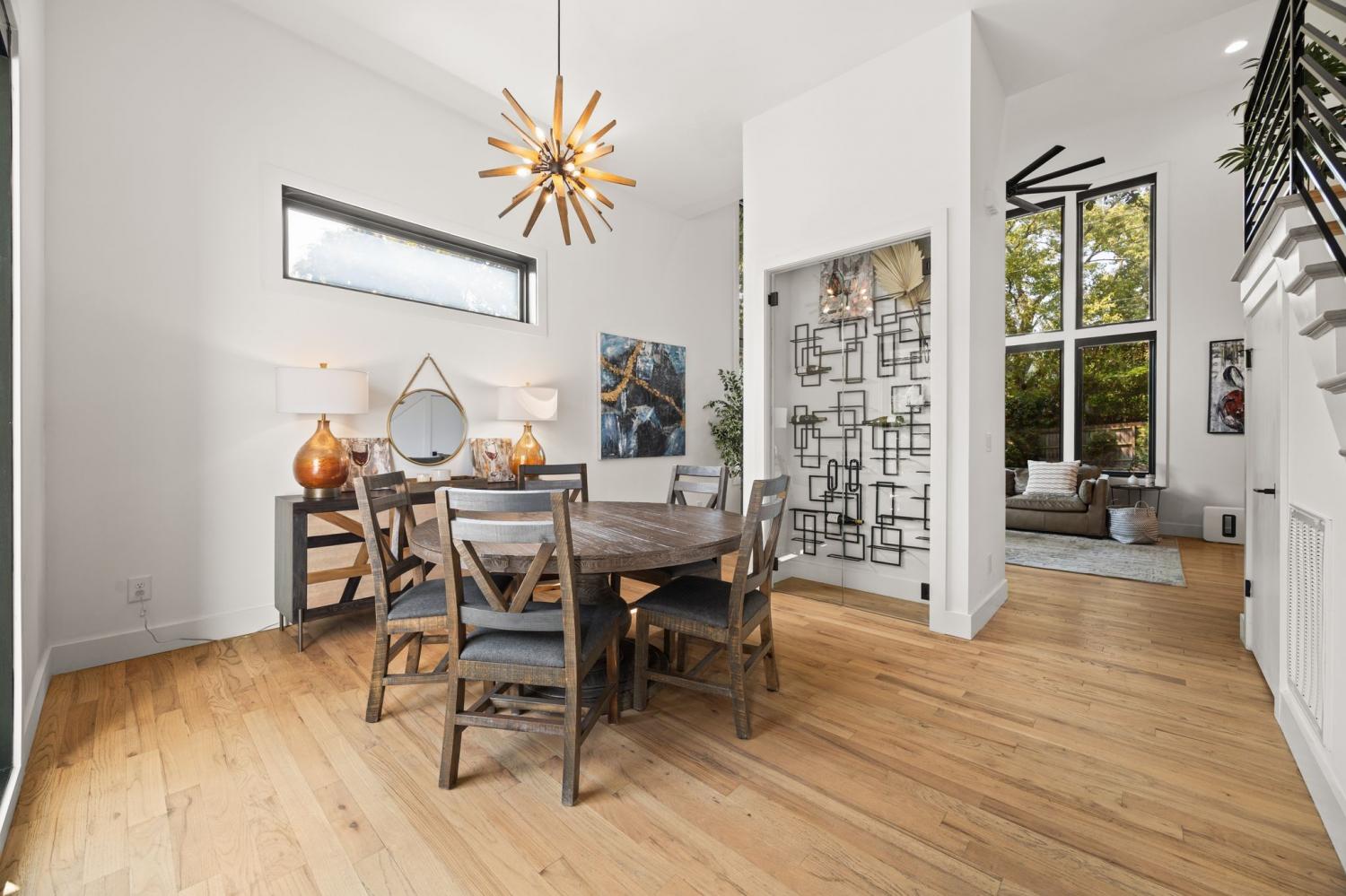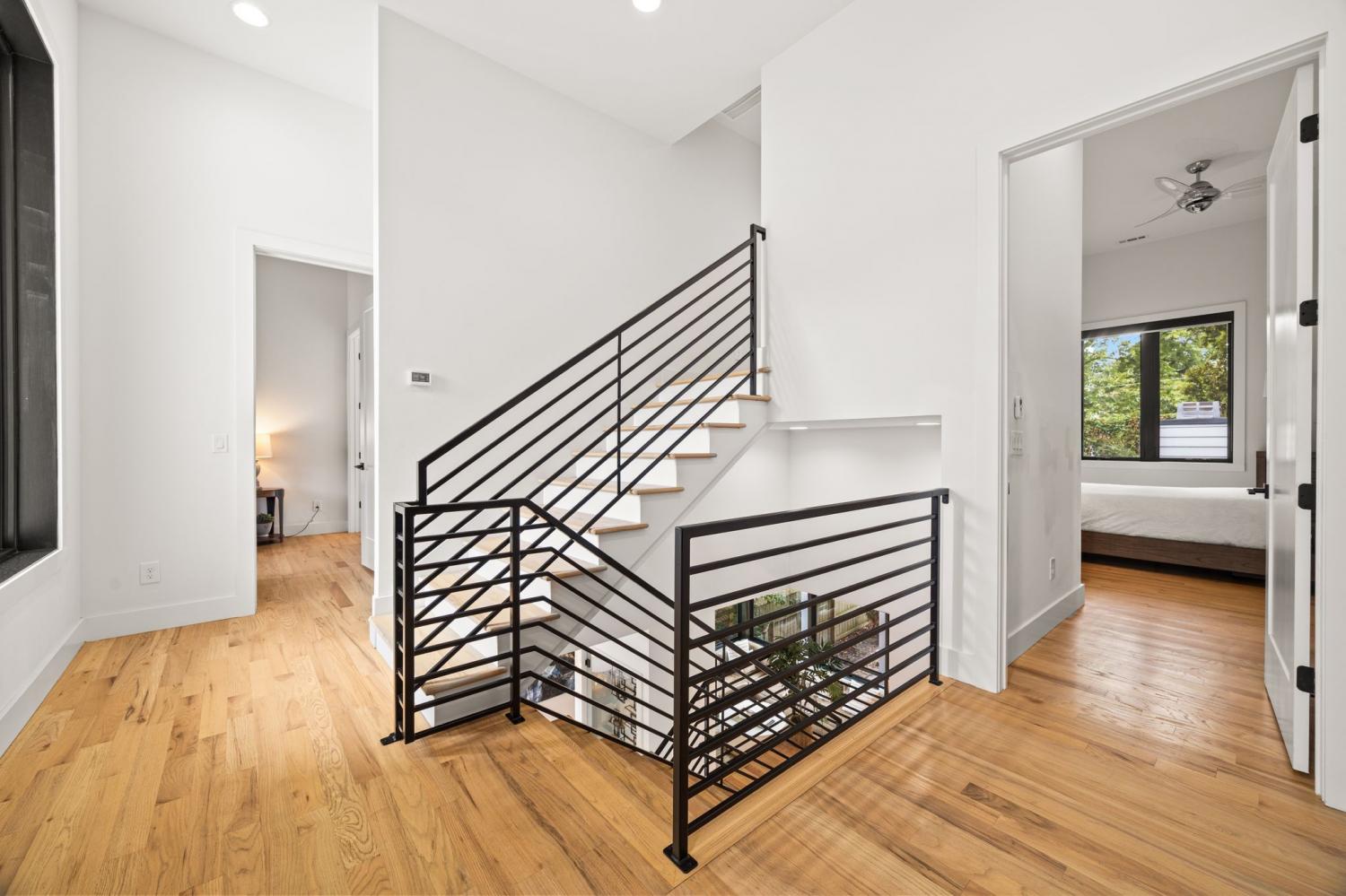 Located at the end of Electric Avenue and just 25 yards from Shelby Bottoms Park, this architecturally striking home is more than a residence—it’s your front-row seat to East Nashville’s vibrant culture. Inside, the home blends soaring scale with warm livability. Twenty-foot ceilings and huge black-framed windows flood the open-concept living area with natural light. A double-height great room flows into a designer kitchen and dining space, creating a breezy, communal feel. Automatic shades in the downstairs add to the comfort of the home. The primary suite is conveniently located on the main level and enjoys direct access to a covered deck with a fireplace—perfect for al-fresco dinners or quiet mornings overlooking the patio and firepit or fenced backyard. On the upper floors, every bedroom has its own ensuite bath, offering privacy for family and guests. The top-floor bonus room opens to a walk-out balcony, ideal for sunset cocktails or taking in treetop views. Additional highlights include a dedicated office nook, generous storage, premium appliances and a two-car garage. Comfort and connection come naturally here. Whether you’re enjoying shopping, going for food and drinks at Five Points, playing a round at Shelby’s historic golf course or catching a summer concert at Cornelia Fort Airpark, this home puts you at the center of it all. With its dramatic architecture, thoughtful floor plan and walkable location, 716 Village Ct offers a lifestyle that celebrates both modern luxury and the timeless spirit of East Nashville.