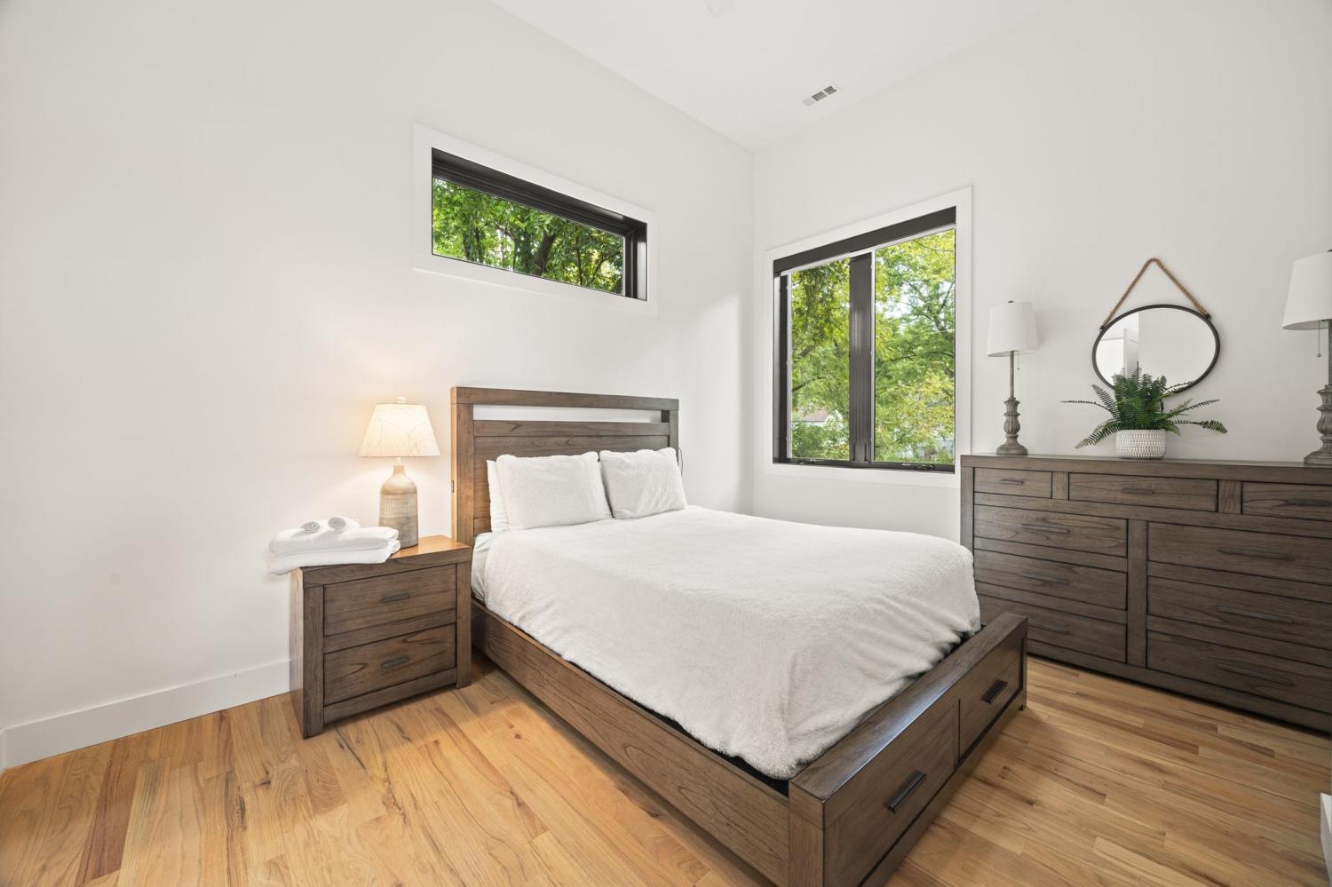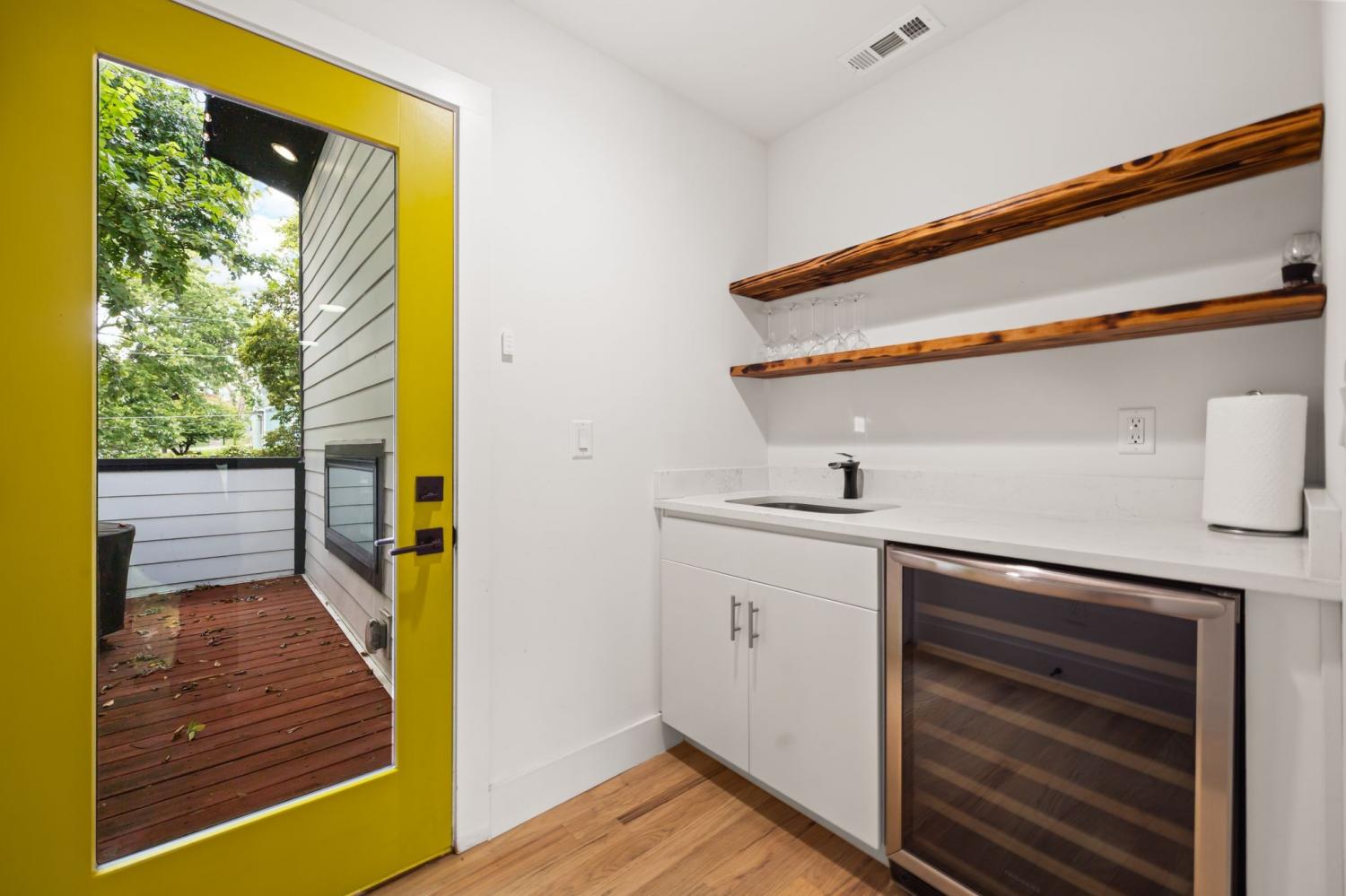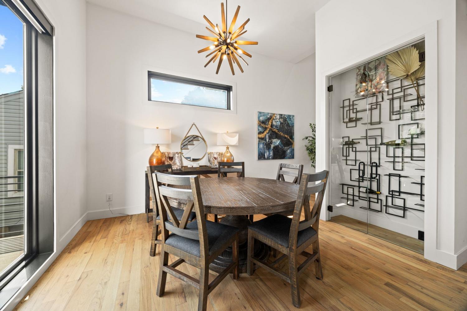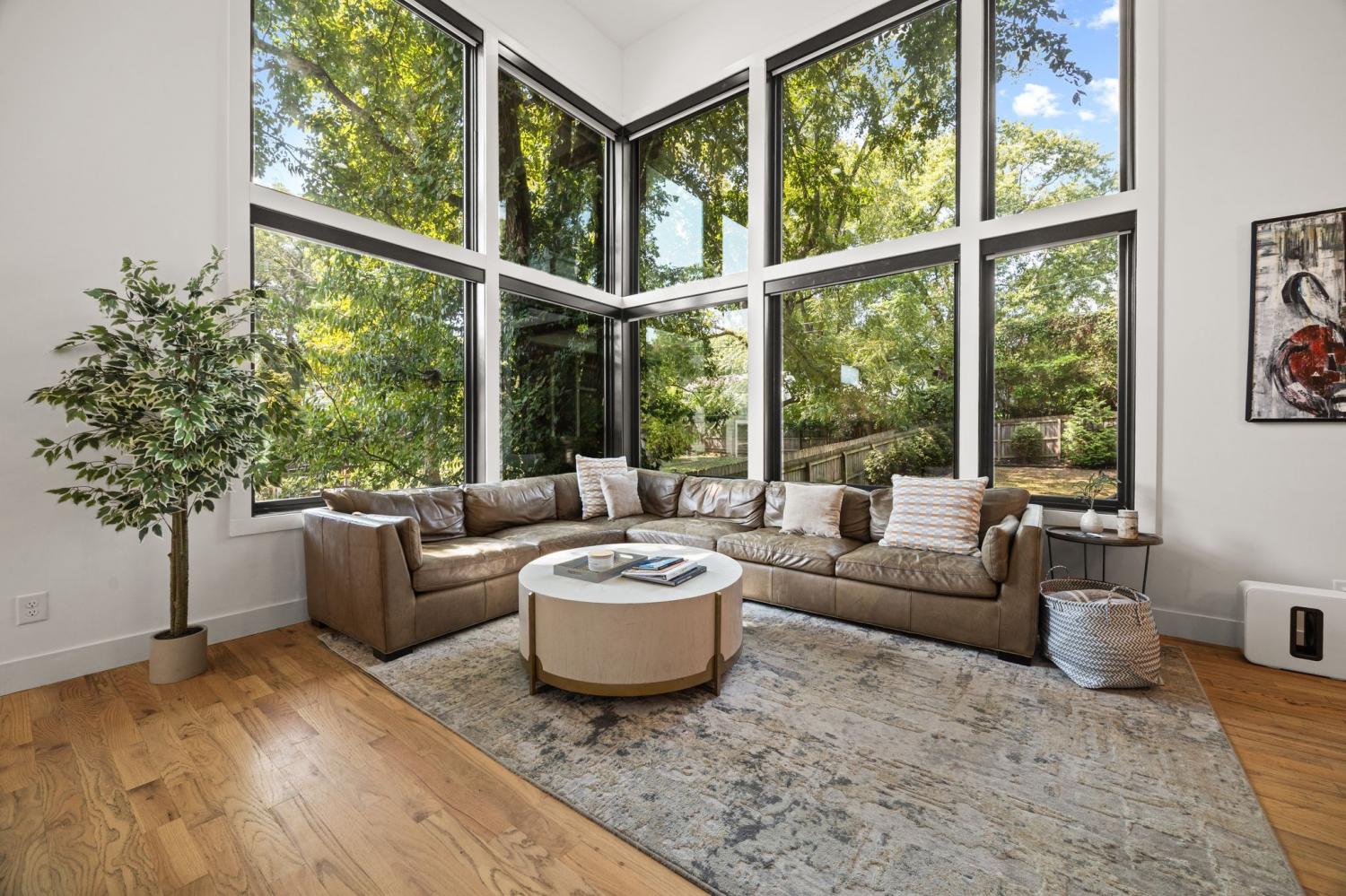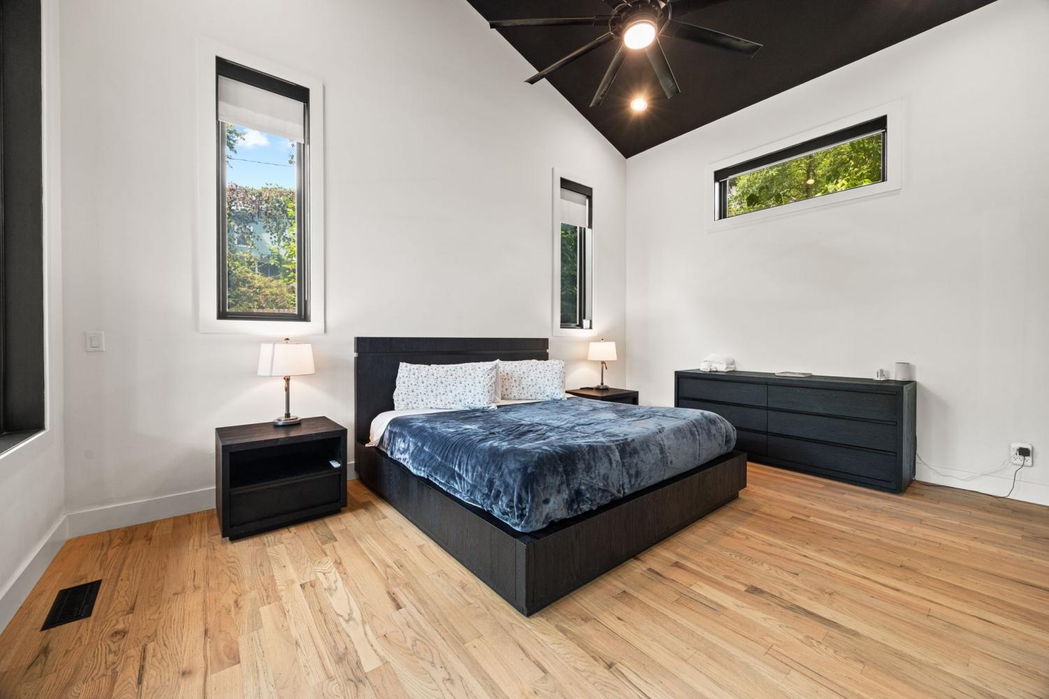 Located at the end of Electric Avenue and just 25 yards from Shelby Bottoms Park, this architecturally striking home is more than a residence—it’s your front-row seat to East Nashville’s vibrant culture. Inside, the home blends soaring scale with warm livability. Twenty-foot ceilings and huge black-framed windows flood the open-concept living area with natural light. A double-height great room flows into a designer kitchen and dining space, creating a breezy, communal feel. Automatic shades in the downstairs add to the comfort of the home. The primary suite is conveniently located on the main level and enjoys direct access to a covered deck with a fireplace—perfect for al-fresco dinners or quiet mornings overlooking the patio and firepit or fenced backyard. On the upper floors, every bedroom has its own ensuite bath, offering privacy for family and guests. The top-floor bonus room opens to a walk-out balcony, ideal for sunset cocktails or taking in treetop views. Additional highlights include a dedicated office nook, generous storage, premium appliances and a two-car garage. Comfort and connection come naturally here. Whether you’re enjoying shopping, going for food and drinks at Five Points, playing a round at Shelby’s historic golf course or catching a summer concert at Cornelia Fort Airpark, this home puts you at the center of it all. With its dramatic architecture, thoughtful floor plan and walkable location, 716 Village Ct offers a lifestyle that celebrates both modern luxury and the timeless spirit of East Nashville.