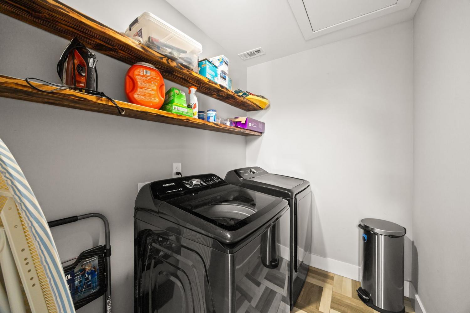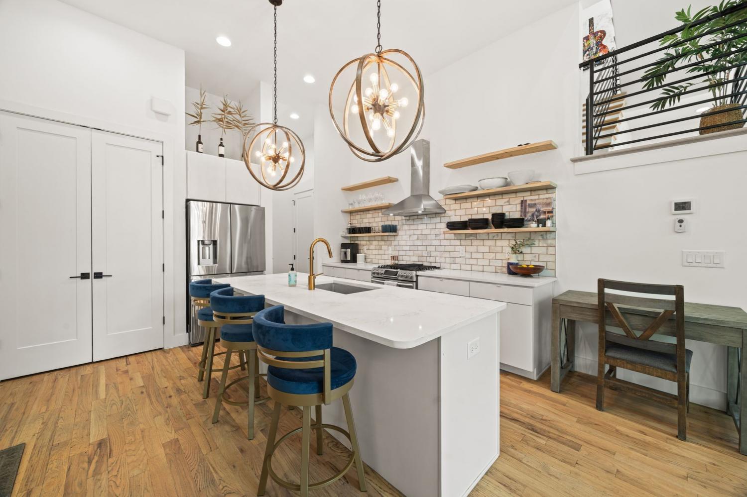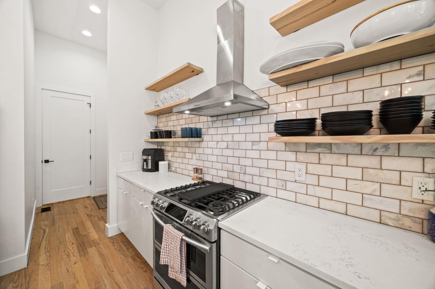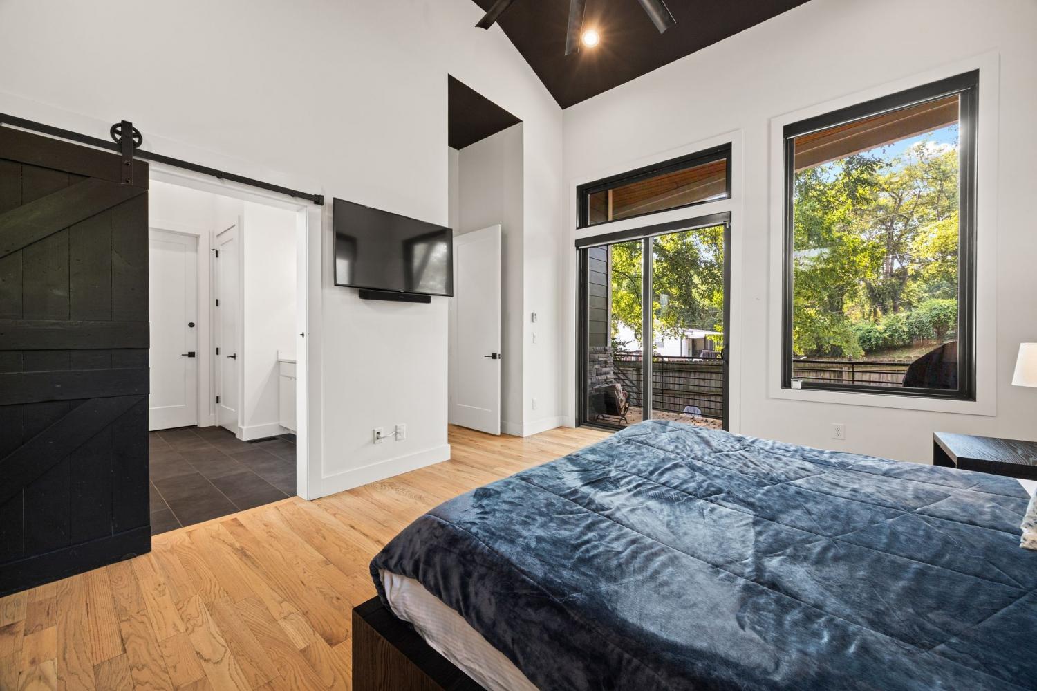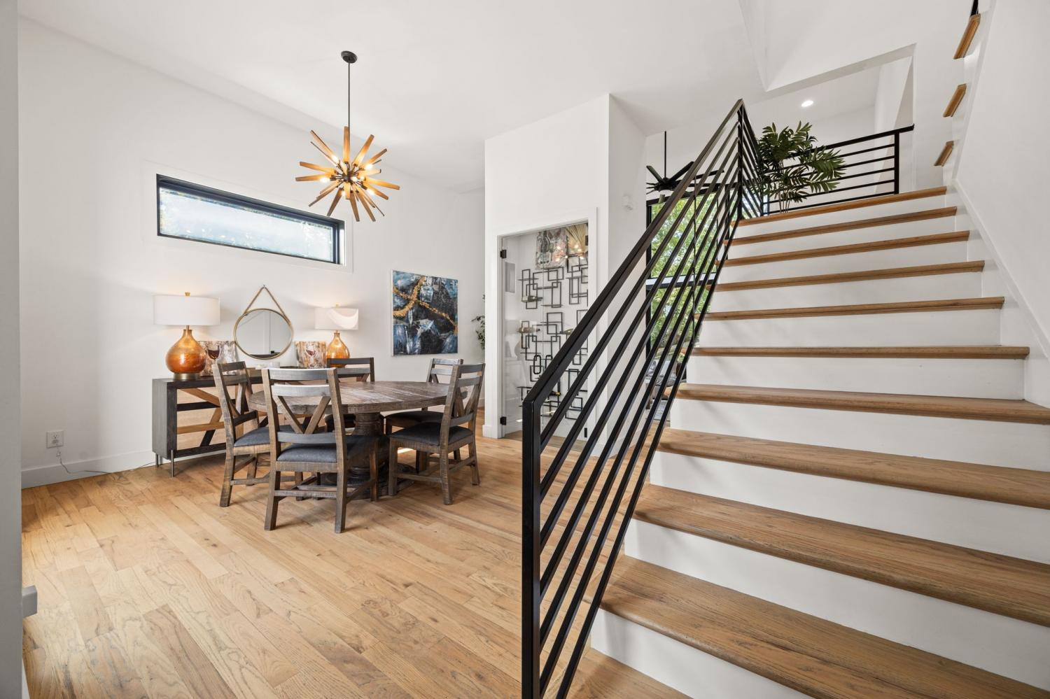 Located at the end of Electric Avenue and just 25 yards from Shelby Bottoms Park, this architecturally striking home is more than a residence—it’s your front-row seat to East Nashville’s vibrant culture. Inside, the home blends soaring scale with warm livability. Twenty-foot ceilings and huge black-framed windows flood the open-concept living area with natural light. A double-height great room flows into a designer kitchen and dining space, creating a breezy, communal feel. Automatic shades in the downstairs add to the comfort of the home. The primary suite is conveniently located on the main level and enjoys direct access to a covered deck with a fireplace—perfect for al-fresco dinners or quiet mornings overlooking the patio and firepit or fenced backyard. On the upper floors, every bedroom has its own ensuite bath, offering privacy for family and guests. The top-floor bonus room opens to a walk-out balcony, ideal for sunset cocktails or taking in treetop views. Additional highlights include a dedicated office nook, generous storage, premium appliances and a two-car garage. Comfort and connection come naturally here. Whether you’re enjoying shopping, going for food and drinks at Five Points, playing a round at Shelby’s historic golf course or catching a summer concert at Cornelia Fort Airpark, this home puts you at the center of it all. With its dramatic architecture, thoughtful floor plan and walkable location, 716 Village Ct offers a lifestyle that celebrates both modern luxury and the timeless spirit of East Nashville.