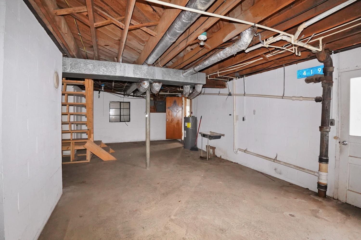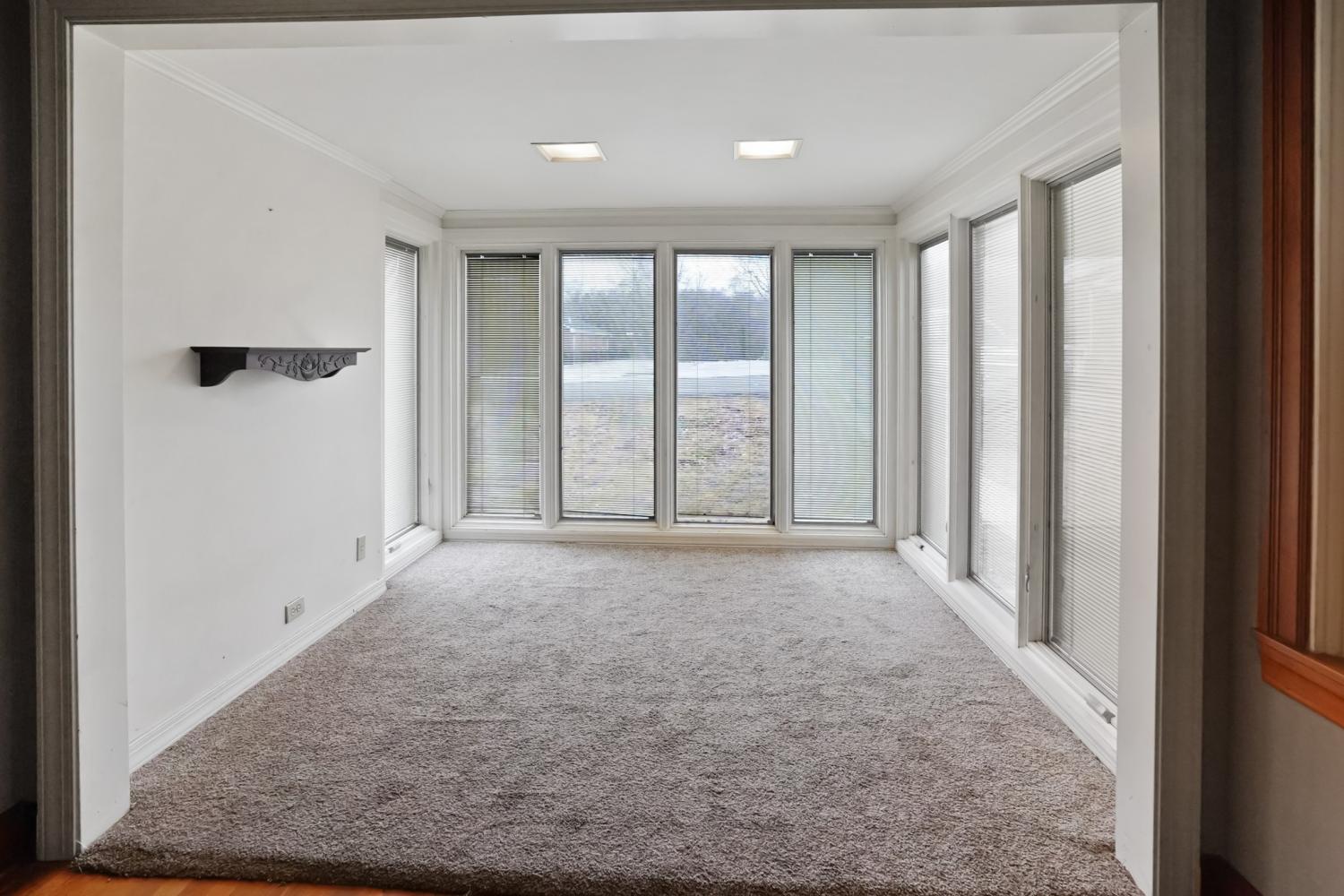 This charming home is loaded with character! Lovely tile front fireplace in the gathering room-ready for gas logs if you choose. Breakfast/ morning room lined with windows and sits off of the dining room. Family room could serve as 3rd bedroom-if necessary. Spacious laundry room on the main level. Notice the architectural steel roofing, full storage basement w/garage. The corner lot is very interesting with access to side and back street, as well as walking distance to town. Nice hardwood-tile-carpet-laminate flooring. Upgrades to the home include new exterior painting '25 and some new interior, new central unit in 2024, along with window replacement, insulation added to attic and the upgrade steel roof along the years.***Blue color of home is showing up brighter blue in photos.