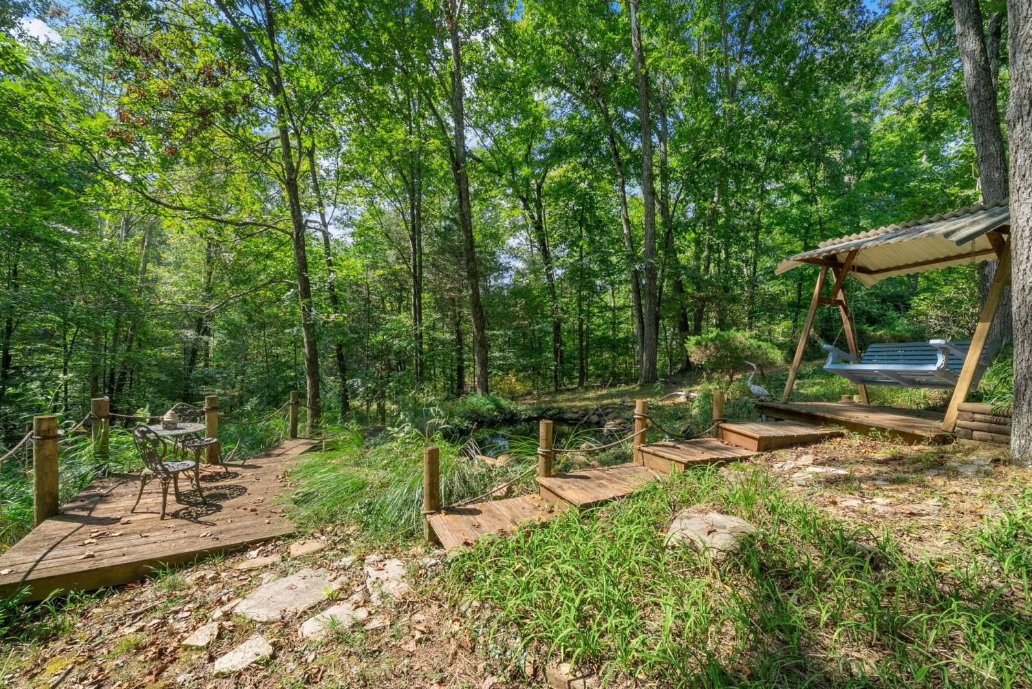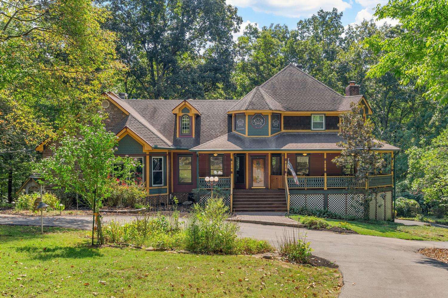 YOUR WOODLAND FANTASY AWAITS! Nestled in the whispering woods of Joelton, TN, where ancient oaks guard a realm of emerald light, 5039 Cougar Cove is a woodsy fantasy dream on seven acres of certified wildlife habitat. Lush landscapes with an abundance of perennials, a multi-tiered koi pond with pump system and conveying mature fish, a ready chicken coop, and 2 sheds invite you into an enchanted tale. This Victorian-inspired home, just under 4,000 sq ft of living space blending classical living and timber with the forest. A wraparound porch with ceiling fans welcomes you to a grand living room with fireplace and an eat-in kitchen with built-in appliances. Upstairs, bedrooms with walk-in closets offer treetop views; the main-floor primary suite is a private retreat. Downstairs, a detached apartment with full kitchen perfect for in-laws/parents/ or anyone who don't mind living with, new carpet (2024), and separate parking suits family or guests. New HVAC (2024), two newly installed water heaters (2023, 2024), and energy-efficient doors ensure peace. The screened sunroom, gazebo, and swings under starlit skies stir boundless joy. Just 20 minutes from Nashville, this sanctuary calls—your woodland story begins here. (additional photos coming soon). Roof is being replaced.