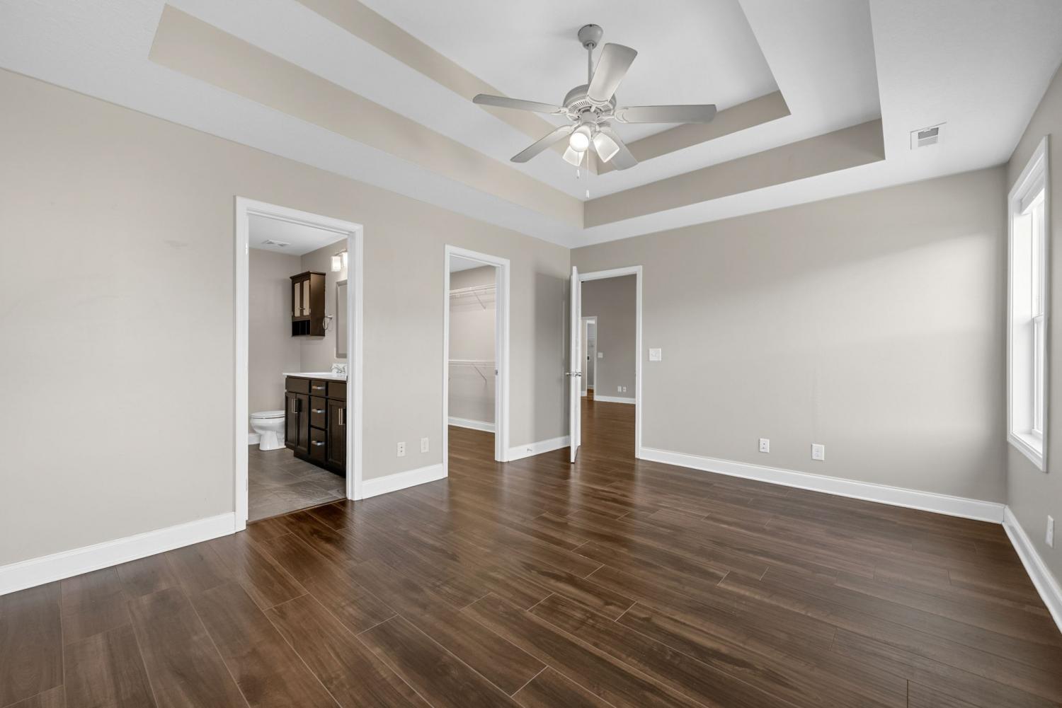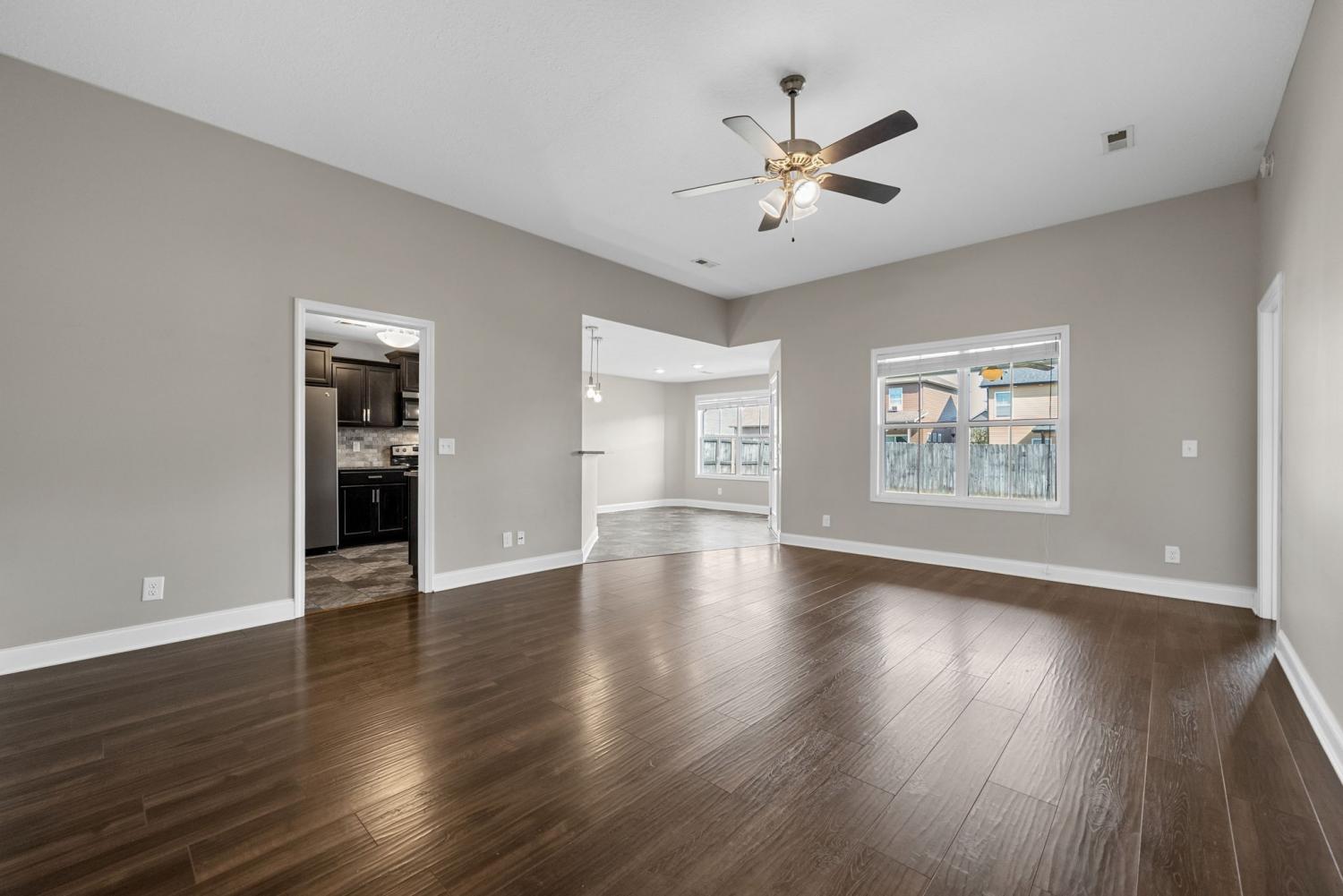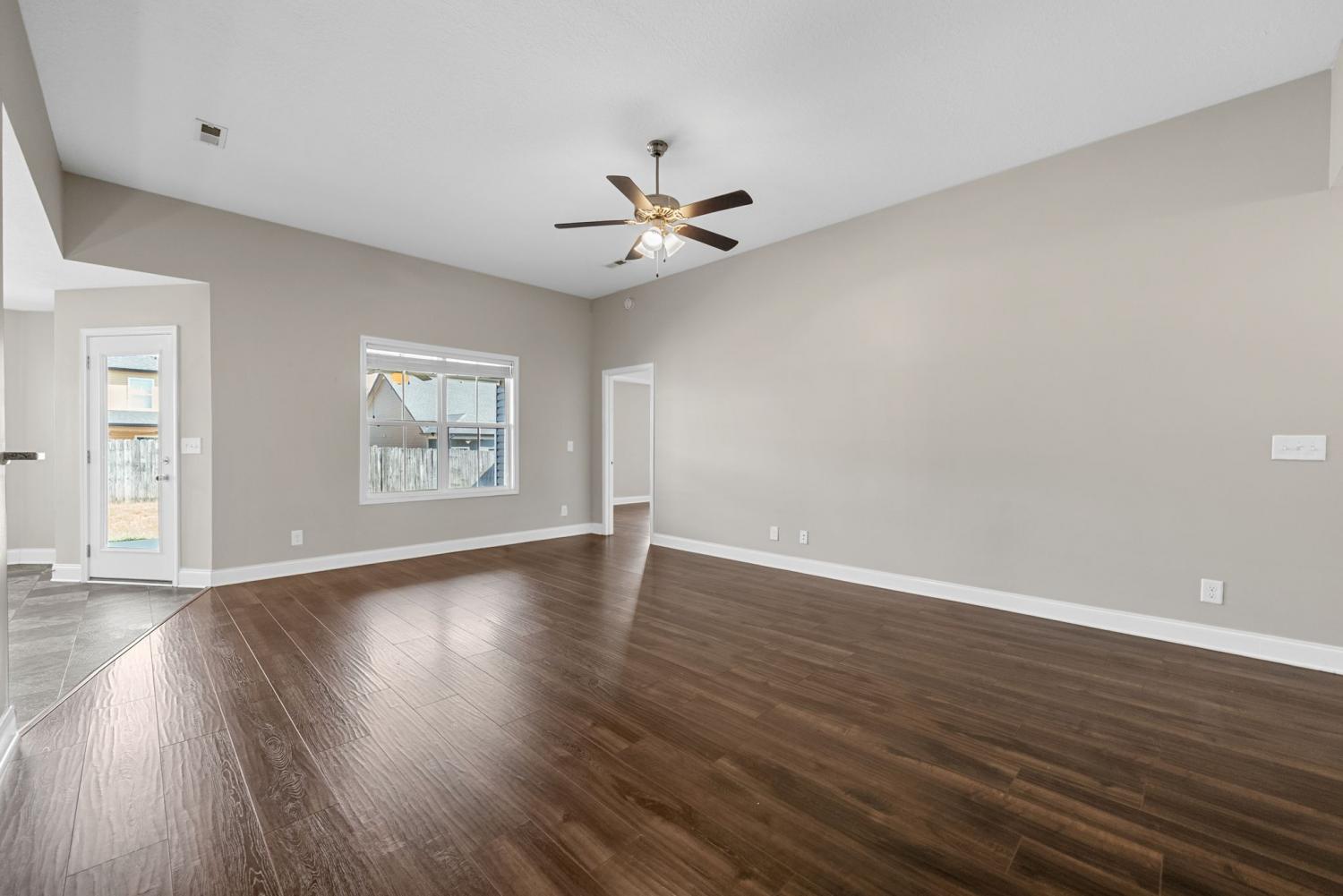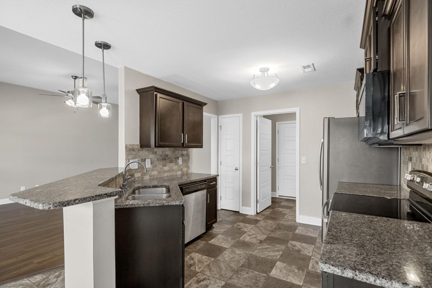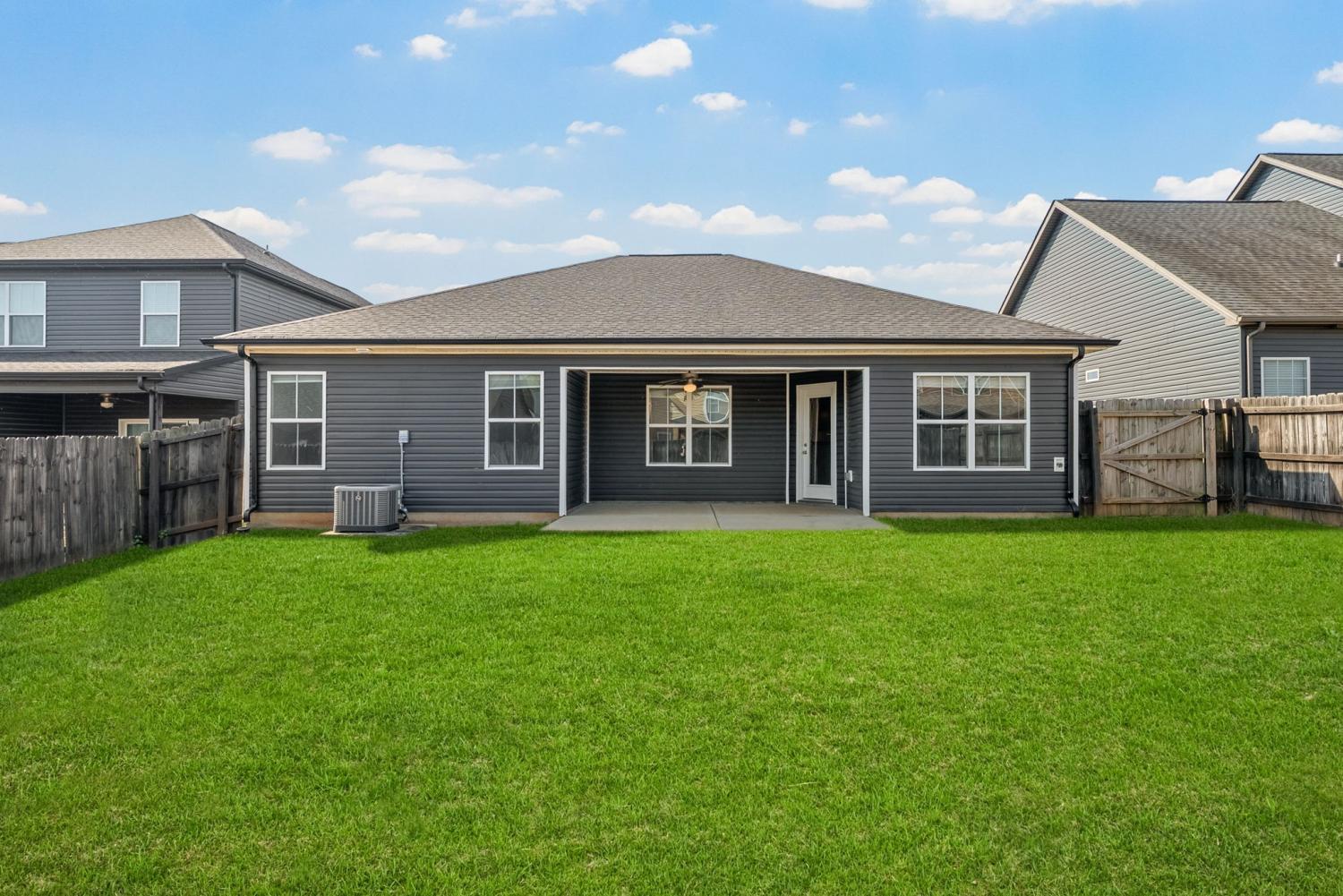 VA Assumable at 3.25%! Welcome to this beautiful three bedroom, two bath ranch home, perfectly located just minutes from restaurants, shopping, I-24, and more! This home features laminate flooring throughout all the main living areas and bedrooms, no carpet anywhere! The large living room flows seamlessly into a spacious kitchen complete with granite counters, stainless steel appliances, a breakfast bar, and a pantry! The primary suite offers a relaxing retreat with a full bath featuring a double vanity and a tiled shower! Both guest rooms are generously sized, providing plenty of comfort and versatility! Step outside to enjoy the covered patio overlooking the fenced yard, perfect for outdoor gatherings or simply unwinding!
