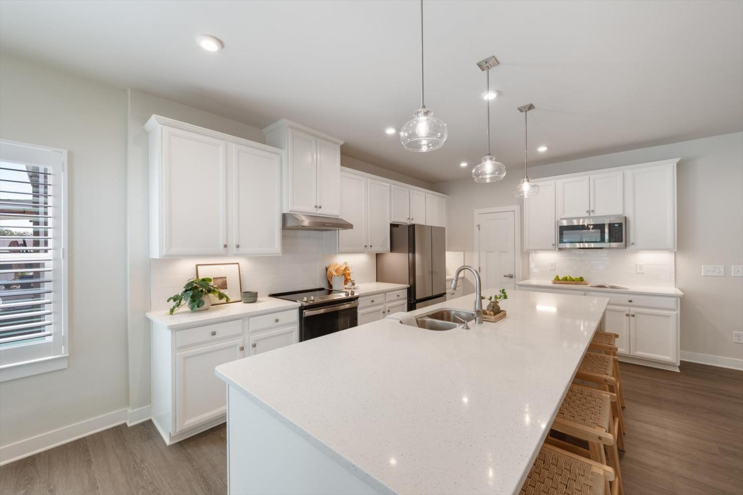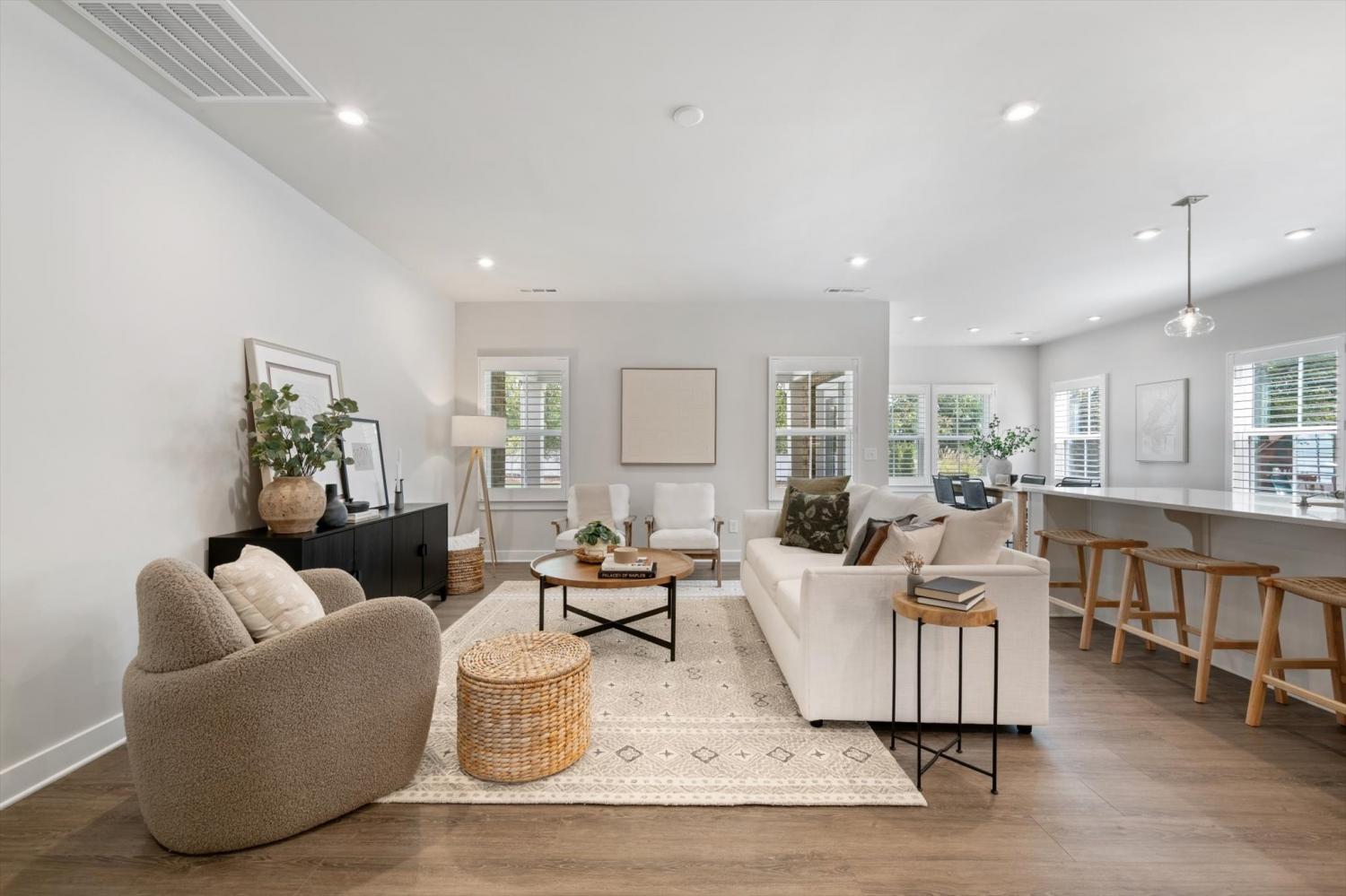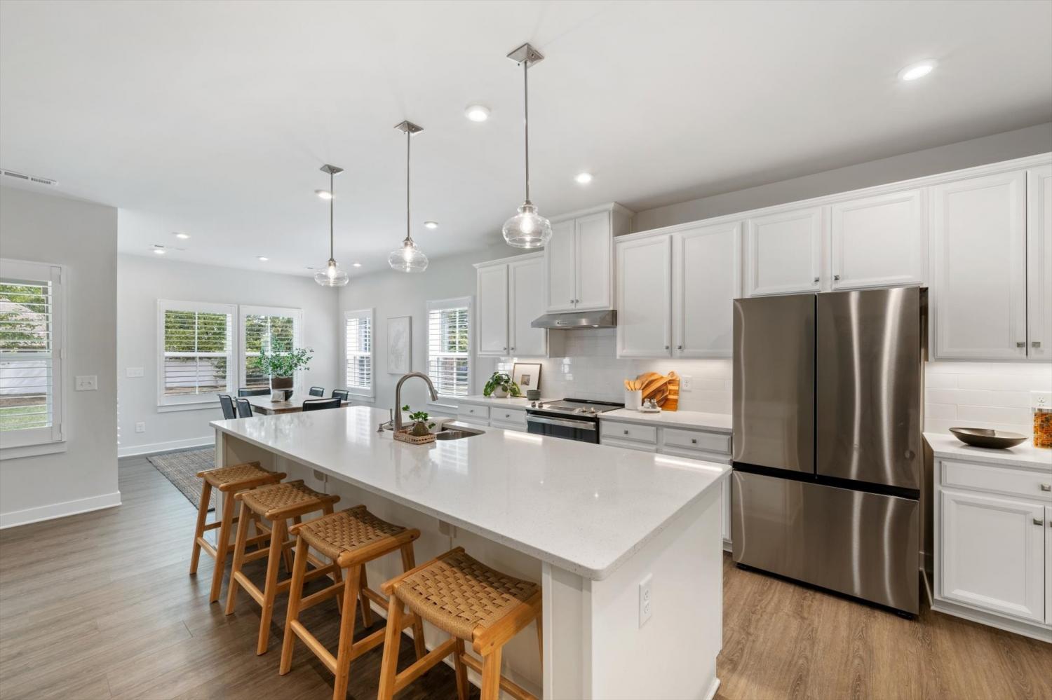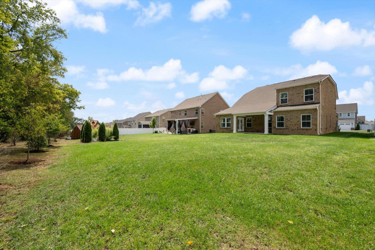 This immaculate, like-new home has $132,000 of thoughtful upgrades and timeless style. The main level offers two bedrooms and two full bathrooms, with the secondary bedroom currently presented as a home office. The light-filled kitchen features quartz countertops, upgraded cabinetry, and an extended island with a breakfast bar—an ideal layout for both everyday living and entertaining. Plantation shutters accent every window, luxury vinyl plank flooring spans the main level, and designer light fixtures add a refined touch. Upstairs, you’ll find three spacious bedrooms, a versatile bonus room, and exceptional walk-in storage. The fifth bedroom can easily serve as a media room, guest suite, or flex space. Outdoors, a covered patio overlooks the level backyard, complete with a full irrigation system. A tankless water heater provides everyday efficiency. The garage has been extended creating more space and comes equipped with an EV plug. Located in Fairway Farms—named Sumner County’s Best Community two years in a row—you’ll enjoy peaceful, sidewalk-lined streets, a community pool, and close proximity to parks, Old Hickory Lake, shopping, dining, and major routes including 386 and 109!