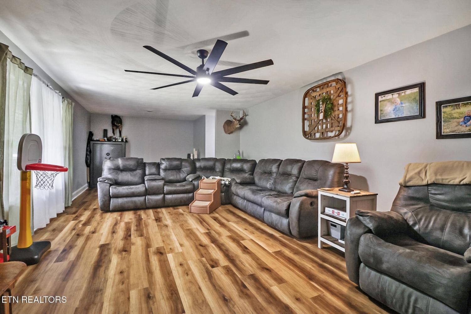 Beautiful 3 bedroom 2 bath brick home with 3+ acres and a full basement is located in Clarkrange West,large living area, spacious kitchen with lots of cabinets, large master suite, attached garage, covered back porch and fenced in area perfect for pets, this is a great home located in a beautiful neighborhood!!! Buyer to verify all information and measurements in order to make an informed offer