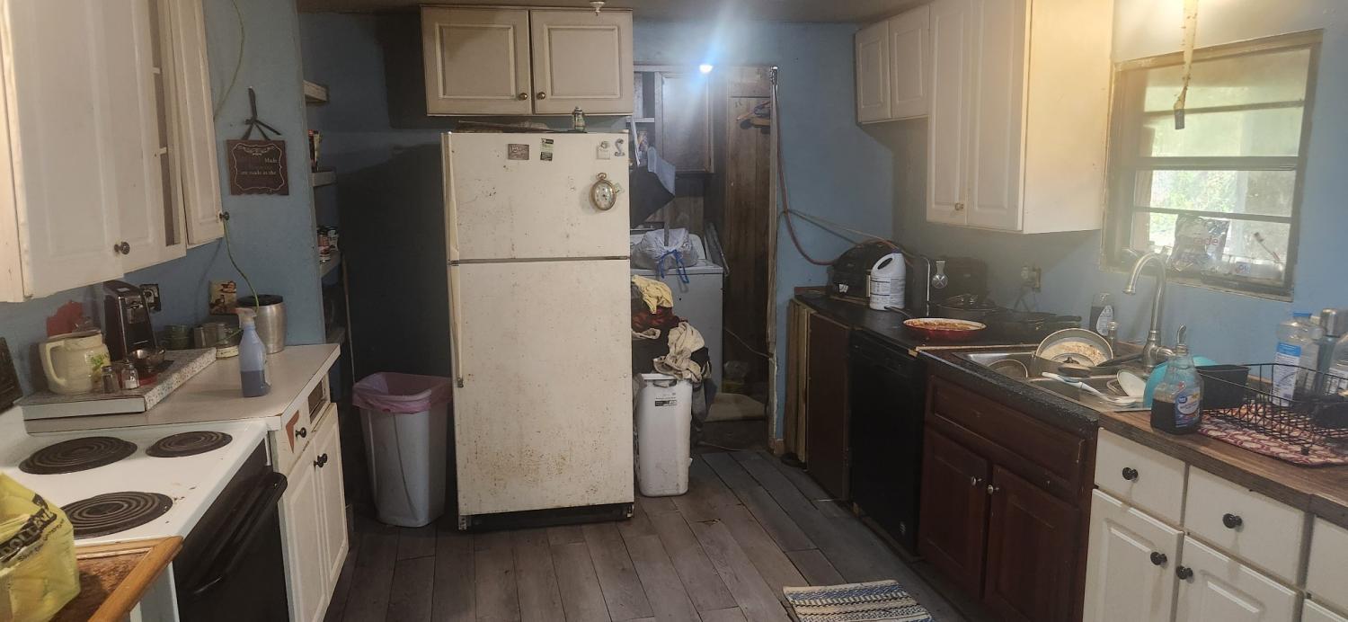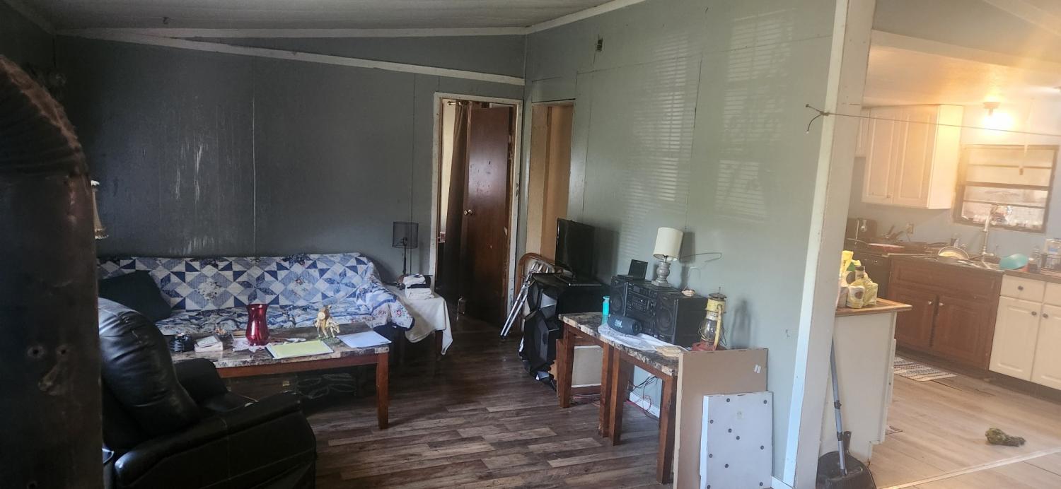 1232' mobile home with 3 beds/2 baths on 5 acres and less than $85,000. Inside of home is sound and in better shape than exterior pictures may suggest. Home and property will need mowing, cleaning, painting and minor repairs. Property was originally 6.82 acres but a small lot was surveyed out and sold to a family member (property map in the pictures section shows what was sold). Selling "as is". Buyer is welcome to make an inspection but seller will make no repairs or replacements. Cash or conventional financing. Acreage is based on the 6.82 tax record acreage minus the 1.54 acres that was surveyed out and sold.