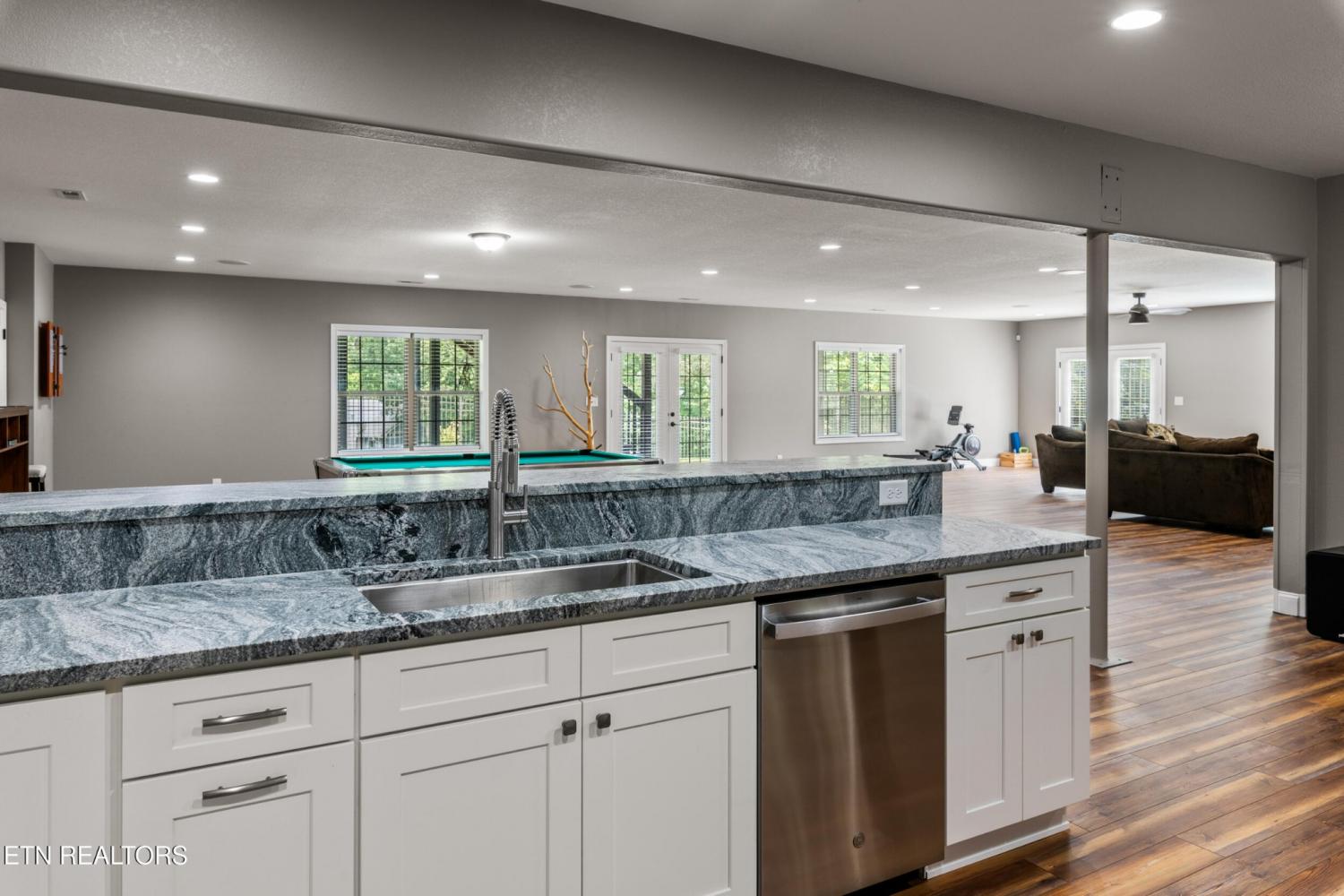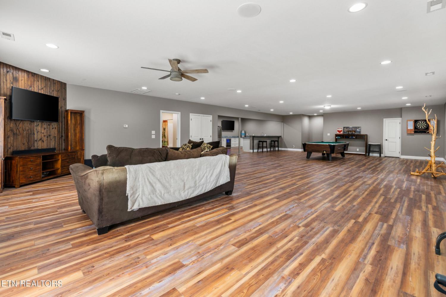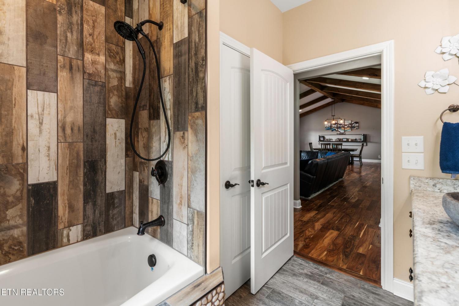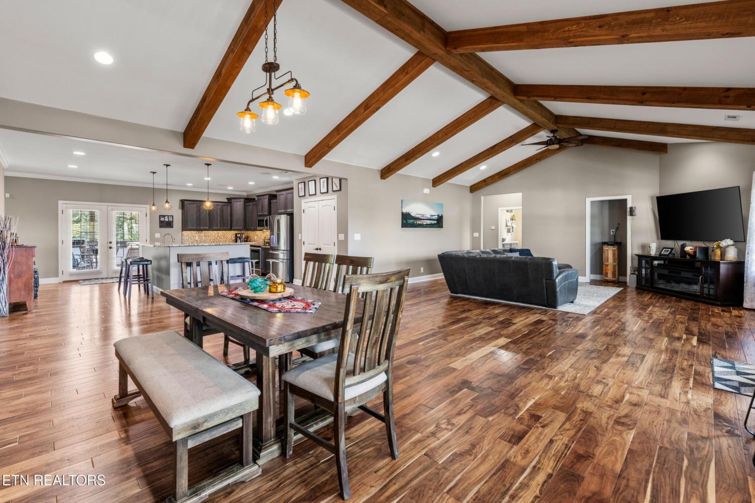 Experience peaceful, country living in this stunning 3-bedroom, 4-bath home in Maryville. Enjoy breathtaking, picturesque mountain views from the large covered porch. Inside, beautiful hardwood floors flow throughout, complemented by vaulted ceilings with exposed wood beams. The open-concept living and dining area is filled with natural light, and offers surround sound perfect for entertaining. The large kitchen features dark wood cabinetry, a brand-new backsplash, stainless steel appliances, pantry and a generous island to gather around. The luxurious primary suite boasts tray ceilings, and a dreamy en suite with dual walk-in closets, separate vanities and a spa-like walk-in shower with dual shower heads. Head out the French doors to the brand-new Trex back deck and inviting hot tub. Additional highlights upstairs include a versatile bonus room, a spacious laundry room with ample storage and utility sink, and private 3rd bedroom with full bath for guests. The large finished basement with kitchen, bath and separate surround sound is ideal for game days! There is no shortage of storage from the 2-car garage, to the walk in crawl space and over 600 square feet of temp controlled unfinished space with shelving. Don't miss this opportunity to own this incredible luxury home, call today for your private showing!