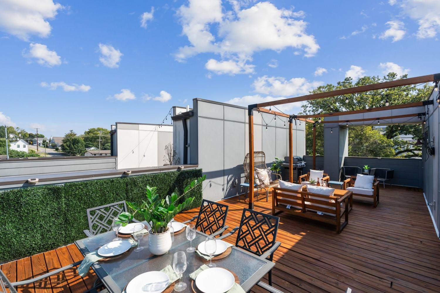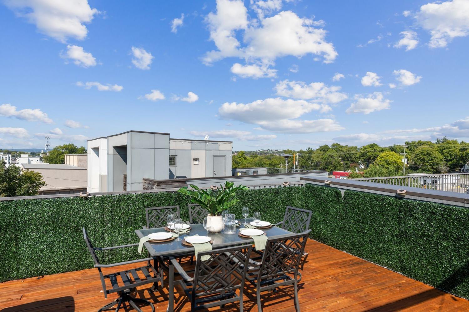 Welcome to Catalyst Nashville — where location meets lifestyle. Discover the perfect fusion of urban energy and neighborhood charm. Just minutes from downtown yet tucked away from the bustle, this modern home offers the ideal balance of convenience, comfort, and style. Step inside this sophisticated townhome featuring 3 bedrooms, 3.5 baths, and a 2-car garage with a Tesla charger. First-floor flex suite offers a full bath and walk-in shower — perfect for a home office, guest suite, or private retreat. Sleek stained concrete floors add a contemporary touch. Open-concept main living level featuring a chef’s kitchen with oversized island (seating for four), dedicated dining space, and spacious living room. Hardwood floors flow seamlessly through the rest of the home, creating warmth and continuity. Third-floor retreat includes the primary suite with spa-inspired bath, a secondary bedroom, and a laundry closet designed for full-size washer and dryer. The rooftop terrace steals the show — your private escape for relaxing, entertaining, or soaking up stunning views of Nashville’s skyline. This home is for the person that wants both Lifestyle & Location... with walkable West Nashville setting with easy access to restaurants, retail, and entertainment. Just a quick commute to downtown and Nashville’s legendary music scene. Surrounded by parks, trails, and green spaces — offering the perfect blend of outdoor balance and city living. Close to shopping, healthcare, and everyday essentials. This home is more than a residence — it’s a modern urban retreat designed for those who want connection, convenience, and a front-row seat to Nashville’s vibrant culture.
