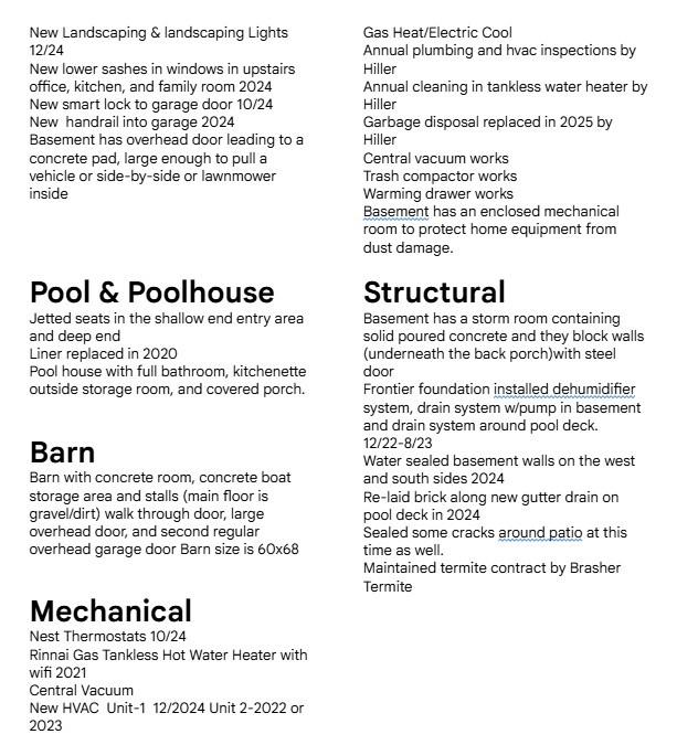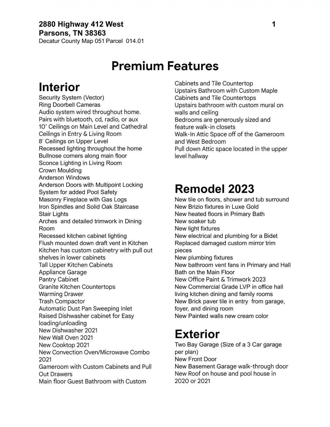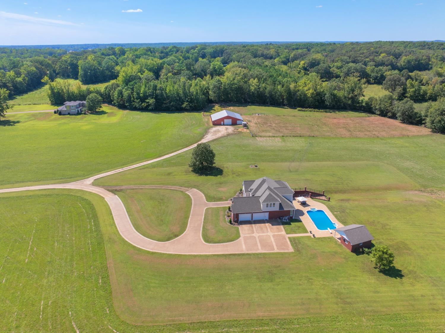 Escape to this stunning estate on 40 acres w/NO restrictions located 2.8 miles from downtown Parsons w/ access to shopping, fiber internet, & Walmart delivery! 1.5hrs from Nashville & 2 hrs from Memphis. Brick home w/ matching brick pool house or mother in law suite, & barn w/storage. High quality finishes. Well maintained. The big ticket replacement items have been completed. Creek lines the property on 2 sides & hosts incredible sunsets from the back patio. Lots of upgrades! Updated primary suite includes a spa-like bathroom w/ heated tiles, soaking tub, custom tile shower, private toilet closet w/ heated bidet, custom cabinetry w/ marble tops, & stunning Brizo luxe gold fixtures. Cooking in this kitchen is a pleasure, w/ its connection to the breakfast, family, & dining rooms w/ picturesque views of the backyard. Premium appliances, (convection oven, convect microwave/oven duo, warming drawer, touch faucet, trash compactor, & garbage disposal) make prep and cleanup a breeze! The family room is the perfect reading spot w/ transom windows & masonry fireplace to keep you cozy all winter long. Living room is open & inviting w/ access from the front entry & dining room to the back patio making hosting in any season a delightful experience. Upstairs offers generously sized bedrooms w/ walk-in closets, Jack/Jill bath, Gameroom, & walk-in floored attic. Basement w/ safe room w/concrete filled walls, mechanical room for vital system equipment, generous gameroom/flexspace, & workshop w/overhead & walkthrough doors leading to exterior concrete parking pad. Enjoy a 20x40 salt h2o pool w/ jetted seats, expansive patio, covered porches, & breathtaking sunset views. The pool house w/ kitchenette & full bath makes an ideal mother-in-law suite. A 60x68 barn provides a tack room, washroom, stalls, & storage for boats or tractors. Updated HVAC units, roof, landscaping, tankless H2O heater, pool liner, foundation drainage system, & more. Owner/agent.