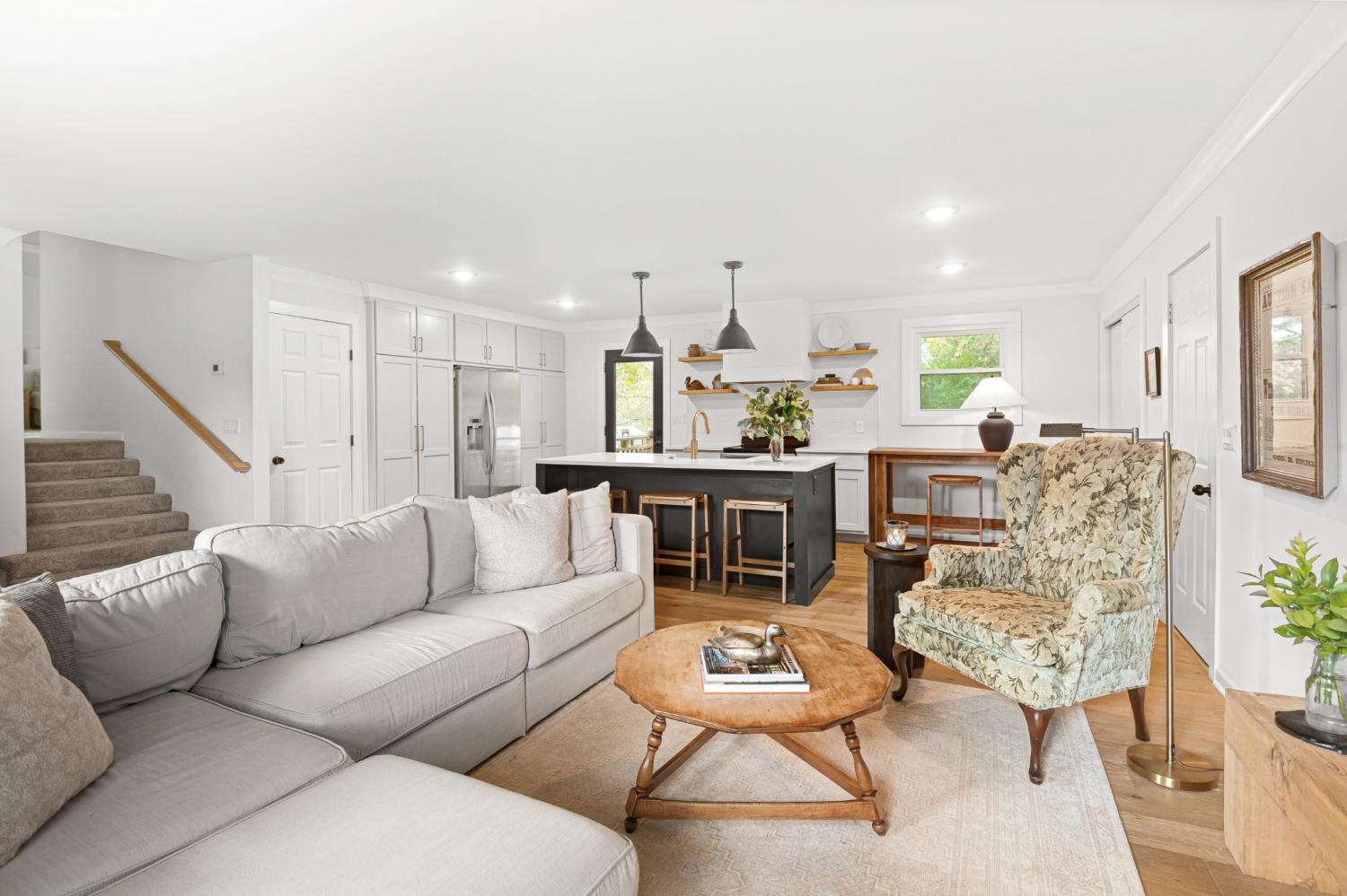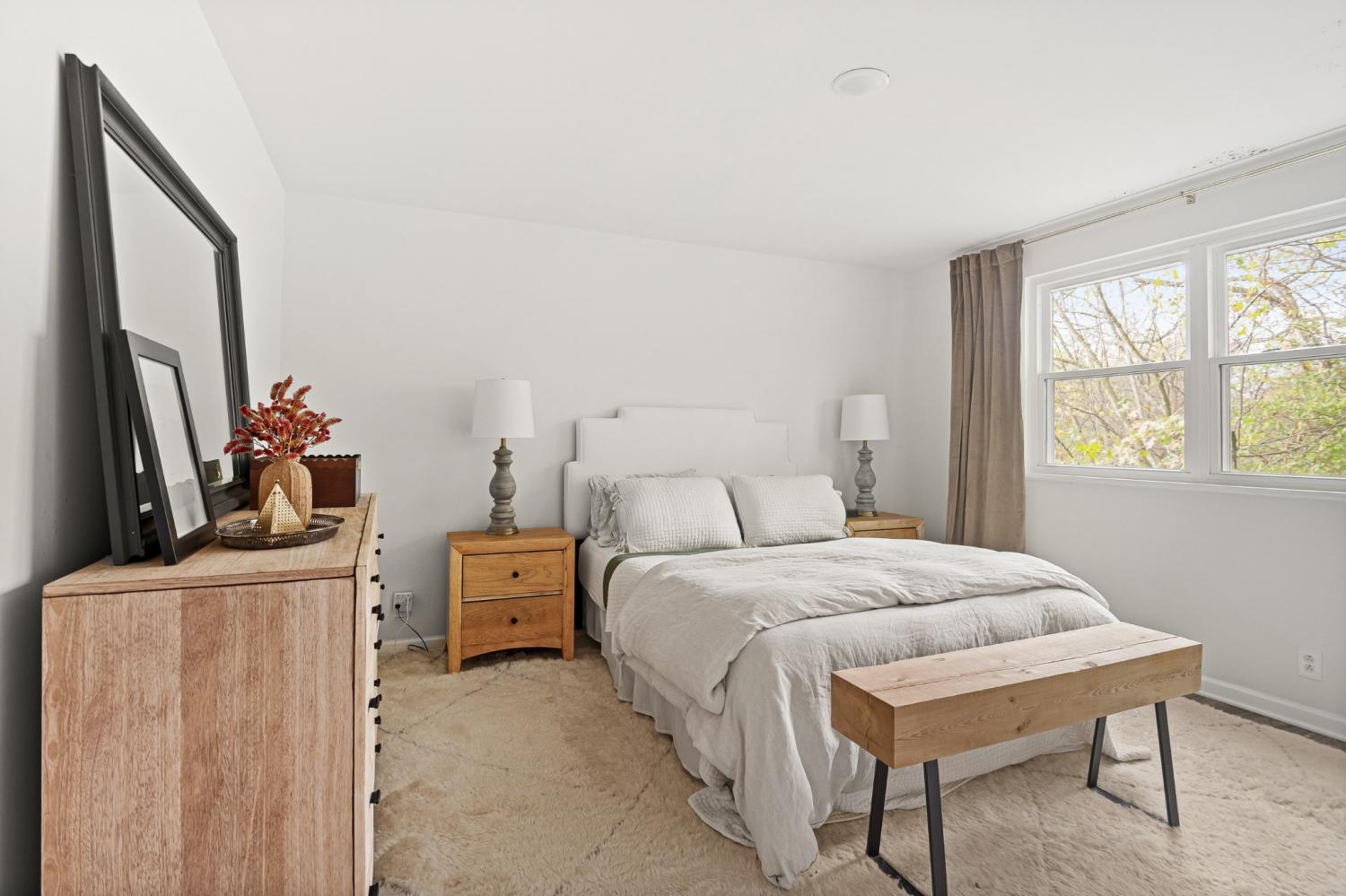 This beautifully renovated 4-bedroom, 3-bathroom split-level home sits on a fenced half-acre lot with oak trees, offering privacy and convenient access to local parks and trails. The open floorplan flows from a spacious living room into a kitchen with stainless steel appliances, built-in cabinets, quartz countertops, a tile backsplash with a pot filler, and a large quartz island with a farmhouse sink. Hardwood floors span the main level, with new windows and fresh paint throughout. Upstairs, you'll find three comfortable bedrooms and two full bathrooms. The lower level features a private in-law suite with its own entrance and patio, a large den with a cozy fireplace, a bedroom, a spacious full bathroom, a second laundry room, and a convenient kitchenette. Previously used as a successful Airbnb, this suite offers excellent potential for multi-generational living or rental income. The fenced backyard is truly special with a deck, patio, a stone firepit area, and ample space for children and pets to play. Mature trees draw a variety of local birds, creating a peaceful spot for birdwatching and relaxation. NEW Roof, Gutters, and gutter guards installed Sept 2025.