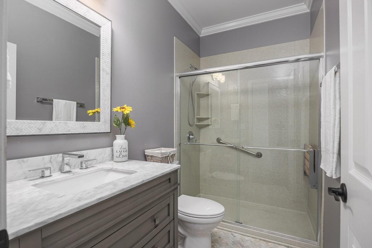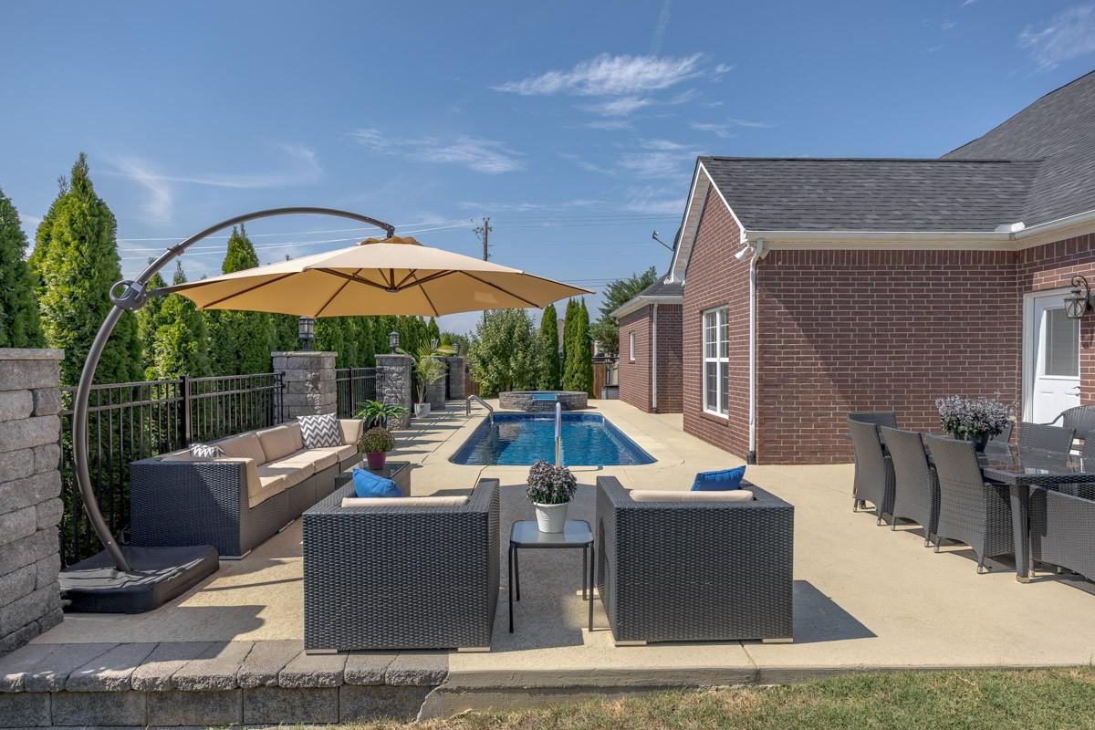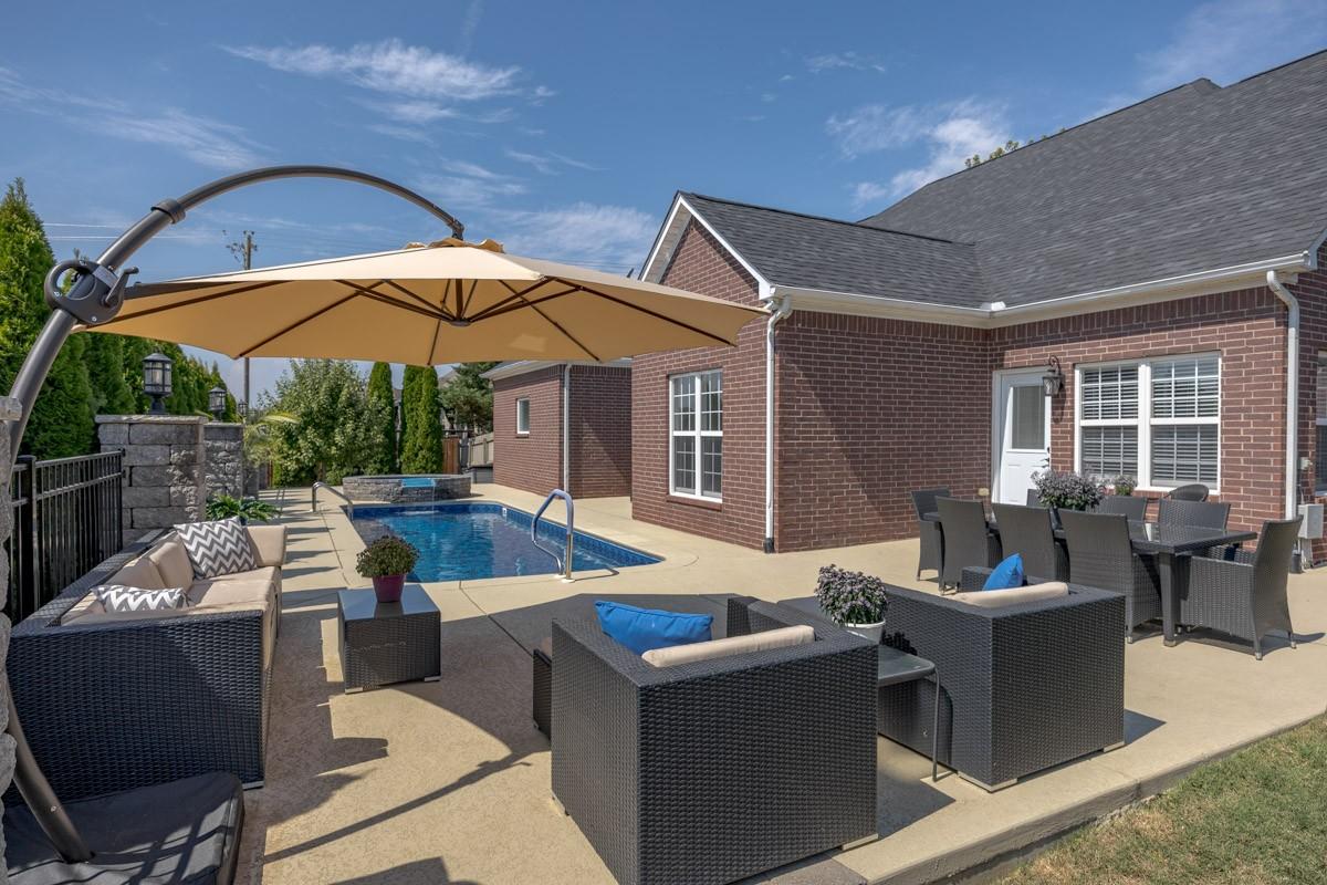 Move-in ready retreat with soaring ceilings, spa-like primary suite and a private saltwater pool. This beautifully renovated property blends elegance and comfort with soaring ceilings, natural light and a striking stone fireplace. The chef's kitchen boasts quartz countertops, a large island, white cabinetry and stainless appliances - all included. The main-level primary suite offers a spa-like retreat with soaking tub oversized shower and dual walk-in closets. Step outside to your private backyard oasis: a saltwater pool with new liner hot tub with waterfall, stamped concrete patio and outdoor rattan furniture with a new. cantilever umbrella - all pool furniture and equipment convey. With thoughtful updates throughout (roof 2 years, HVAC 2019, new water heater), this home is move-in ready and waiting for you to create lasting memories. Don't miss your chance to own a home that offers both everyday comfort and unforgettable entertaining.