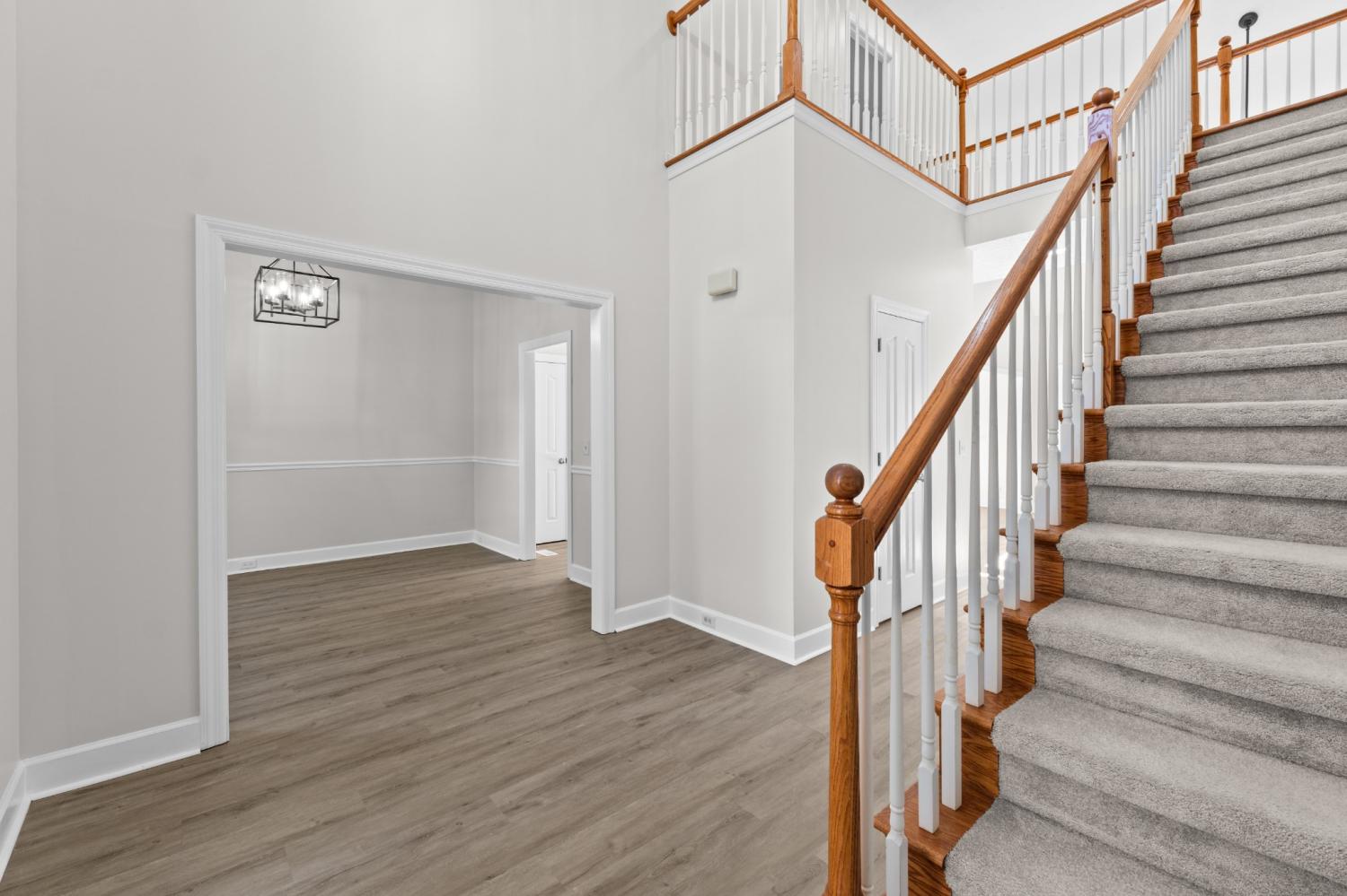 This stunning brick-front home with high ceilings is situated on a spacious .34 acre lot just minutes from shopping, dining, and schools. Offering modern updates throughout, this home blends style, comfort, and convenience. Interior Features: • 4 bedrooms, 2.5 bathrooms • Formal dining room and breakfast nook • First-floor master suite with garden tub and walk-in shower • Brand new LVP flooring on the main level • Fresh interior paint and updated light fixtures • Renovated kitchen with new backsplash • Cozy wood-burning fireplace in the living area • 3 additional bedrooms located upstairs Exterior & Lot Features: • Brick front elevation with great curb appeal • Side-entry garage with extended driveway that accommodates up to 5 vehicles Spacious backyard with a brand new 14’ x 16’ Deck , perfect for entertaining and family gatherings Painted Garage, washer and dryer will convey, New A/C unit installed and other one maintained by professional, full service for Roof maintenance done by professional contractor. Washer and dryer will convey This fully renovated property is move-in ready and offers the perfect combination of modern finishes and a fantastic location.