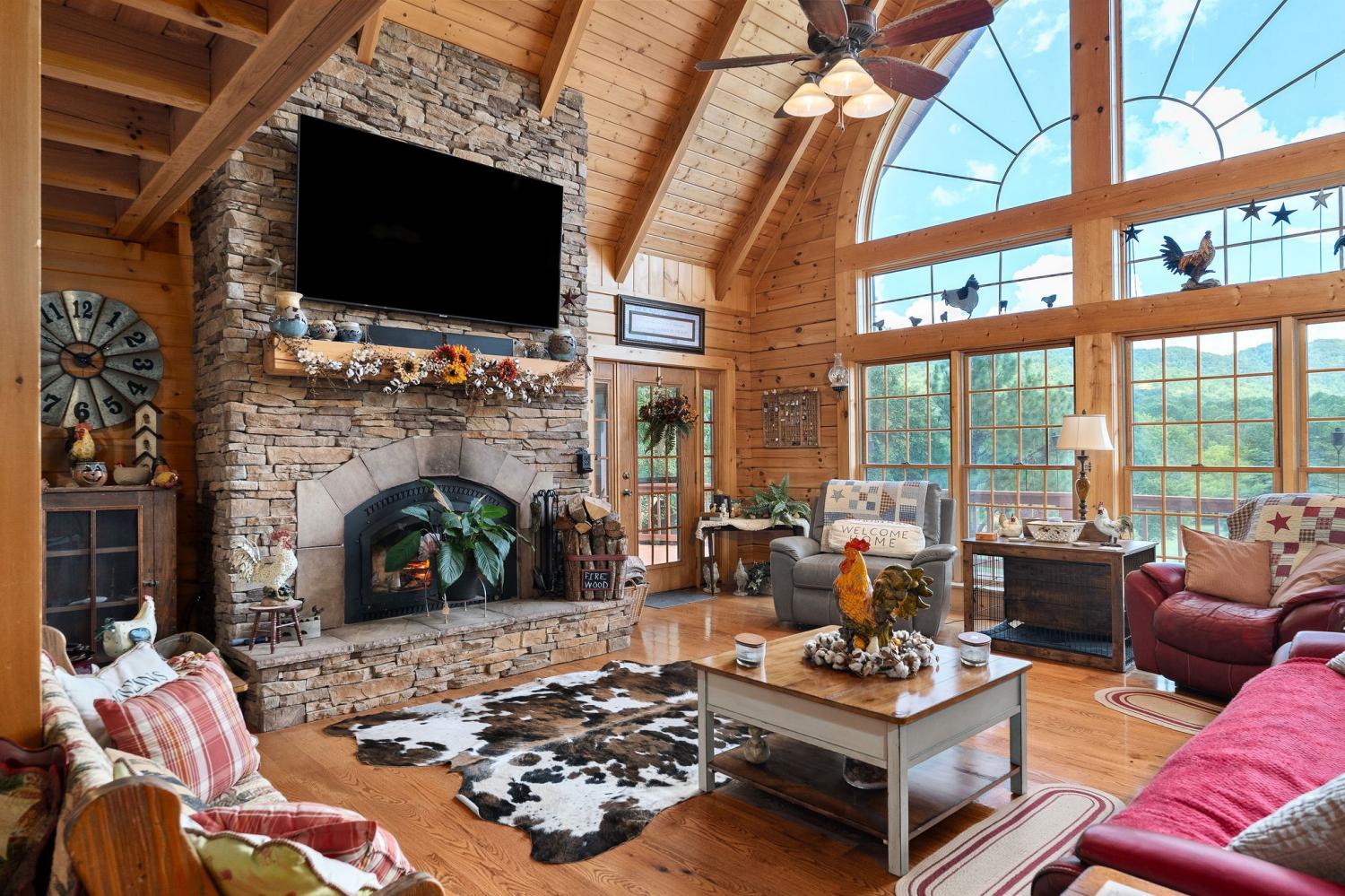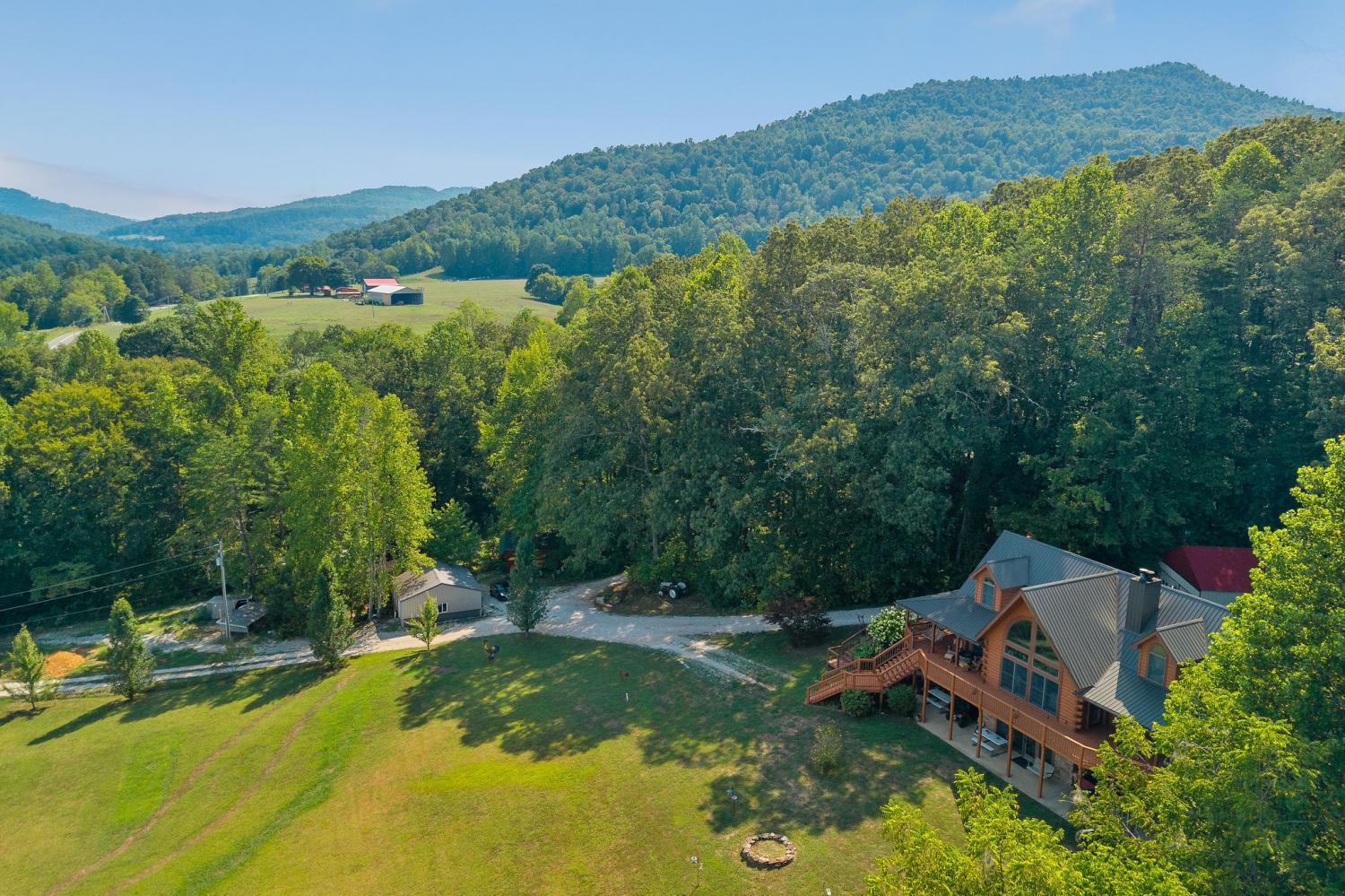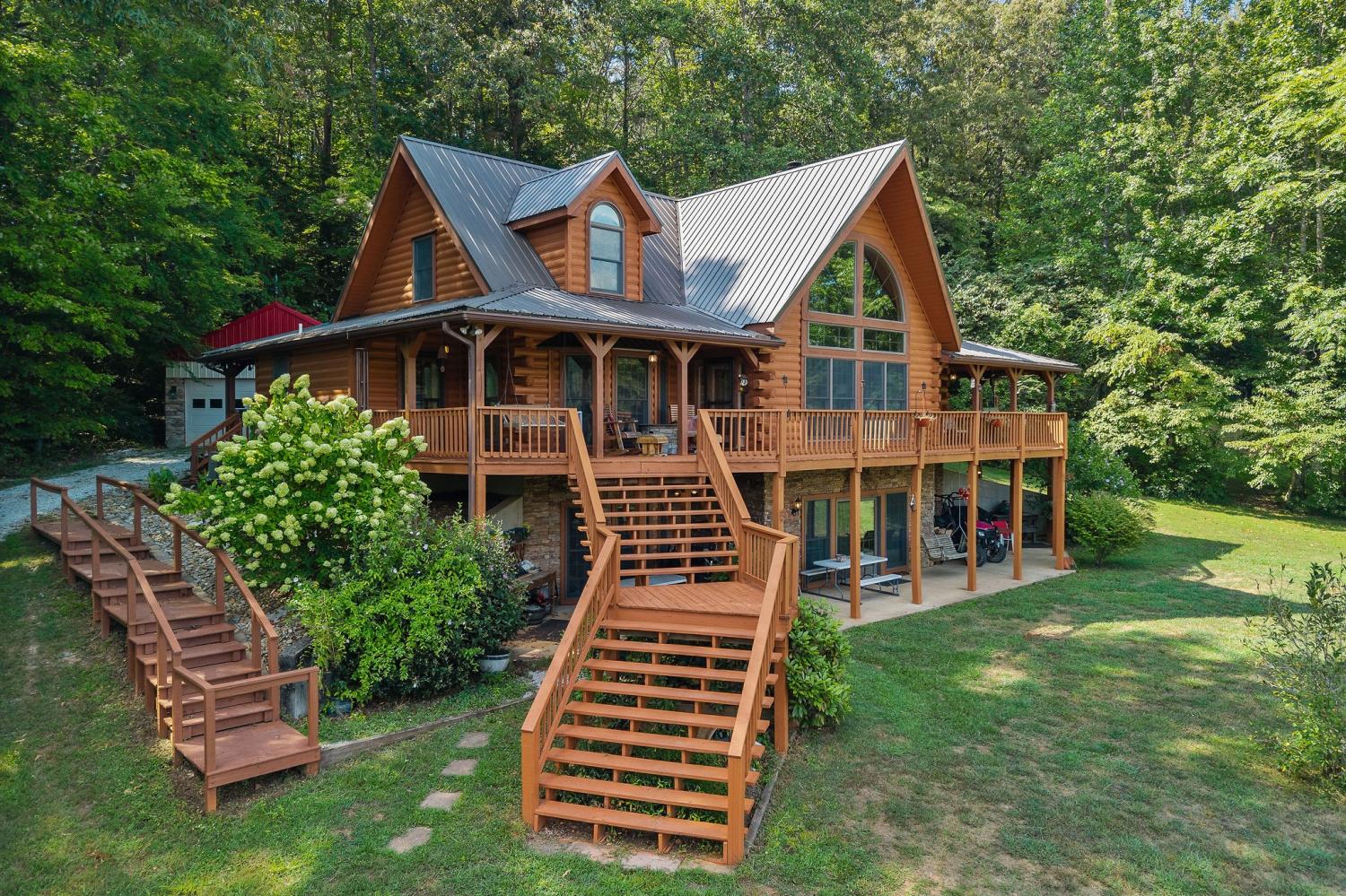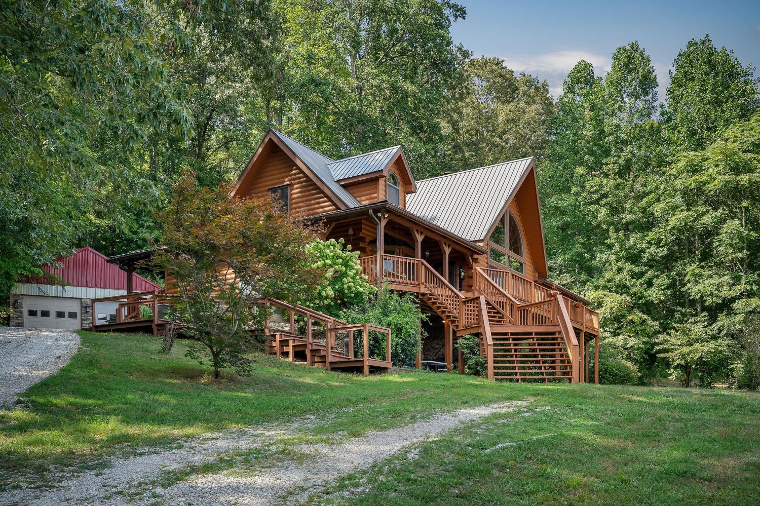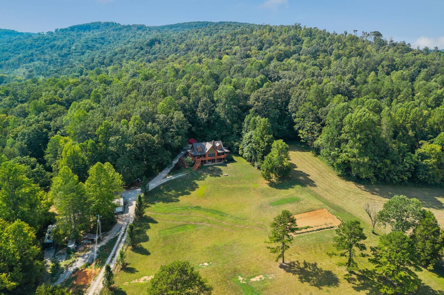 Welcome to 1062 Wilder Highway – a rare opportunity to own TWO beautiful homes on 12 scenic acres with sweeping views of the Tennessee hills. The main residence offers 4,400 sq. ft. of resort-style living, featuring hardwood floors, 4 spacious bedrooms, and 3.5 bathrooms. The gourmet kitchen boasts granite countertops, stainless steel appliances, and an open flow perfect for entertaining. A fully finished basement provides a complete second living area with a full kitchen, bedroom, and bath—ideal for multi-generational living or guests. Cozy evenings await by one of two woodburning fireplaces, adding to the mountain retreat feel. The second home, recently remodeled, is 1,100 sq. ft. with 1 bedroom, 1 bath, and a loft—perfect as a guest house, rental, or in-law suite. Outdoors, the property offers open spaces for gardening or animals, a detached two-car garage, an implement shed, and a versatile shop that could serve as a home office.