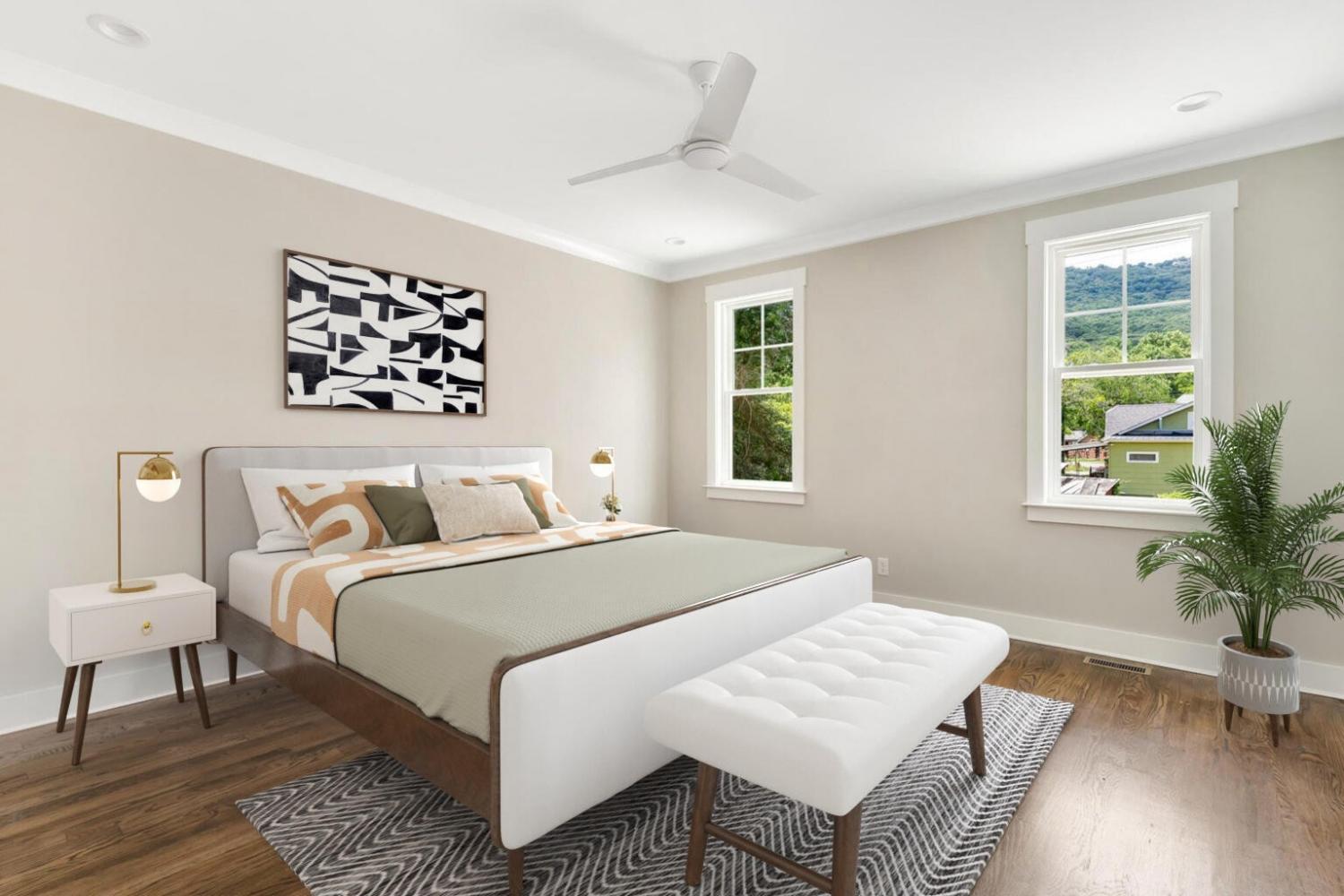 This beautiful Bungalow features a unique floor plan with 2 suites, the Primary Suite on the main and a 2nd suite on the upper level adjacent to an office / bonus room. Perfect for the work at home lifestyle. There is an additional bedroom with attached full jack-n-hall bath and a full sized office as well. The kitchen features a gas stove and an island for prep and entertaining. The main level also features hardwoods, laundry room and beautiful great room complete with a gas fireplace. Also, the builder has encapsulated the crawlspace which creates a healthier, more comfortable, and energy-efficient home for your peace of mind. St Elmo South's community amenities include sidewalks, a Large Community Lawn, a Hardscape Fire pit and a Fenced Dog Park. This location is perfect for the cyclists (hardcore or casual), folks that like to hit the trails or just stroll and bike up VA Ave. Developed by HGH Construction, renowned for their commitment to excellence and attention to detail, these homes are built to the highest standards. >>Call TODAY for your Private Tour<<