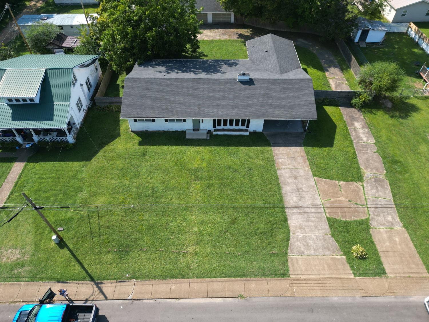 Welcome Home! Step inside this beautifully spacious, all-brick ranch-style home offering 4 bedrooms and 3 full bathrooms. With both a **family room and living room—each featuring its own gas fireplace—you’ll have plenty of space to gather, entertain, or simply relax. The primary suite is tucked away from the guest wing for added privacy and includes its own ensuite bath and generous walk-in closet. The guest wing offers 3 additional bedrooms and 1 full bath, with one of the bedrooms also boasting its own private ensuite. This home comes move-in ready with all appliances included: refrigerator, washer, dryer, and even an additional refrigerator in the storage room off the carport. Outside, enjoy the convenience and versatility of two detached garages: a full brick, 2-car garage/shop with electricity, and a single-car metal garage/shop—all enclosed by a full privacy fence. Recent updates include the roof, furnace, and A/C compressor (2021), giving you peace of mind for years to come. Situated on a large in-town lot with all city utilities, this property offers endless possibilities for its future owner. Spacious layout, updated systems, multiple garages, and a private fenced yard—all in one move-in ready package! Vivit System Control of HVAC , Carport Door lock, and Fire alarms controlled by an app. Equipment will stay with home. Just will need a monthly subscription.