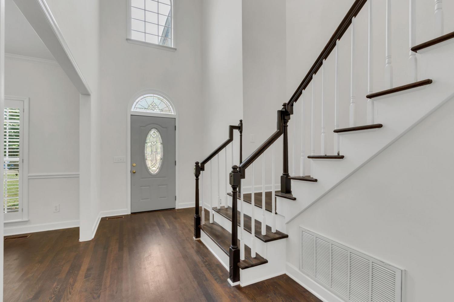 Welcome to this stunning home in the highly sought-after Andover Subdivision of Franklin. Featuring 4 bedrooms (or 5 bedrooms) and 3.5 bathrooms, this residence blends timeless design with modern comforts. The primary suite is conveniently located on the main floor, showcasing a tray ceiling, spacious walk-in closet, and a luxurious bathroom with a soaking tub and separate shower. The open-concept floor plan boasts entire inside home repainted, new front door, vaulted ceilings, hardwood floors throughout (no carpet), and abundant natural light.The chef’s kitchen is beautifully appointed with granite countertops, white cabinetry, stainless steel appliances, and a gas stove, flowing seamlessly into the dining and living spaces for easy entertaining. Huge bonus room over the garage with walk in closet (which could be a 5th bedroom). Office with a built-in bookcase on second floor adds charm and functionality, while thoughtful details throughout provide tons of storage, including a large walk-in storage space under the home.Step outside to enjoy a park-like private backyard with an expansive deck, perfect for outdoor living. The property backs up to a large common area that can never be built on, offering an exceptional sense of space and privacy. Home is perfect for short commutes- only a minute from I-65 and less than 5 minutes from Downtown Historical Franklin and walking distance to shopping and restaurants. Close to Whole Foods, Trader Joe’s and Galleria Mall. Located in Williamson County school system. This home combines elegance, comfort, and a rare setting in one of Franklin’s most desirable neighborhoods!