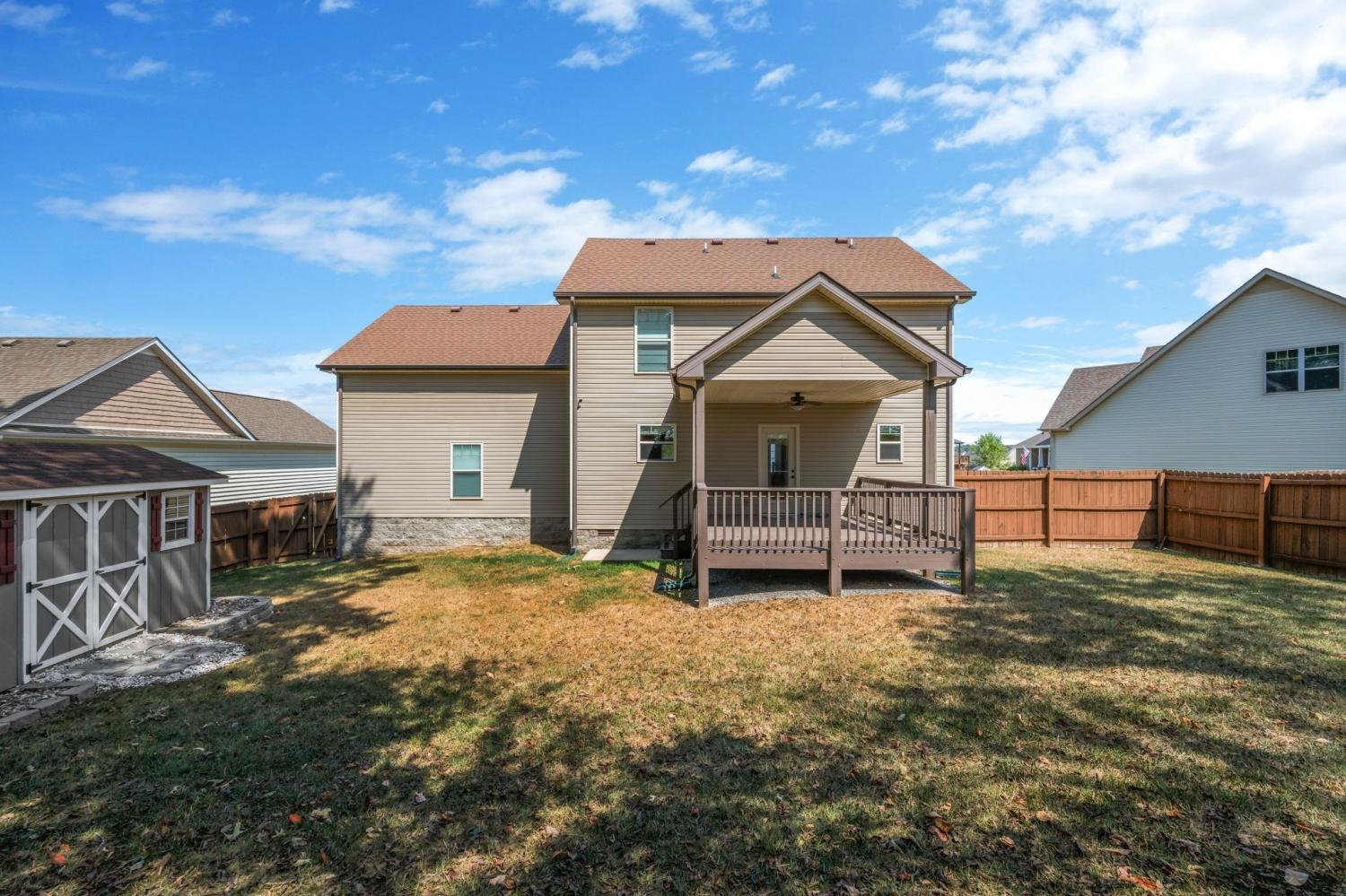 Welcome to a well-maintained, move-in ready home in the desirable Turners Cove neighborhood of Clarksville, just off I-24 at Exit 8. This spacious home blends smart upgrades with functional design, offering a flexible layout perfect for everyday living and entertaining. The open-concept main floor features a bright kitchen with brand-new GE appliances, flowing seamlessly into the living, dining, and eat-in areas. A convenient half bath and laundry room complete the first level. Upstairs, you’ll find three generously sized bedrooms, including a primary suite with a vaulted ceiling and an oversized walk-in closet. A separate staircase leads to a large bonus room with its own walk-in closet, ideal as a media room, home office, or potential fourth bedroom. Additional features include an oversized two-car garage, custom Levolor blinds throughout, fresh interior paint, gutter guards with a transferable lifetime warranty, and a storage shed that conveys with the property. Step outside to a private, covered back deck with no rear neighbors — perfect for relaxing or entertaining. Located in the highly regarded Kirkwood school district and just 45 minutes to Nashville International Airport, this home combines comfort, convenience, and long-term value. Don’t miss your chance to make it yours!