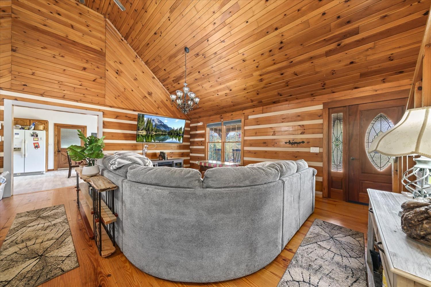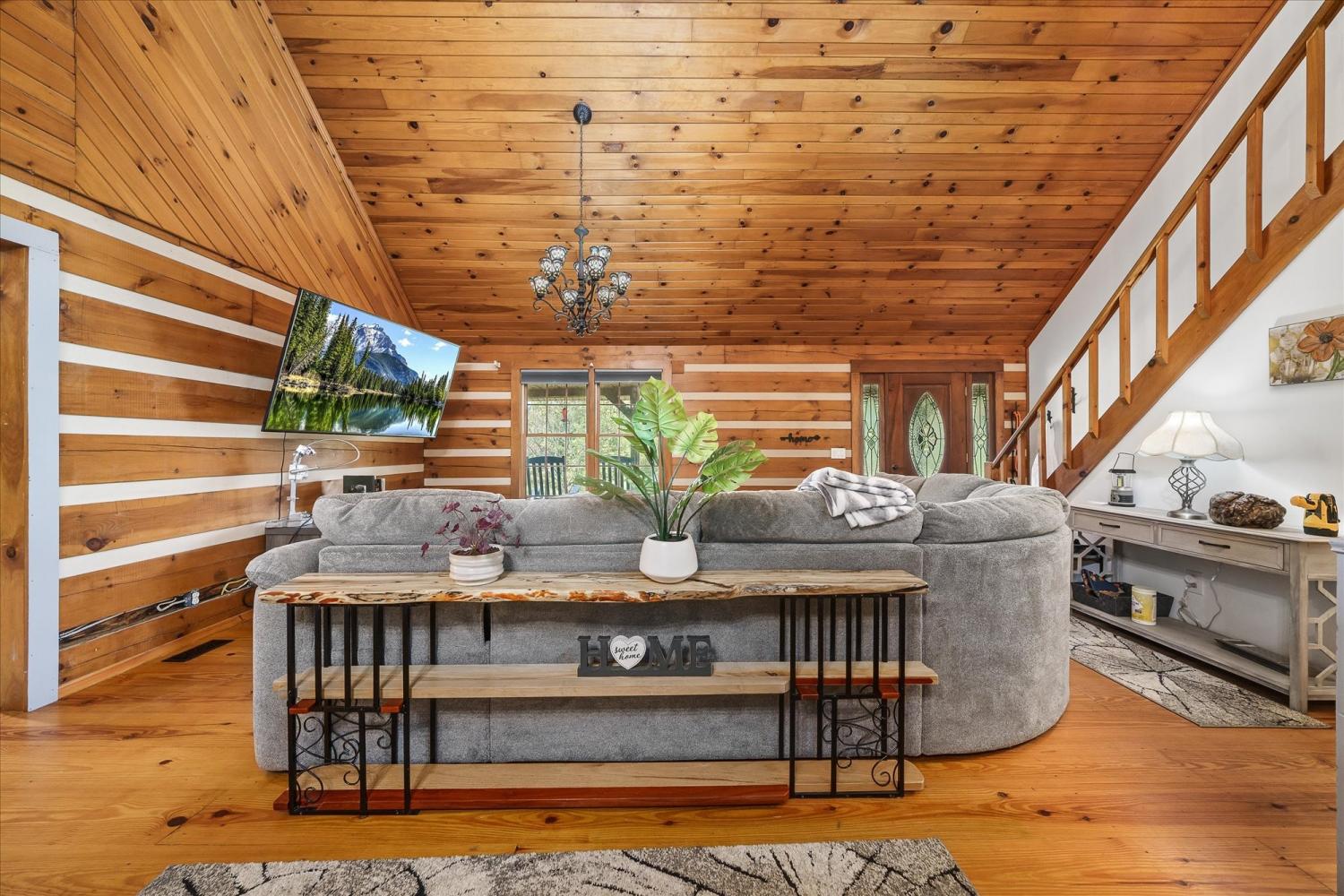 If you are looking for the most peaceful setting, this is it! The gorgeous Honest Abe log home sits on 10.4ac overlooking a huge stocked pond. The home features 3bd/3ba on two levels with a full basement. Hardwood flooring throughout, updated kitchen, vaulted ceilings in the dining and living room. The 10.4 ac is level and perfect for horses or livestock. The 1.5 ac pond is stocked and perfect for relaxing and fishing. The property also features a 30x24 detached garage with wood stove and a 24x27 pole barn. Located just 15 mi from Dale Hollow Lake, 11 miles from Celina, and 9 mi to Tompkinsville, KY