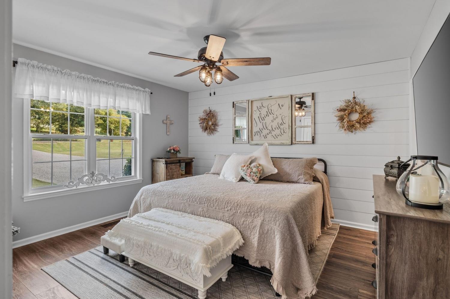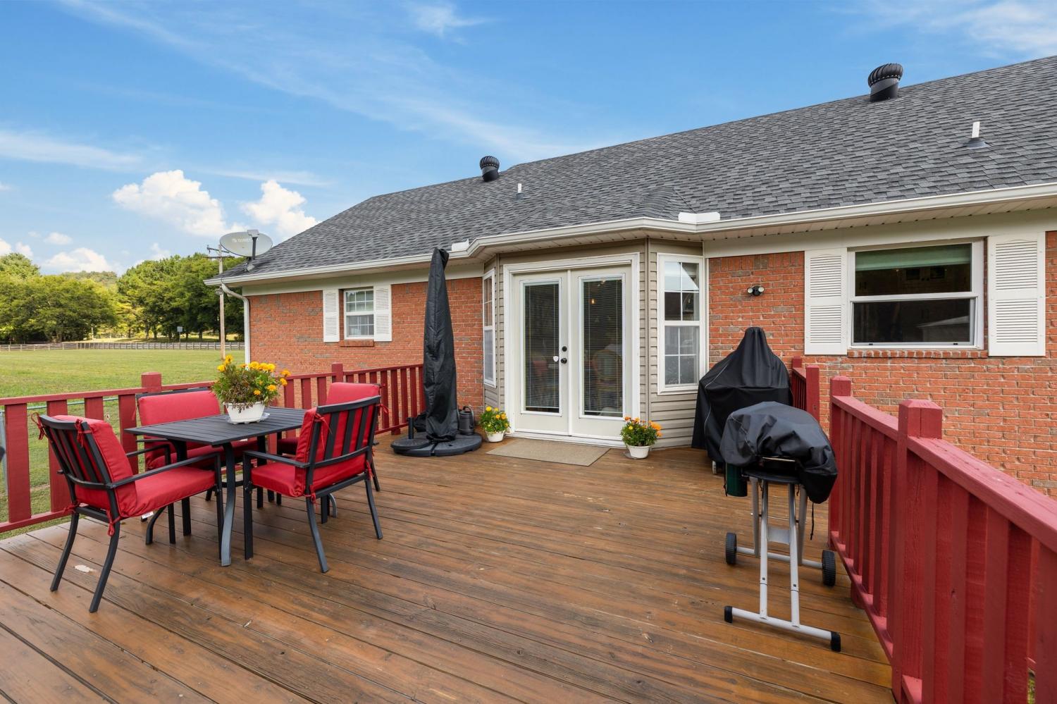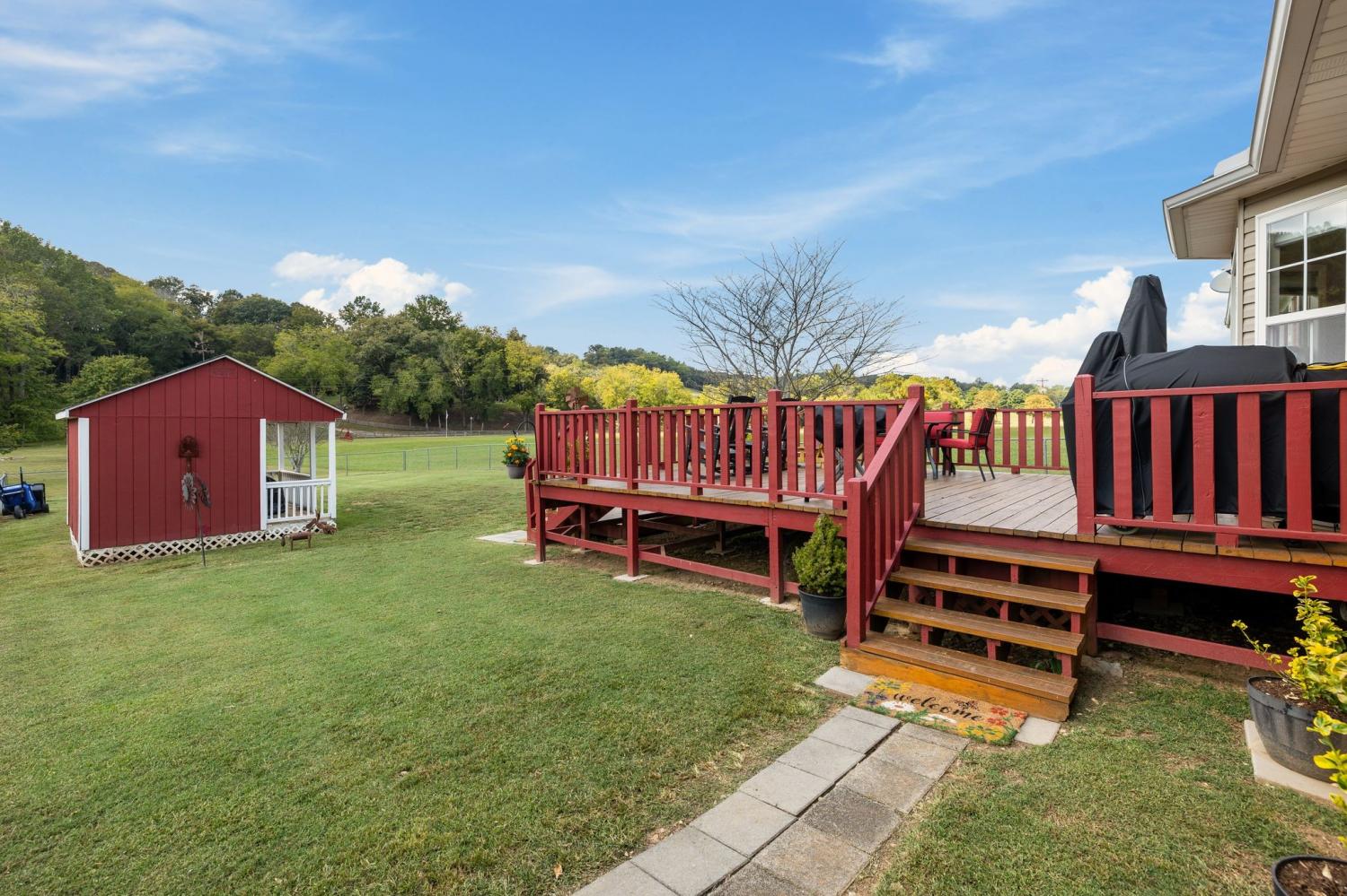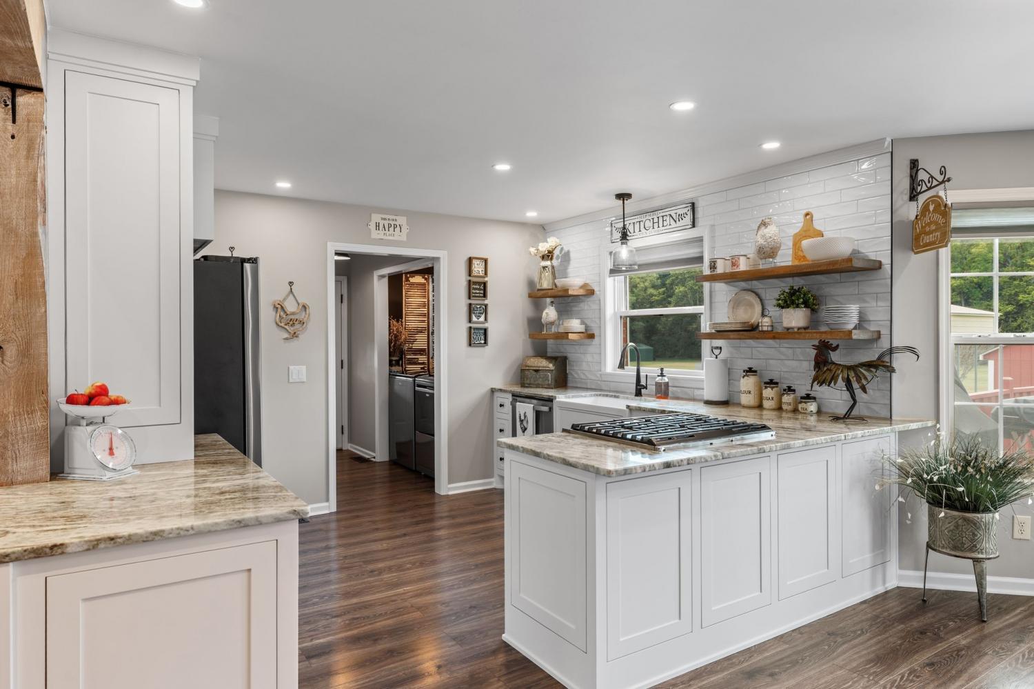 Welcome home to where modern comfort meets Tennessee charm. This beautifully renovated all-brick home feels like a fresh start, it's full of light, warmth, and thoughtful details at every turn. With 3 bedrooms and 2 bathrooms all on one level, it’s the kind of home that instantly feels easy to live in and love. Step inside and you’ll notice the open floor plan framed by handsome Cypress beams, a space made for everyday living and effortless entertaining. The electric fireplace adds a cozy glow, while the kitchen is a showstopper with its farmhouse sink, inset shaker cabinets, floating Cypress shelves, granite countertops, and stainless-steel appliances. Every inch has been updated with care, from the wood-look laminate floors throughout to the fresh, modern paint and encapsulated crawlspace with dehumidifier. Outside, you’ll love spending evenings on the tiered deck or around the rocked-in fire pit by the gentle creek and wooded backdrop. Need space for your hobbies or travel gear? There’s a covered RV pad with a 50-amp hookup, a fenced-in yard, and even a charming storage shed with its own little porch. This home blends timeless character with modern convenience. No HOA, no restrictions, just your own peaceful slice of Tennessee living. Roof (7 yrs), HVAC (10 yrs), and water heater (1.5 yrs) mean you can move right in and start making memories.