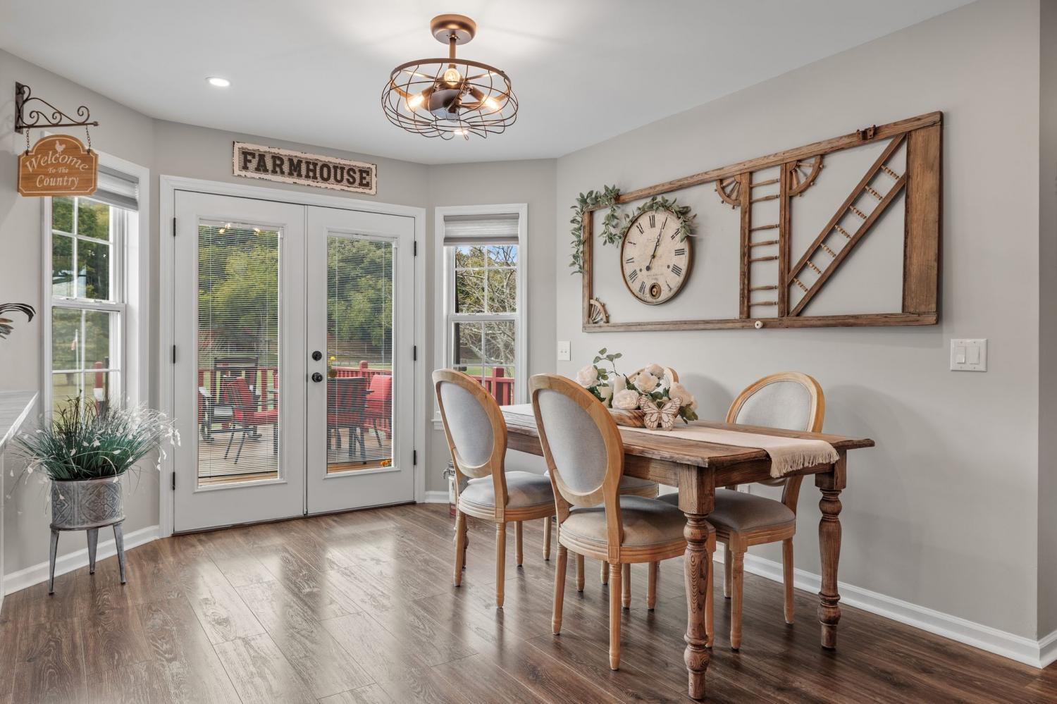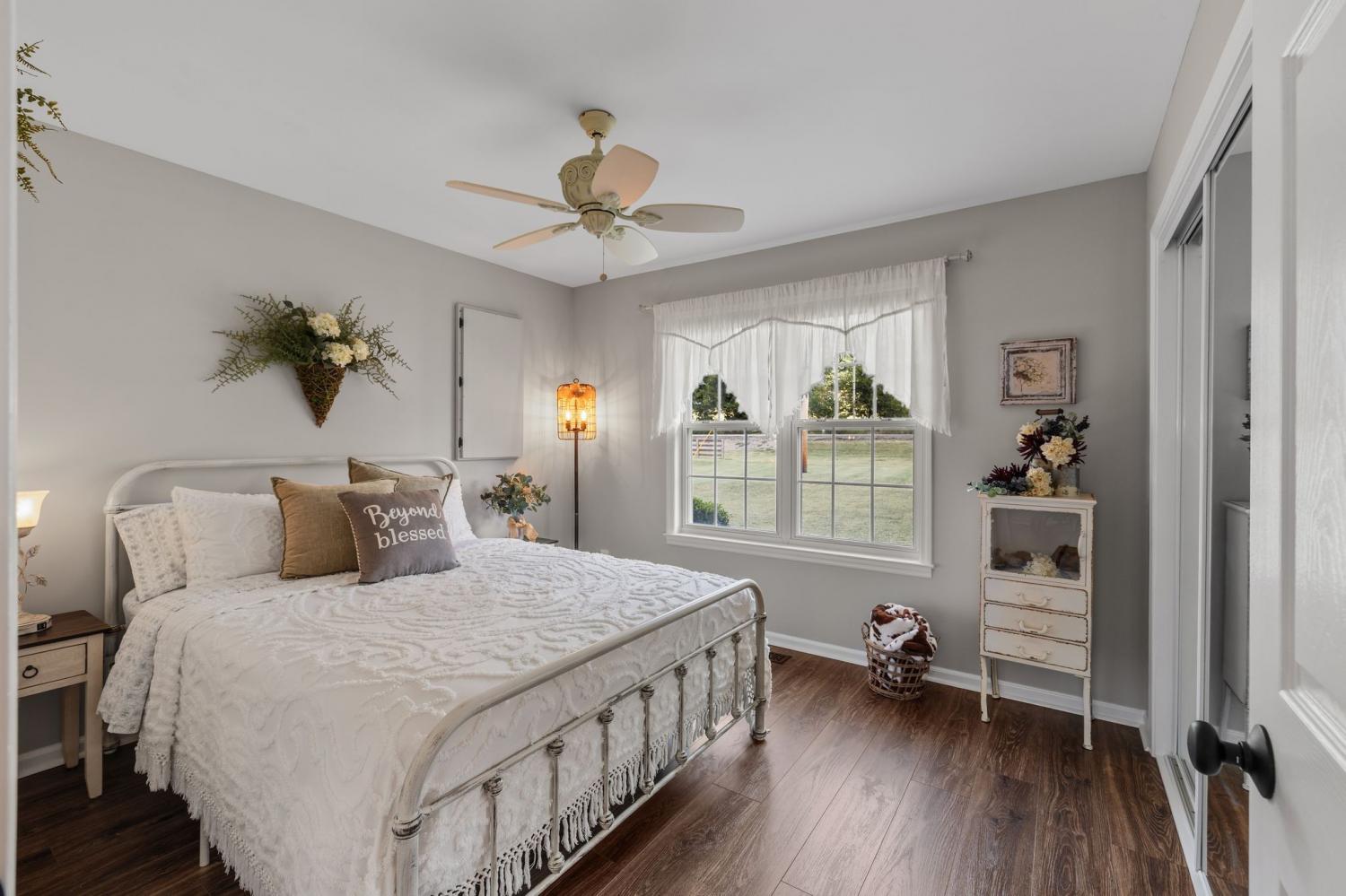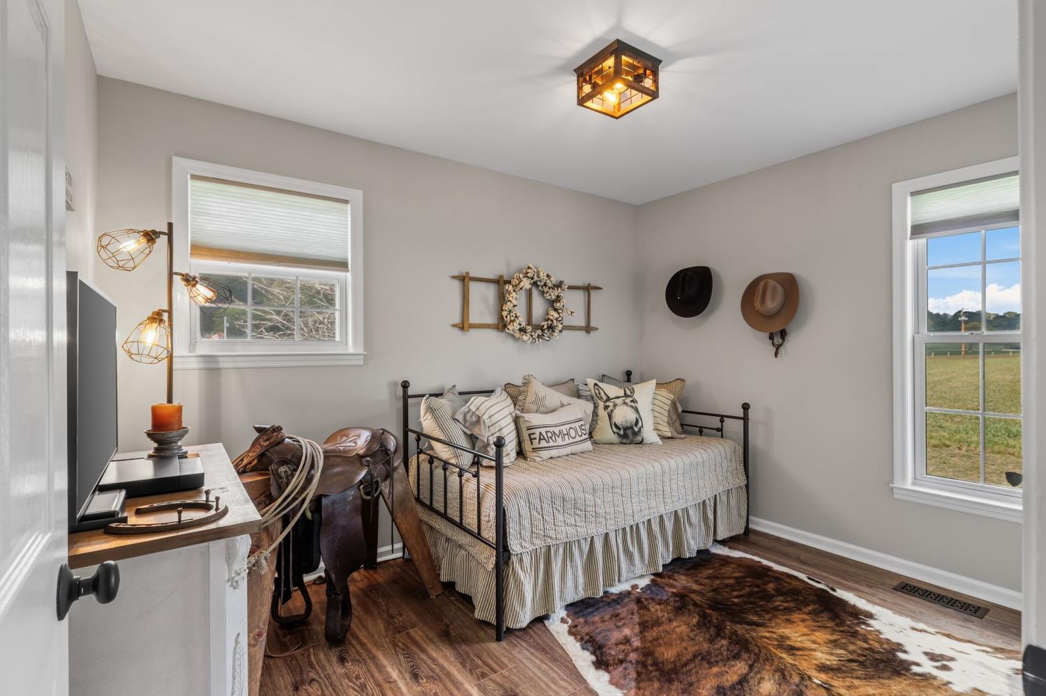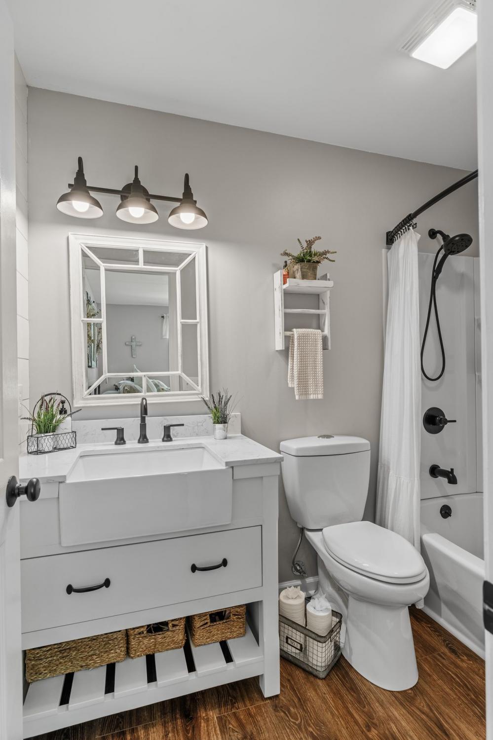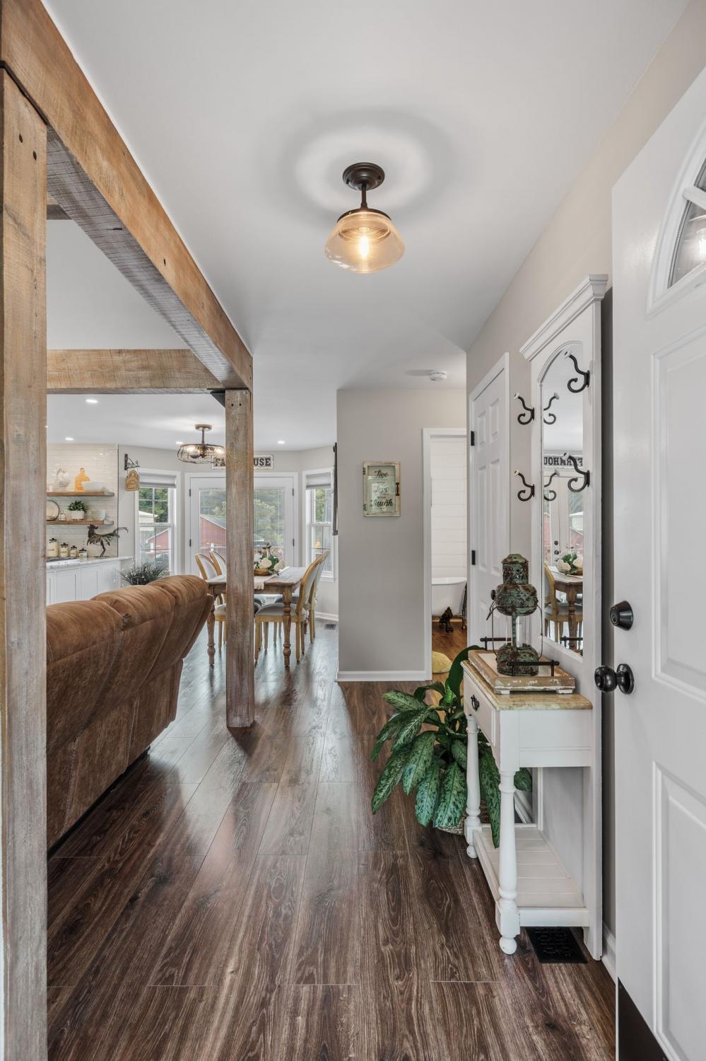 Welcome home to where modern comfort meets Tennessee charm. This beautifully renovated all-brick home feels like a fresh start, it's full of light, warmth, and thoughtful details at every turn. With 3 bedrooms and 2 bathrooms all on one level, it’s the kind of home that instantly feels easy to live in and love. Step inside and you’ll notice the open floor plan framed by handsome Cypress beams, a space made for everyday living and effortless entertaining. The electric fireplace adds a cozy glow, while the kitchen is a showstopper with its farmhouse sink, inset shaker cabinets, floating Cypress shelves, granite countertops, and stainless-steel appliances. Every inch has been updated with care, from the wood-look laminate floors throughout to the fresh, modern paint and encapsulated crawlspace with dehumidifier. Outside, you’ll love spending evenings on the tiered deck or around the rocked-in fire pit by the gentle creek and wooded backdrop. Need space for your hobbies or travel gear? There’s a covered RV pad with a 50-amp hookup, a fenced-in yard, and even a charming storage shed with its own little porch. This home blends timeless character with modern convenience. No HOA, no restrictions, just your own peaceful slice of Tennessee living. Roof (7 yrs), HVAC (10 yrs), and water heater (1.5 yrs) mean you can move right in and start making memories.