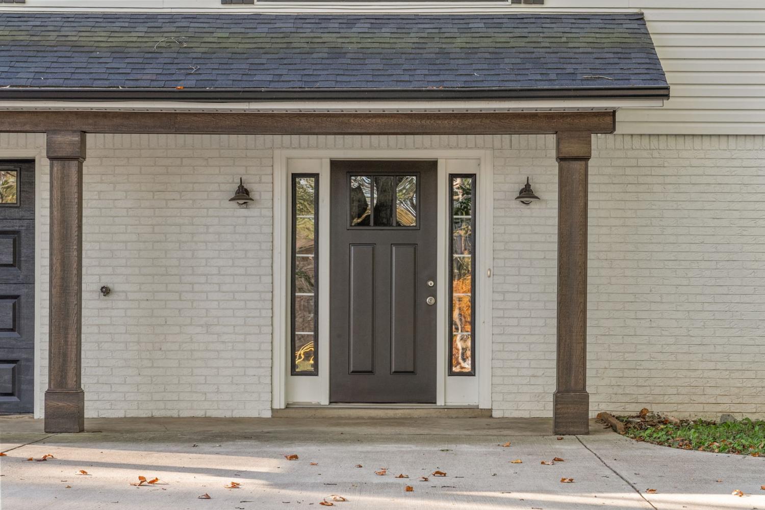 Beautifully updated ALL-brick home located in a mature neighborhood, resting on a spacious half-acre lot with circle driveway, right in the center of town. Freshly painted 3 bedroom, 3 bathroom (could be a 5 bedroom home!) open concept living and kitchen split level. Featuring entertaining custom eat-in island, granite tops, newer cabinetry, stainless steel appliances, NO CARPET (tile & laminate throughout), newer roof, radon mitigation system && so much more, this house is well stocked & well cared for. This a must see. Washer & dryer to convey.