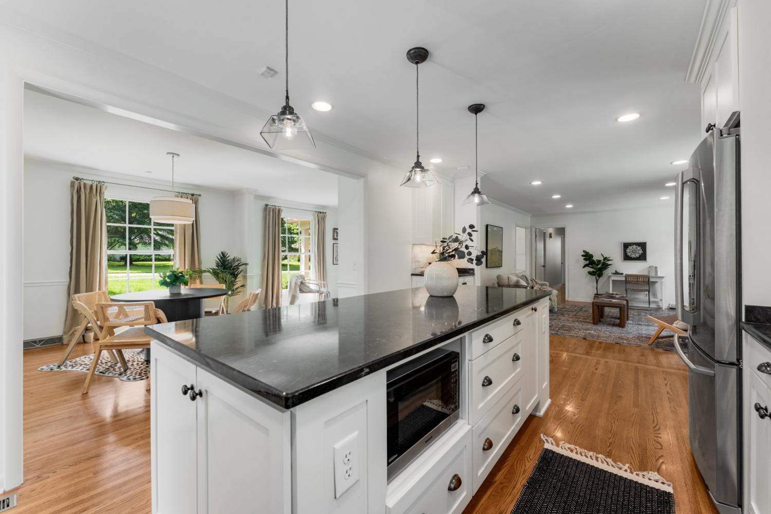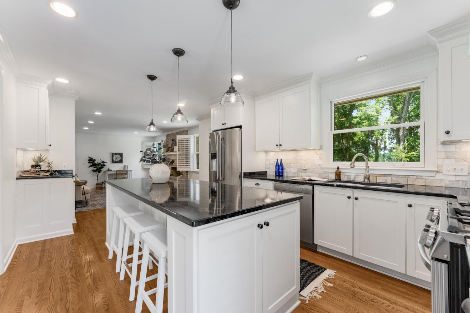 Southern sophistication, timeless charm, & tasteful updates converge in this impeccable rambling ranch on one of the most stunning, half-acre lots in Crieve Hall. Nestled into the rich landscaping & sprawling lawn of this private lot is the home you've been waiting for. You'll feel right at home from the moment you step onto the welcoming front porch w/ swing & enter the double, front doors into the flagstone entry hall. The property is meticulously maintained w/ an ideal balance between respect for the original home & renovations that elevate each space. The sprawling rooms seamlessly flow while still providing defined spaces for every need. Light pours through the large, Pella windows, & the floor plan & design marry modern living w/ nostalgic charm that can't be recreated. The main level features a sun-filled, formal living room, formal dining room, updated kitchen w/ granite counters, marble backsplash, & stainless steel appliances, a cozy den w/ fireplace, 3 spacious bedrooms & 2 beautifully remodeled, full baths w/ designer tile & quartz countertops. Head down to the walkout basement & find an incredibly versatile space w/ massive bonus room ready to accommodate any number of needs, an oversized laundry room w/ ample storage, multiple storage closets, a half bath, & an oversized, 2-car garage. Enjoy as is, or easily transform the basement into an in-law apartment or income/ AirBnB space. There's so much to love about this special home, & it's even better in person. Plan your visit today!