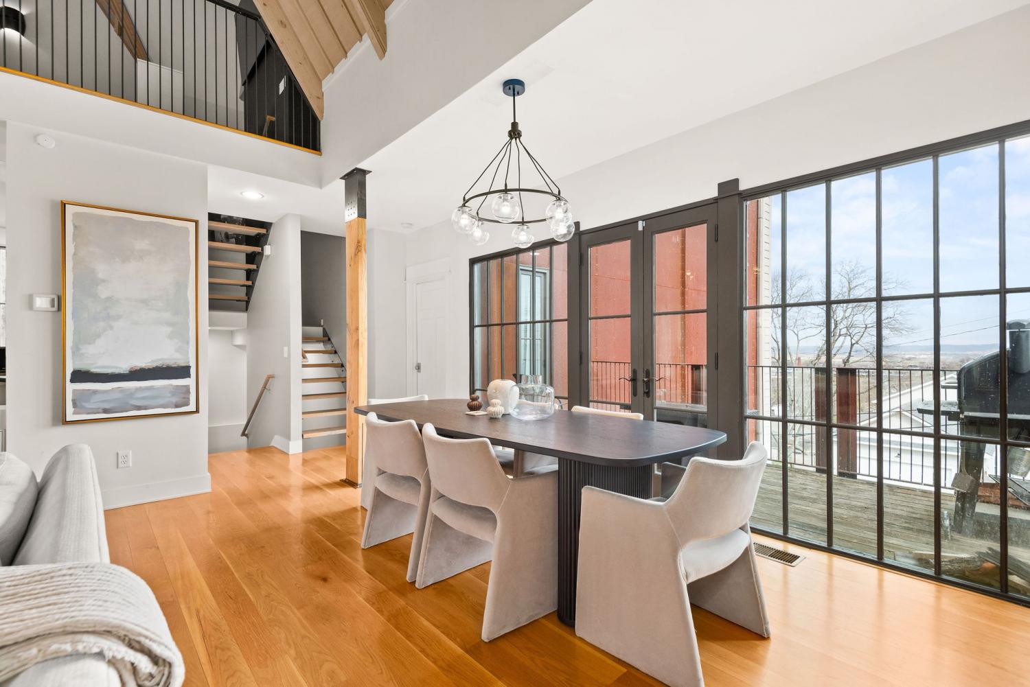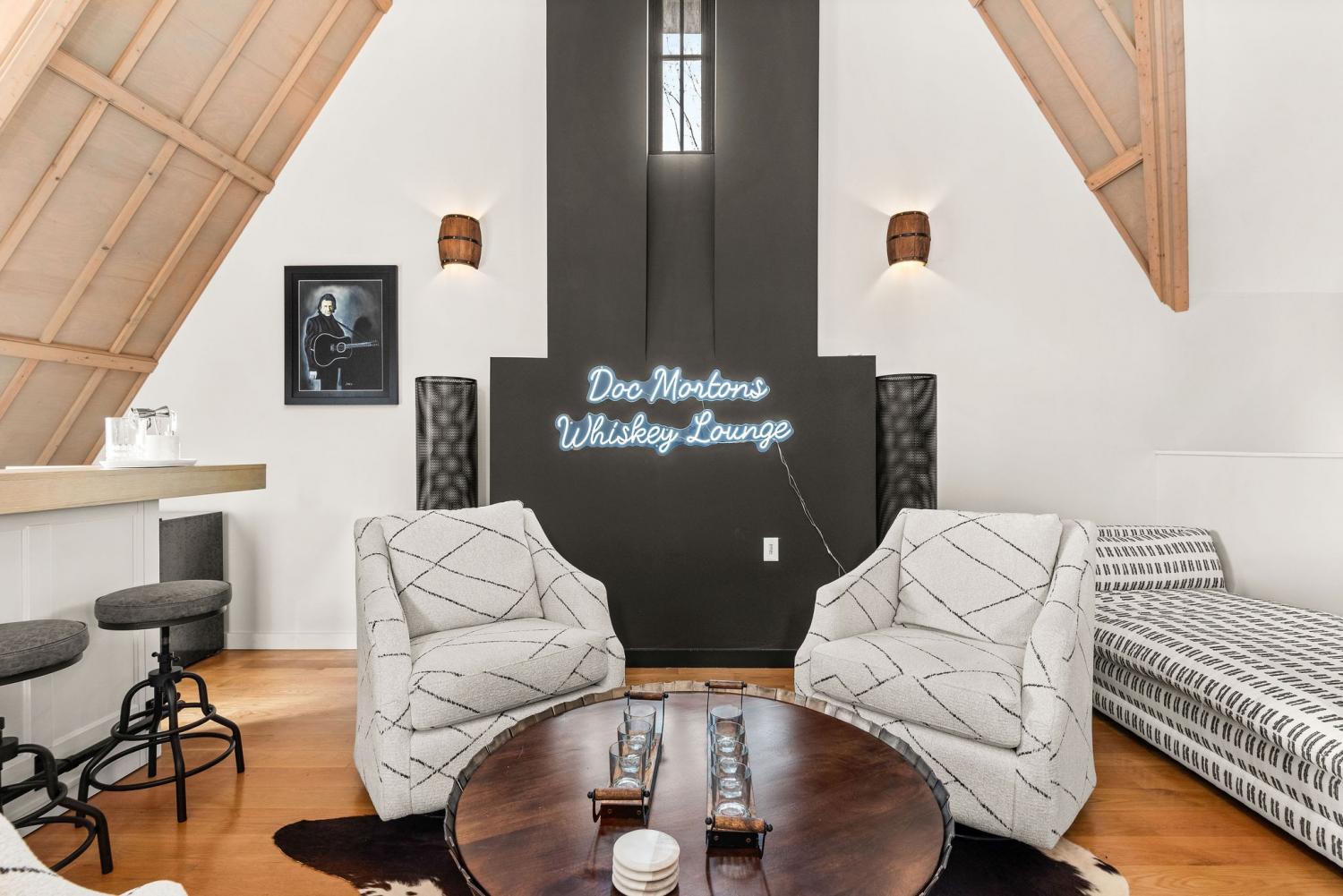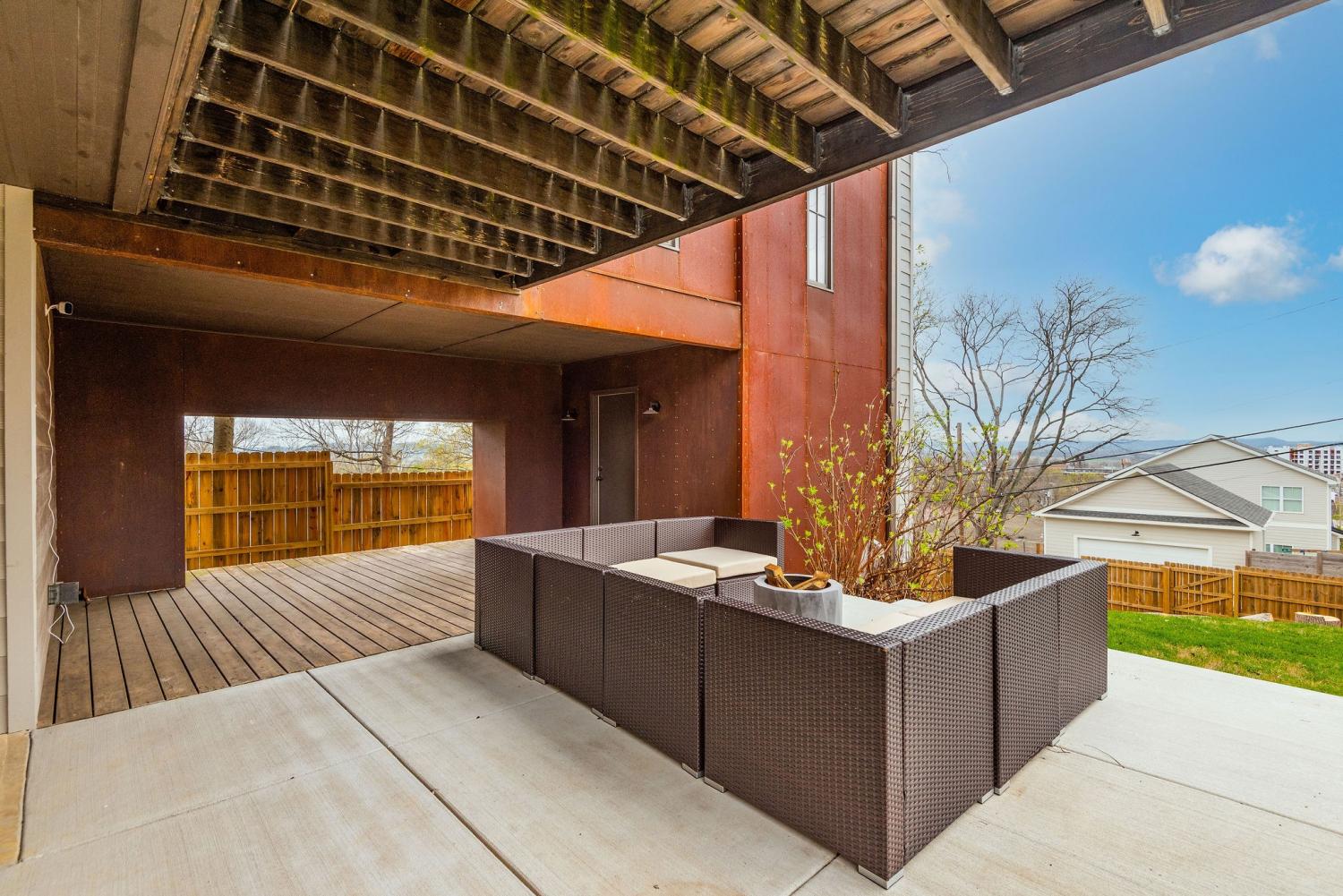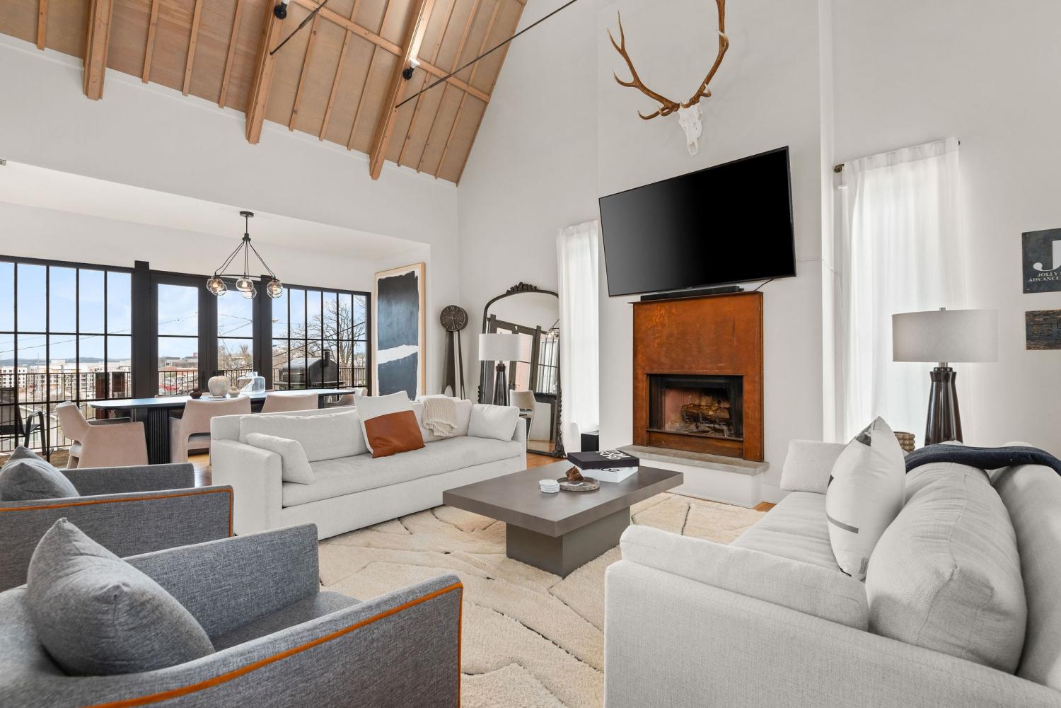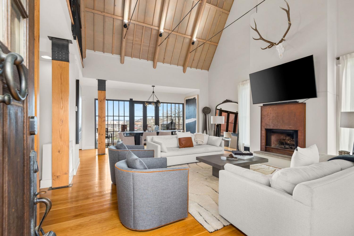 Perched on a corner lot and walkable to L&L Market and Sylvan Supply, this masterpiece features 32’ oak, cathedral ceilings w/ custom ambient lighting, a magnificent rusted steel fireplace, expansive windows and entertaining opportunities galore. The main floor offers dining and breakfast spaces as well as a large balcony. The kitchen features stylish concrete countertops and a custom pantry. Completing the main floor is the master suite, featuring a renovated bathroom and walk-in closet. Upstairs, a loft overlooks the living room and provides a secondary entertaining space w/ a built-in bar. Downstairs features 533 unfinished sq ft that make for incredible storage. A new 8’ privacy fence and patio were added to the yard, elevating privacy and hosting potential. The yard also features a 275 sq ft attached storage space w/ electricity. Not just a home, but truly art. Pets accepted on case by case basis.