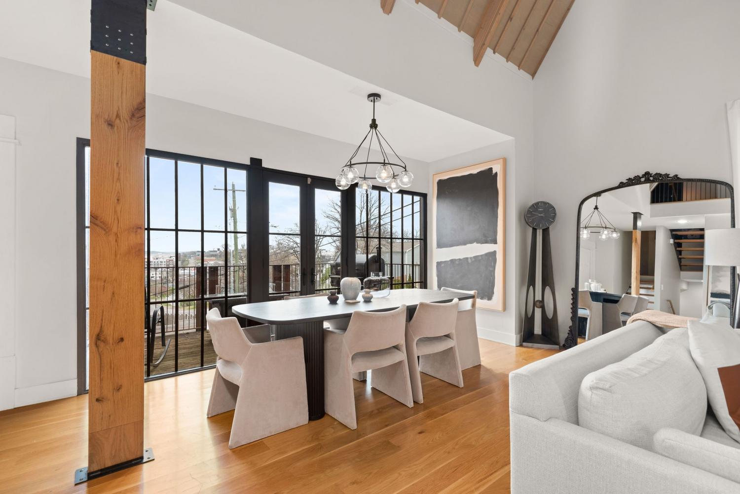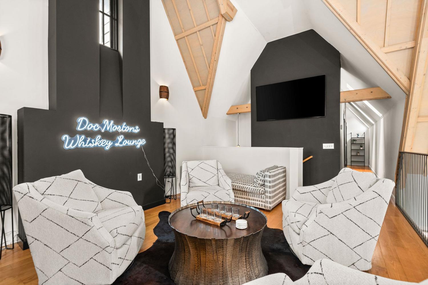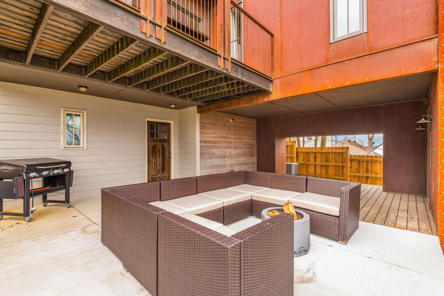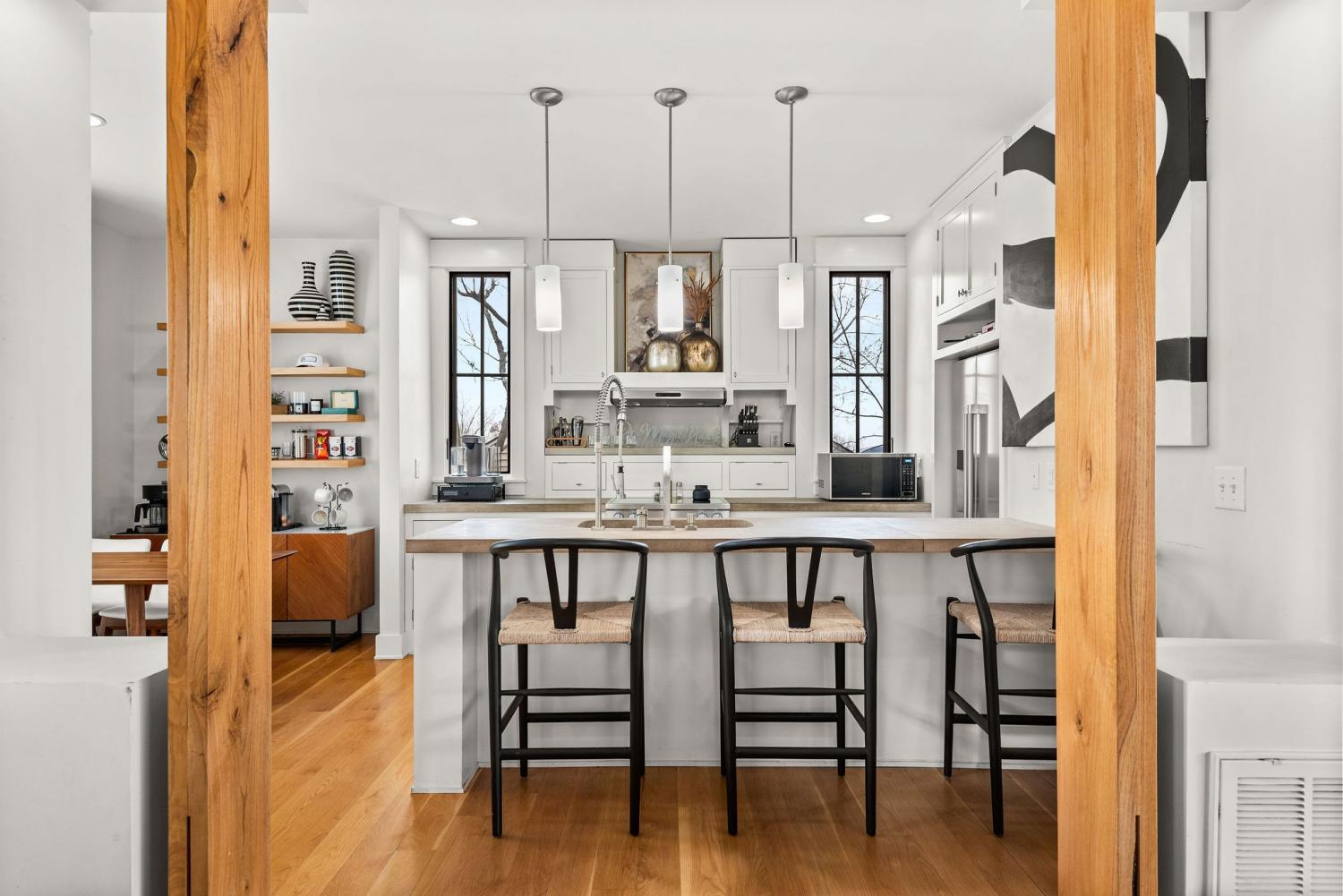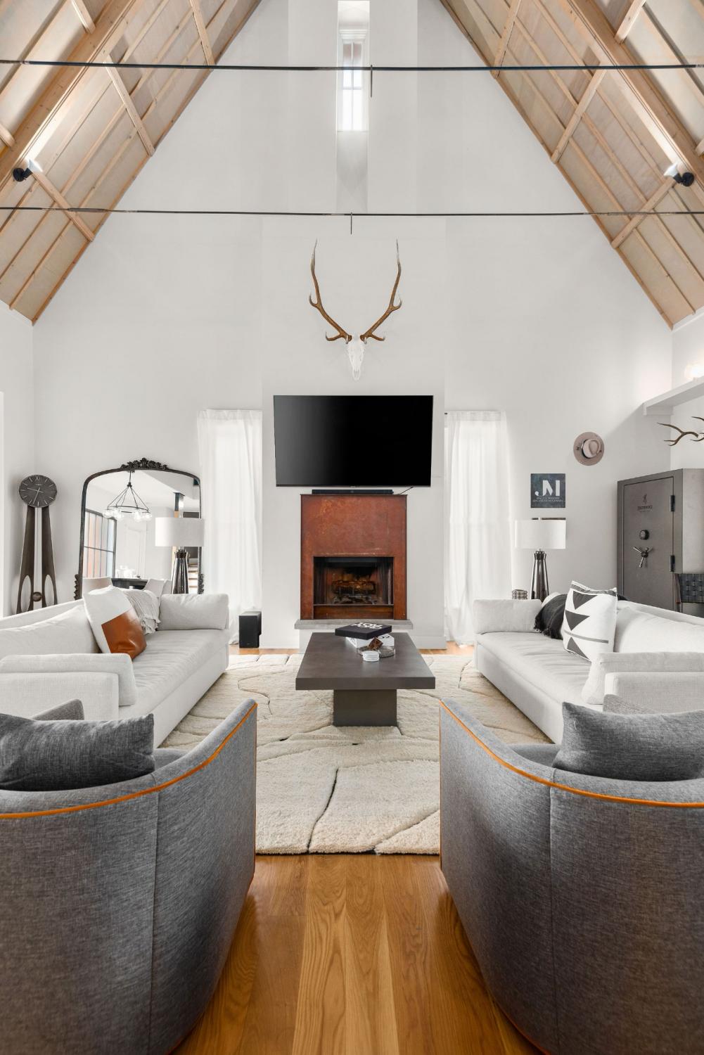 Perched on a corner lot and walkable to L&L Market and Sylvan Supply, this masterpiece features 32’ oak, cathedral ceilings w/ custom ambient lighting, a magnificent rusted steel fireplace, expansive windows and entertaining opportunities galore. The main floor offers dining and breakfast spaces as well as a large balcony. The kitchen features stylish concrete countertops and a custom pantry. Completing the main floor is the master suite, featuring a renovated bathroom and walk-in closet. Upstairs, a loft overlooks the living room and provides a secondary entertaining space w/ a built-in bar. Downstairs features 533 unfinished sq ft that make for incredible storage. A new 8’ privacy fence and patio were added to the yard, elevating privacy and hosting potential. The yard also features a 275 sq ft attached storage space w/ electricity. Not just a home, but truly art. Pets accepted on case by case basis.