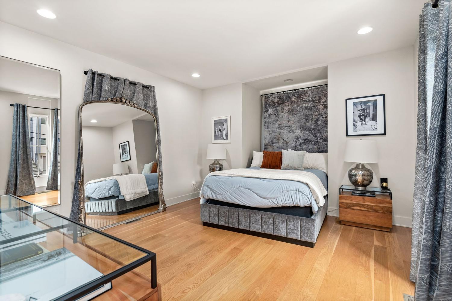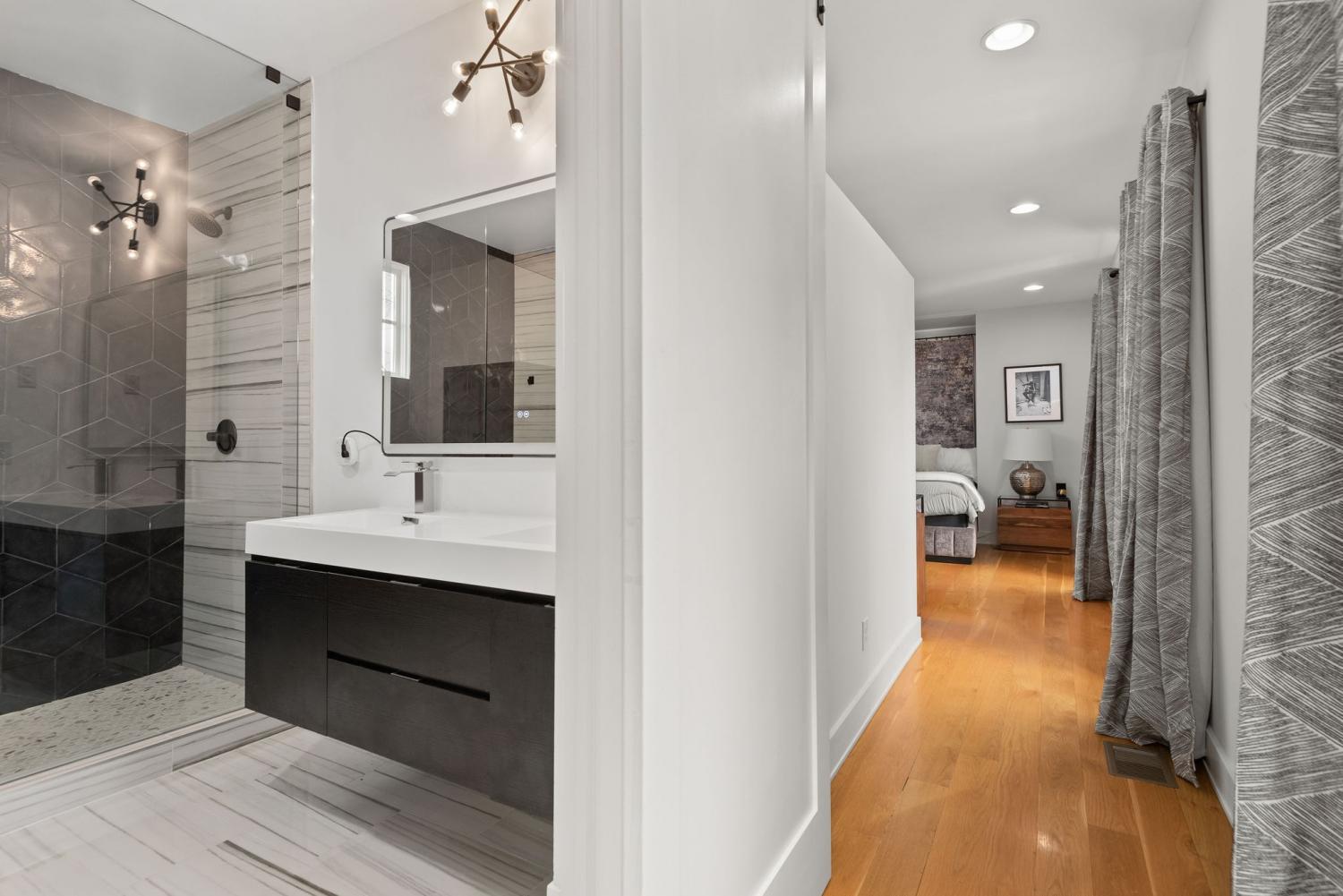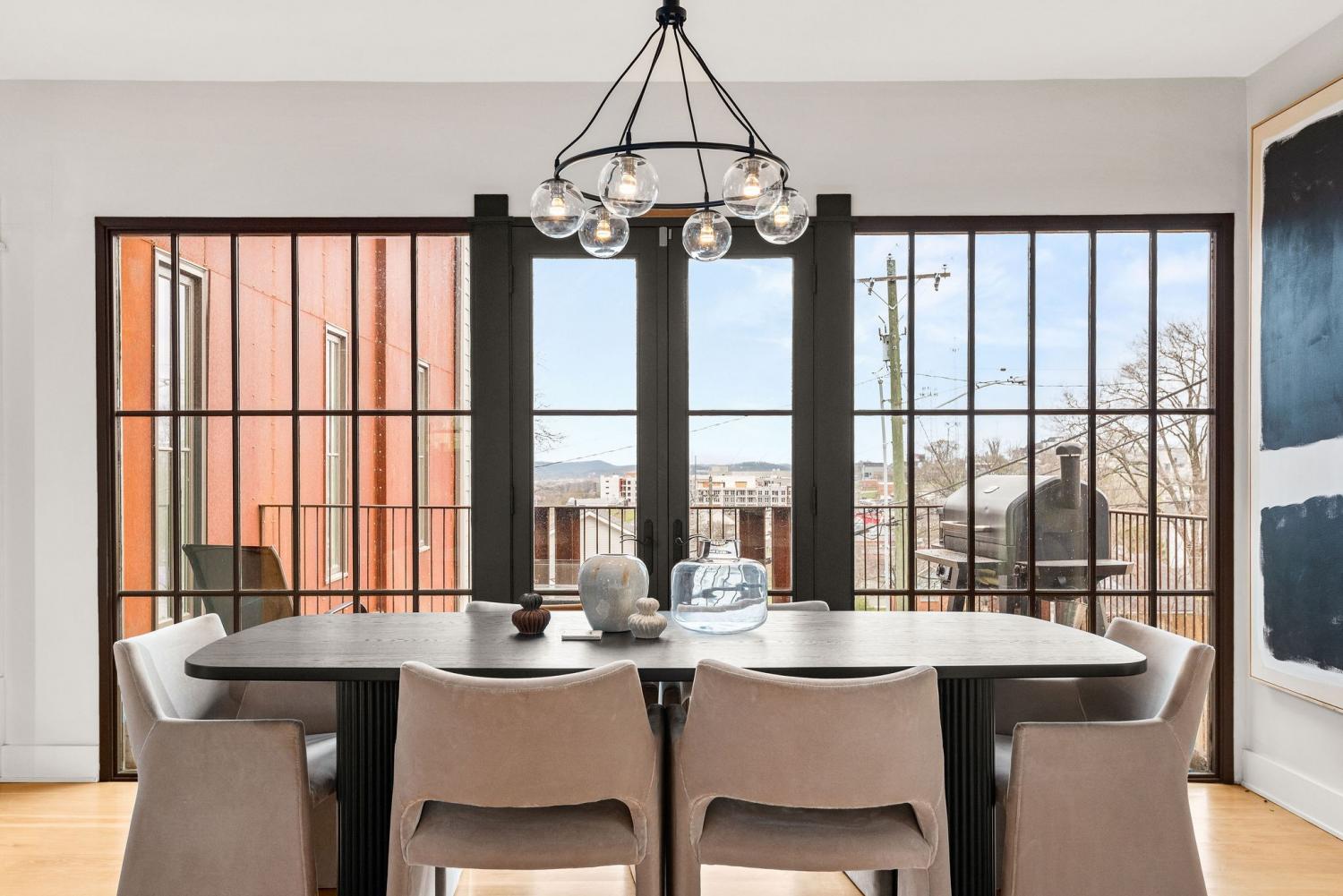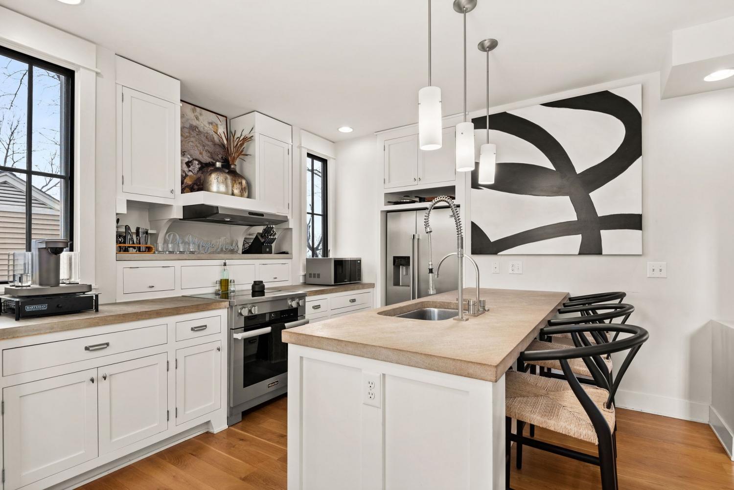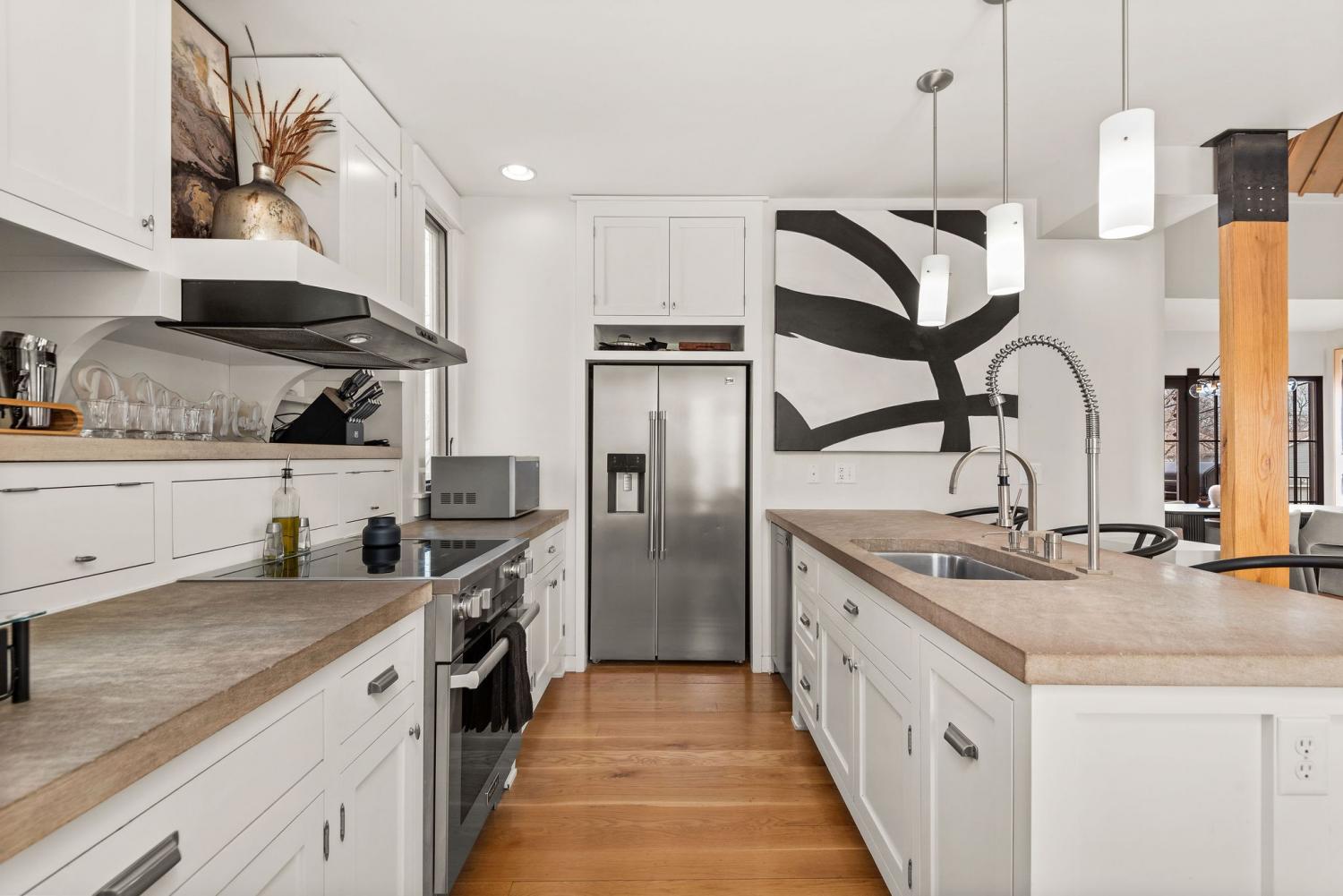 Perched on a corner lot and walkable to L&L Market and Sylvan Supply, this masterpiece features 32’ oak, cathedral ceilings w/ custom ambient lighting, a magnificent rusted steel fireplace, expansive windows and entertaining opportunities galore. The main floor offers dining and breakfast spaces as well as a large balcony. The kitchen features stylish concrete countertops and a custom pantry. Completing the main floor is the master suite, featuring a renovated bathroom and walk-in closet. Upstairs, a loft overlooks the living room and provides a secondary entertaining space w/ a built-in bar. Downstairs features 533 unfinished sq ft that make for incredible storage. A new 8’ privacy fence and patio were added to the yard, elevating privacy and hosting potential. The yard also features a 275 sq ft attached storage space w/ electricity. Not just a home, but truly art. Pets accepted on case by case basis.
