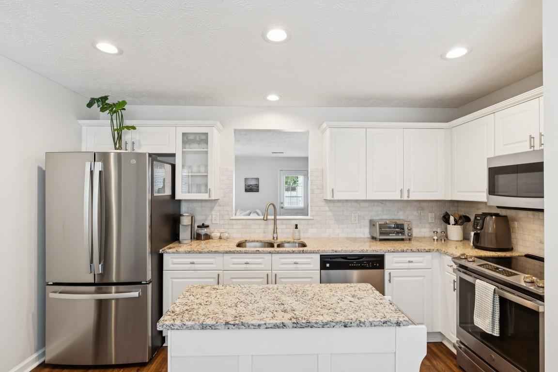 A beautifully renovated townhome, located in the vibrant Nashville scene; perfect for modern living! This home features a fresh, updated, kitchen w/ a NEW stainless french door refrigerator w/ water & bottom freezer, state of the art glass top range w/ air fryer, garbage disposal, ceiling can lights, granite countertops, island w/ storage & marble backsplash! Relax & unwind in the spacious but cozy living room w/ an electric fireplace for heat or just for ambiance. Cabinet doors added to built-in bookcases create additional storage & character to the room! Generous sized Primary Suite w/ vaulted ceiling & large walk-in closet. Walk-out Patio w/ privacy fence that is bordered by green space. No unit behind this one! Entire home has been painted in a modern white color that only enhances the open & airy vibe! Newer LVP flooring downstairs & upper hallway. NEW AC unit summer 2019 (5/10) year warranty! All NEW bath vanities, faucets & mirrors. Additionally, all NEW door hardware & hinges have been added. Beautiful NEW wood stair treads! NEW laundry cabinetry & rod. All appliances remain, including the washer & dryer. Just 5-10 minutes to downtown Nashville, Hip Donelson, BNA Airport, Restaurants & Shopping. This one is truly a GEM!