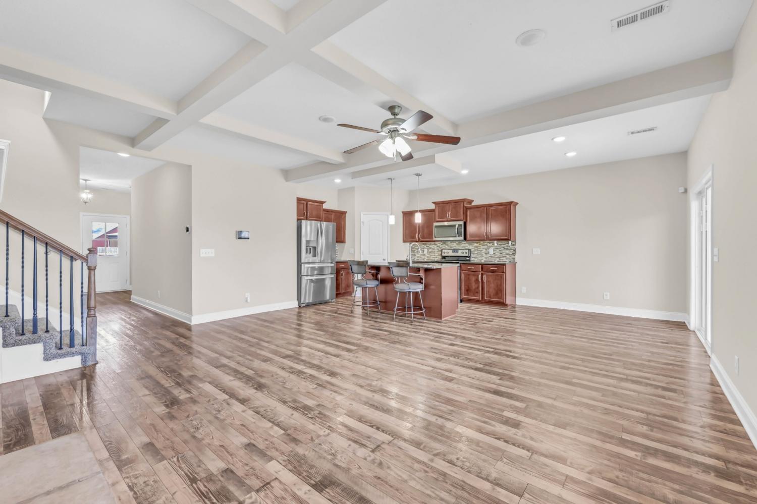 Envision yourself in this charming open-concept ranch, where comfort meets convenience. With 9 ft. ceilings, the space feels airy and welcoming. The heart of the home is the kitchen, featuring a spacious island and a walk-in pantry perfect for all your culinary needs. Imagine cozy evenings in the family room, nestled by the warm glow of the fireplace. The thoughtful design includes split bedrooms for added privacy, with the master suite boasting a walk-in closet and a luxurious tile shower complete with a seat. The bonus room is a versatile space, ideal for guests with its full bathroom. To top it all off, there's a delightful neighborhood park right behind your home, offering a perfect spot for relaxation and recreation. This home is conveniently located near I-24, shopping centers, and restaurants, with close proximity to Ft. Campbell and Nashville. NEW CARPET DOWNSTAIRS AND NEW PAINT THROUGHOUT!