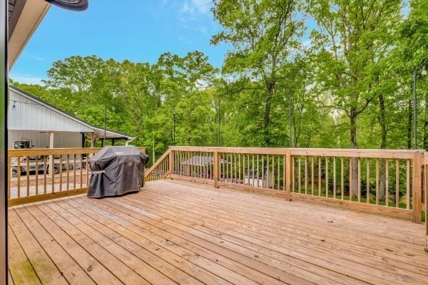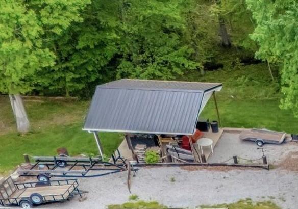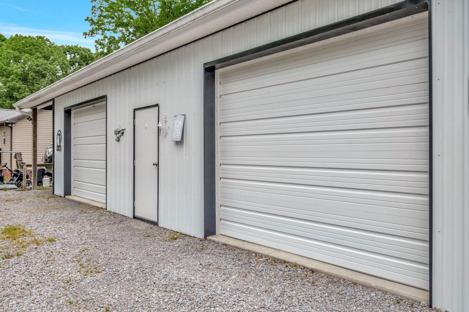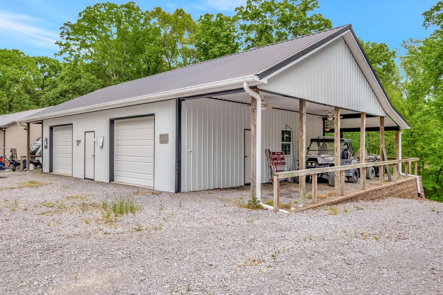 Real Gem less than 800ft. from KENTUCKY LAKE less than a mile to Piriate's Cove Marina, approx. 10 minutes to Fat Daddy's and 15 minutes to Paris Landing State Park & Golf resort. The house sits on 2 lots with 2 septic tanks with a huge 40x60 HEATED detached 2 car garage that has a kitchen and bath that could easily make a nice Barndominium. The house has been totally remodeled sitting on a beautiful PRIVATE lot that has HIGH SPEED INTERNET thru CEMC. New roof in 2017, New HVAC 2018, New Windows & Doors, Gutter Guards, all new Lighting, Cabinets, Beautiful light Oak LVP thru-out ( No carpet ), Tile floors in both baths. Vaulted ceilings with WOOD BEAMS in living room, kitchen & dining room. Gorgeous kitchen with Calcutta Quartz counters, TILE backsplash, UNDER cabinet and in-cabinet lighting, SS appliances, FARM SINK, and a Custom Vented Hood over the stove. Walk-in closets in all bedrooms. The primary suite is spacious with a Spa-like bath offering TILE floors, a huge TILED shower with Bench seating and backlighting, custom cabinets with a FARM SINK, QUARTZ counters, BLUETOOTH lighting and a linen closet. Relax in a beautiful CLAW FOOT CAST IRON tub with a custom designed TILE wall surround and Tile floors in the hall bath. Great outdoor living space on both of the 12x 30 front and back decks plus a 20x20 concrete Pavilion. The Garage has an 8" & 10" overhang on 3 sides for additional parking, store your boat, Jet Ski's, ATV"S, Mower, Etc. The Sellers have a boat lift and boat at Pirates Cove that they willing to negotiate with property. Additional adjoining lot available with Septic Tank listed separately MLS # 3001031