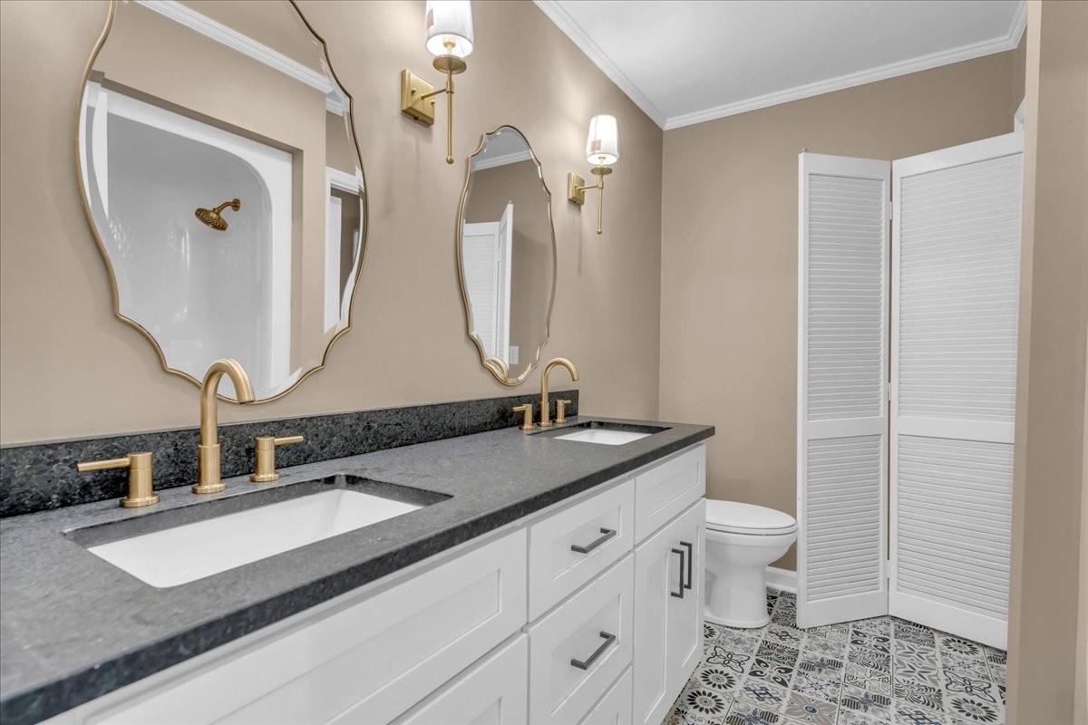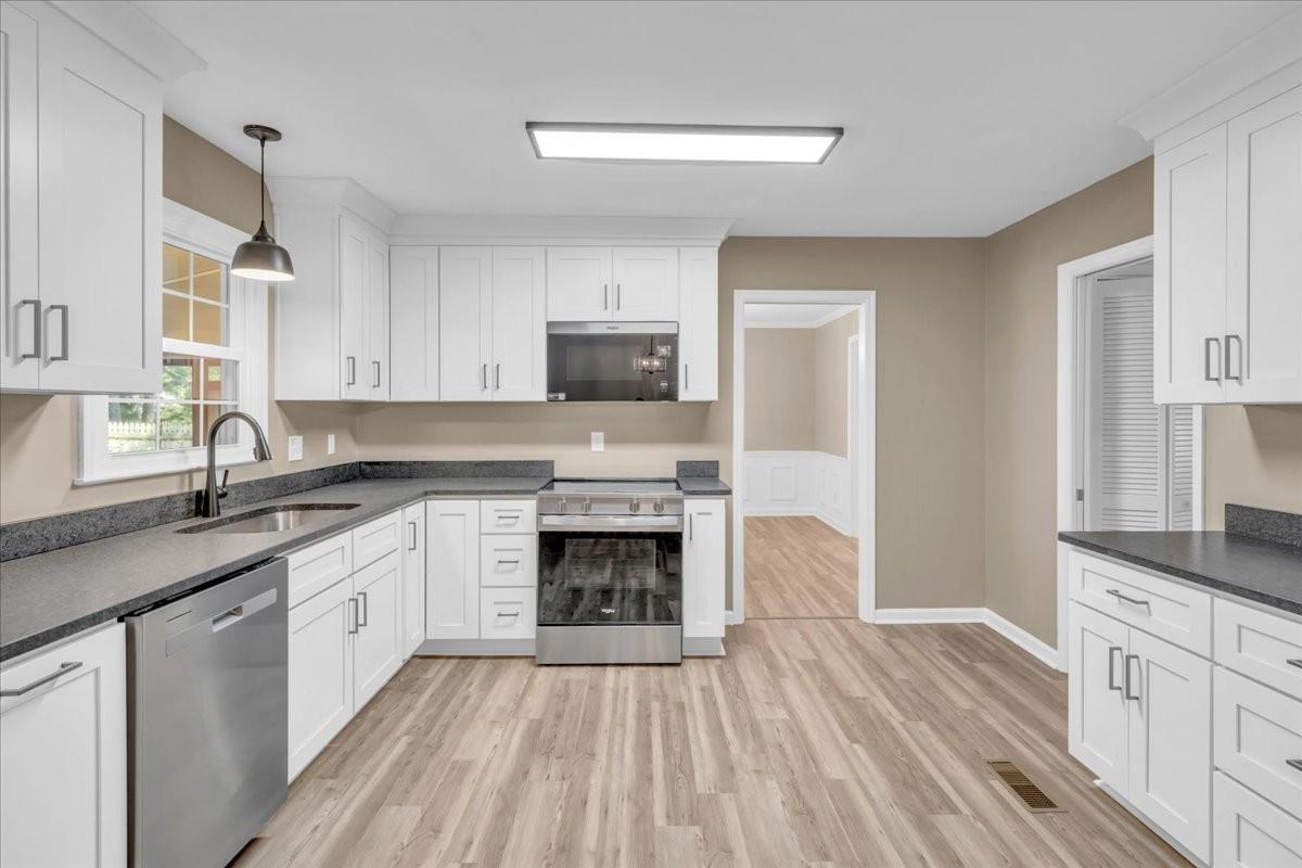 The owners spared no expense to totally renovate this incredible family home! This amazing home has new windows, all new flooring, lighting, paint, cabinets throughout with black leather-finished granite, new hardware, upscale stainless steel appliances and so much more! The family room has built-in bookcases and a fireplace. The bonus room is large enough for several game tables. It includes a Buck stove and lots of built-in bookcases. The eat-in kitchen has room for a breakfast table and opens to the screened -in porch. The dining room has a great view of the patio and large backyard and includes two built-in cabinets. The back yard has a large brick patio with a firepit included. This space is surrounded by fencing and landscaping for privacy. The detached garage is over-sized with a workbench and new garage door. There is a fenced-in dog run in the back yard and plenty of storage throughout the home. All of this on a large wooded lot in an established neighborhood.