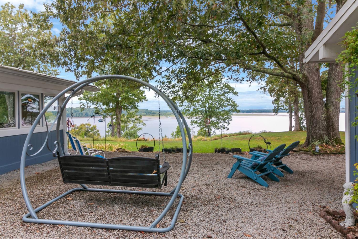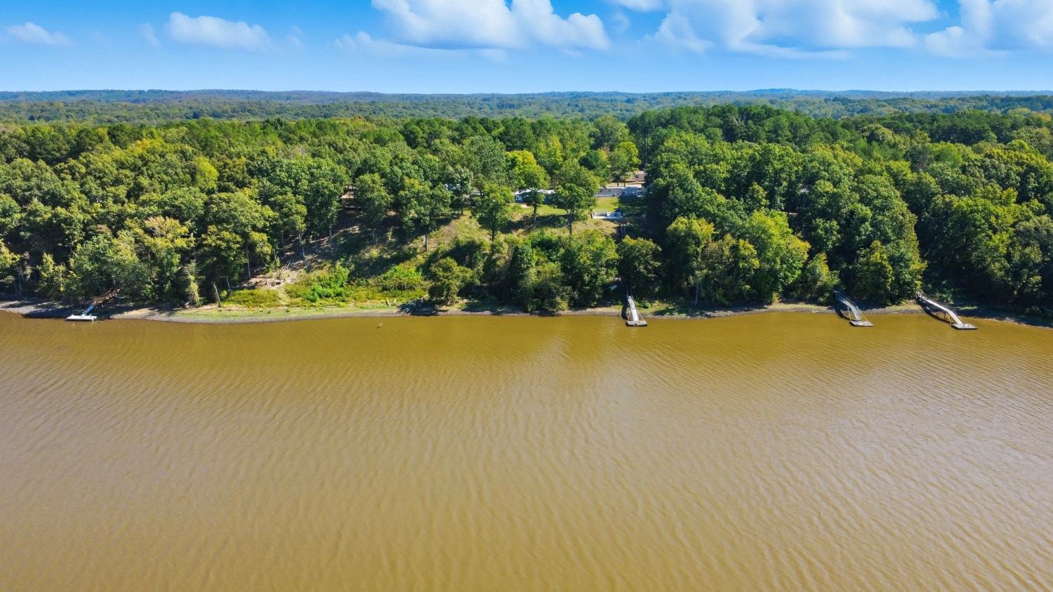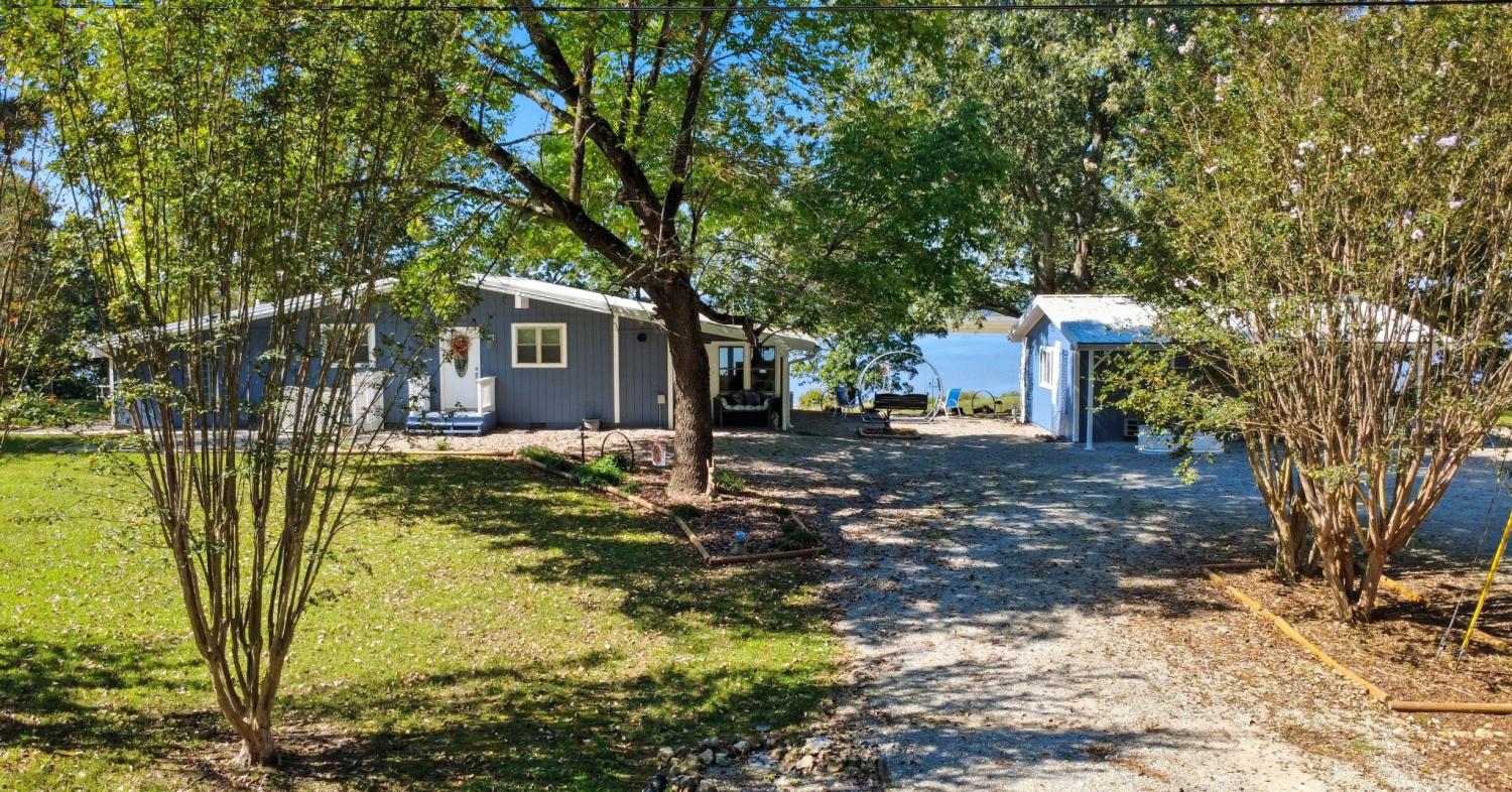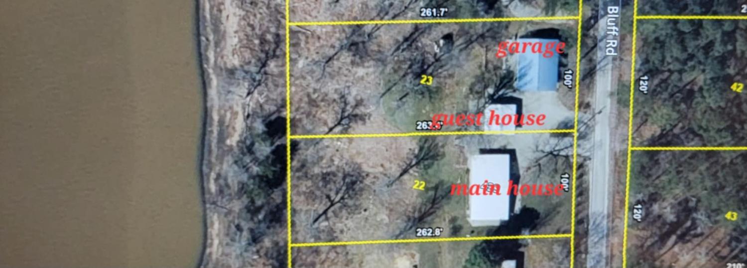 Water Views! Water Access! Kentucky Lake!! Two houses! Two lots! One price! The million-dollar water vistas from this home on the bluff are spectacular. The main house 1532 sq ft boasts scenery of the water from every room, including the owner’s retreat with tongue & groove cathedral ceilings, the living room with gas fireplace, cathedral ceilings, built-in book cases and high niche shelves, the open dining room with cathedral ceilings, the gourmet kitchen has custom cabinets in maple finish, and the private 23x13 Florida room with windows galore and white tongue & groove cathedral ceilings. The Florida room which can be used as sleeping quarters has black-out blinds on each window & a black-out curtain on the doors. The Florida room easily accommodates two twin or one double bed, a living area with TV and a secondary dining area for friendly gather. The owner's retreat has two walk-in closets, two vanities, and an elegant tile shower for two to enjoy. The half bathroom is conveniently located and houses the laundry closet. For easy cleaning, luxury vinyl floors are throughout the home and the owner’s retreat has plush carpet and beautiful tile bathroom floors. In addition, there is a private detached 437 sq ft guest house with a comfortable living room, a quiet bedroom, and a full bathroom. The separate detached oversized 40x36 three car tandem garage fits cars, boats, campers, toys & tools and has an enclosed 21x10 heated & cooled office with storage. The 2 lots total 1.20 acres. This bird lover's paradise has White Pelicans, Eagles & Egrets living in the backyard foliage and soothing waters. The views include miles of TWRA land and nearby land of the National Wildlife Refuge overseen by the U.S. Fish and Wildlife Services. Lot #22 septic system is approved for 1 bedroom, and lot #23 is approved for 3 bedrooms. For a dock permit, the new owner may apply to the TVA for a section 26a permit. Most furnishings convey making this turn key home ready for your pleasure.