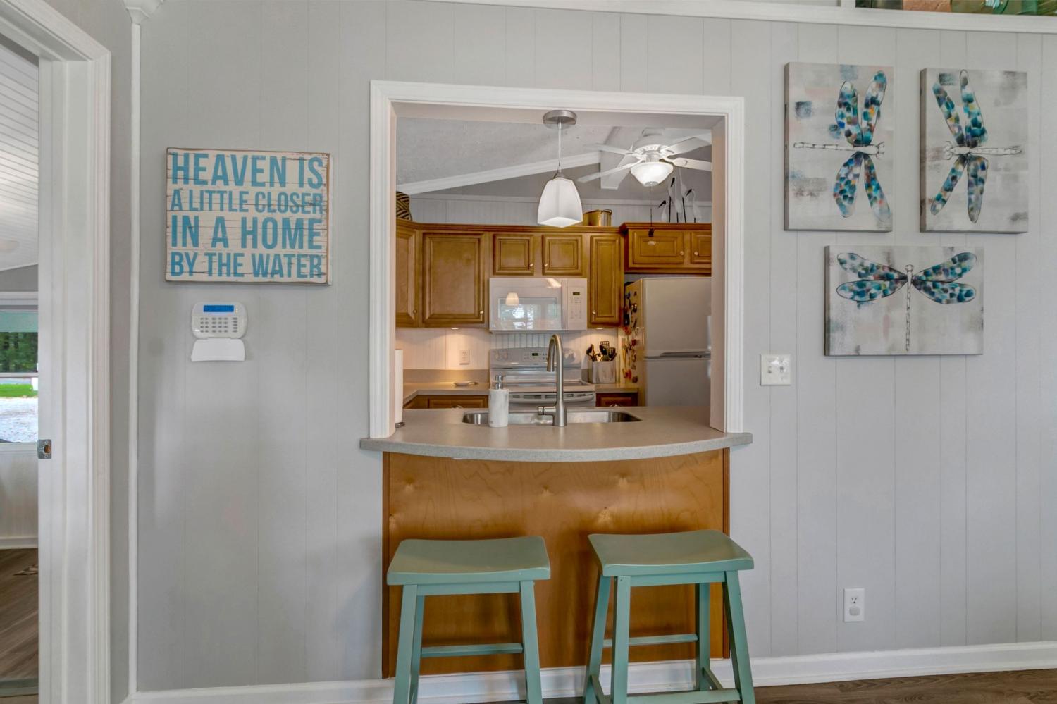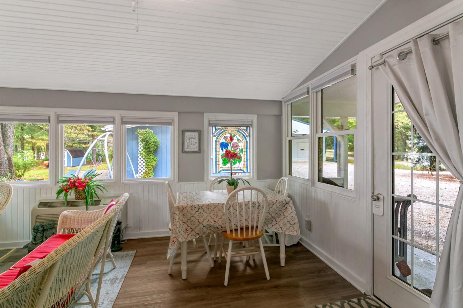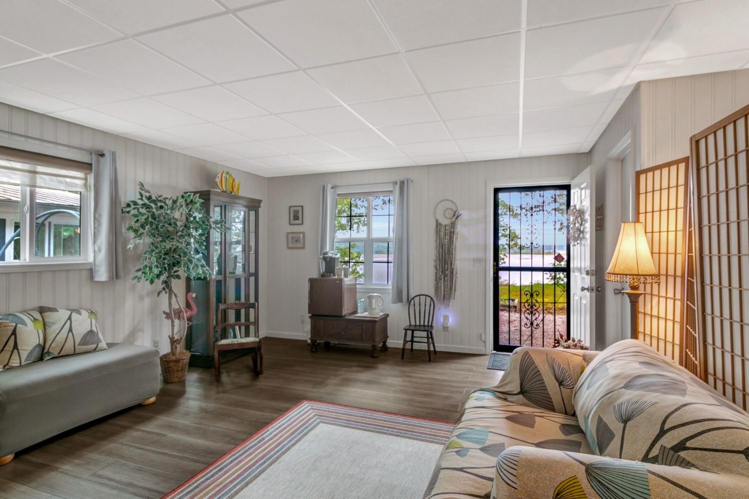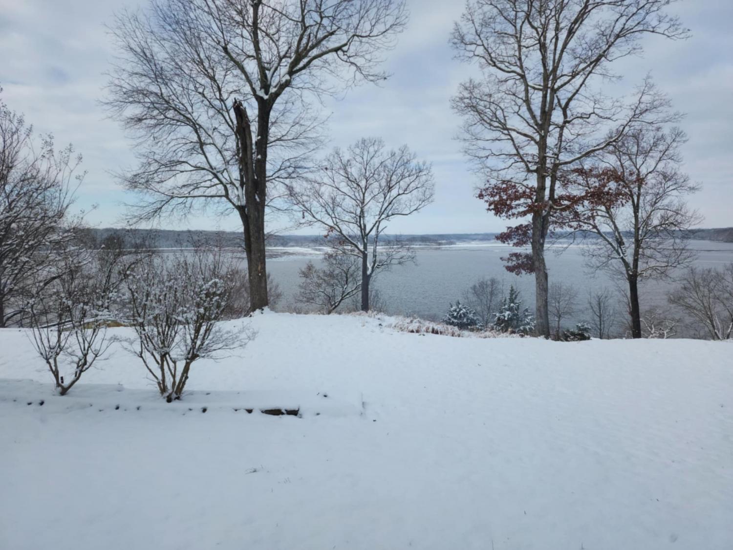 Water Views! Water Access! Kentucky Lake!! Two houses! Two lots! One price! The million-dollar water vistas from this home on the bluff are spectacular. The main house 1532 sq ft boasts scenery of the water from every room, including the owner’s retreat with tongue & groove cathedral ceilings, the living room with gas fireplace, cathedral ceilings, built-in book cases and high niche shelves, the open dining room with cathedral ceilings, the gourmet kitchen has custom cabinets in maple finish, and the private 23x13 Florida room with windows galore and white tongue & groove cathedral ceilings. The Florida room which can be used as sleeping quarters has black-out blinds on each window & a black-out curtain on the doors. The Florida room easily accommodates two twin or one double bed, a living area with TV and a secondary dining area for friendly gather. The owner's retreat has two walk-in closets, two vanities, and an elegant tile shower for two to enjoy. The half bathroom is conveniently located and houses the laundry closet. For easy cleaning, luxury vinyl floors are throughout the home and the owner’s retreat has plush carpet and beautiful tile bathroom floors. In addition, there is a private detached 437 sq ft guest house with a comfortable living room, a quiet bedroom, and a full bathroom. The separate detached oversized 40x36 three car tandem garage fits cars, boats, campers, toys & tools and has an enclosed 21x10 heated & cooled office with storage. The 2 lots total 1.20 acres. This bird lover's paradise has White Pelicans, Eagles & Egrets living in the backyard foliage and soothing waters. The views include miles of TWRA land and nearby land of the National Wildlife Refuge overseen by the U.S. Fish and Wildlife Services. Lot #22 septic system is approved for 1 bedroom, and lot #23 is approved for 3 bedrooms. For a dock permit, the new owner may apply to the TVA for a section 26a permit. Most furnishings convey making this turn key home ready for your pleasure.