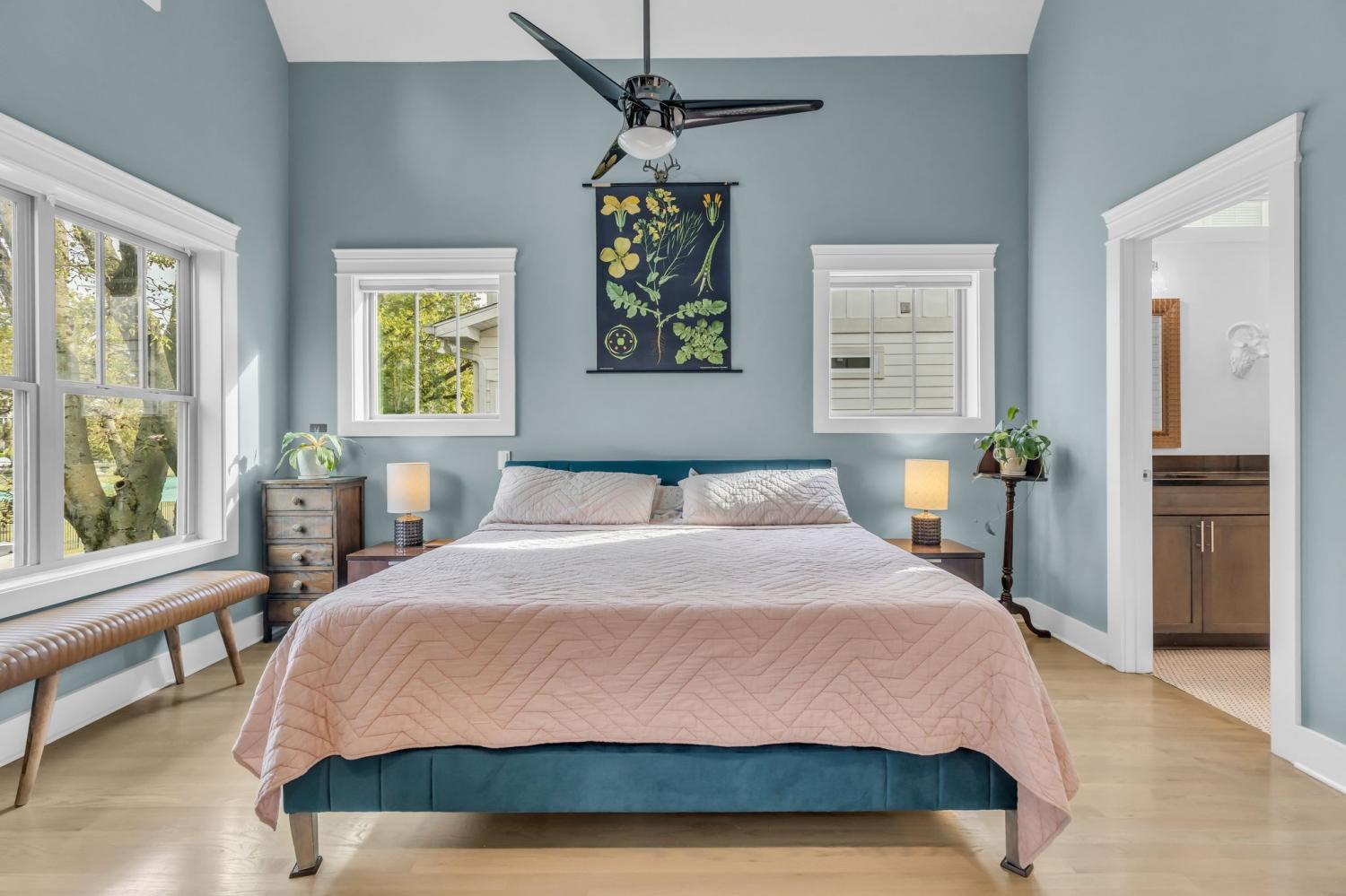 Prime location! This one-owner home is just a short walk from 12 South, Belmont, Vanderbilt, Edgehill Village, Hillsboro Village, and Music Row. The green space directly across the street offers a balance between nature and modern convenience. The peaceful primary suite has vaulted ceilings, a spacious walk-in closet, and park views. 3rd-level suite w/ wet bar & full bath is currently used as a music/recording studio, which was custom-built w/ professional acoustic upgrades including rock wool insulation, double-layer sheetrock, Green Glue compound between all 2nd floor ceilings, and an insulated interior wall. The chef’s kitchen w/ Bosch gas range + appliances, & KitchenAid fridge is anchored by a massive island. Home has been owner-occupied and never rented. Many upgrades include: new recirculating tankless water heater (2025), new dual-zone HVAC (2024), AirRanger UV/0.3 micron whole-house air cleaning system, new dishwasher (2024), LeafFilter gutter coverings, and Cat 5 cable access in each room. Google Fiber service available. Home also has professionally-installed permanent, customizable outdoor holidays lights! Ample street parking and 2 car parking access from alley.