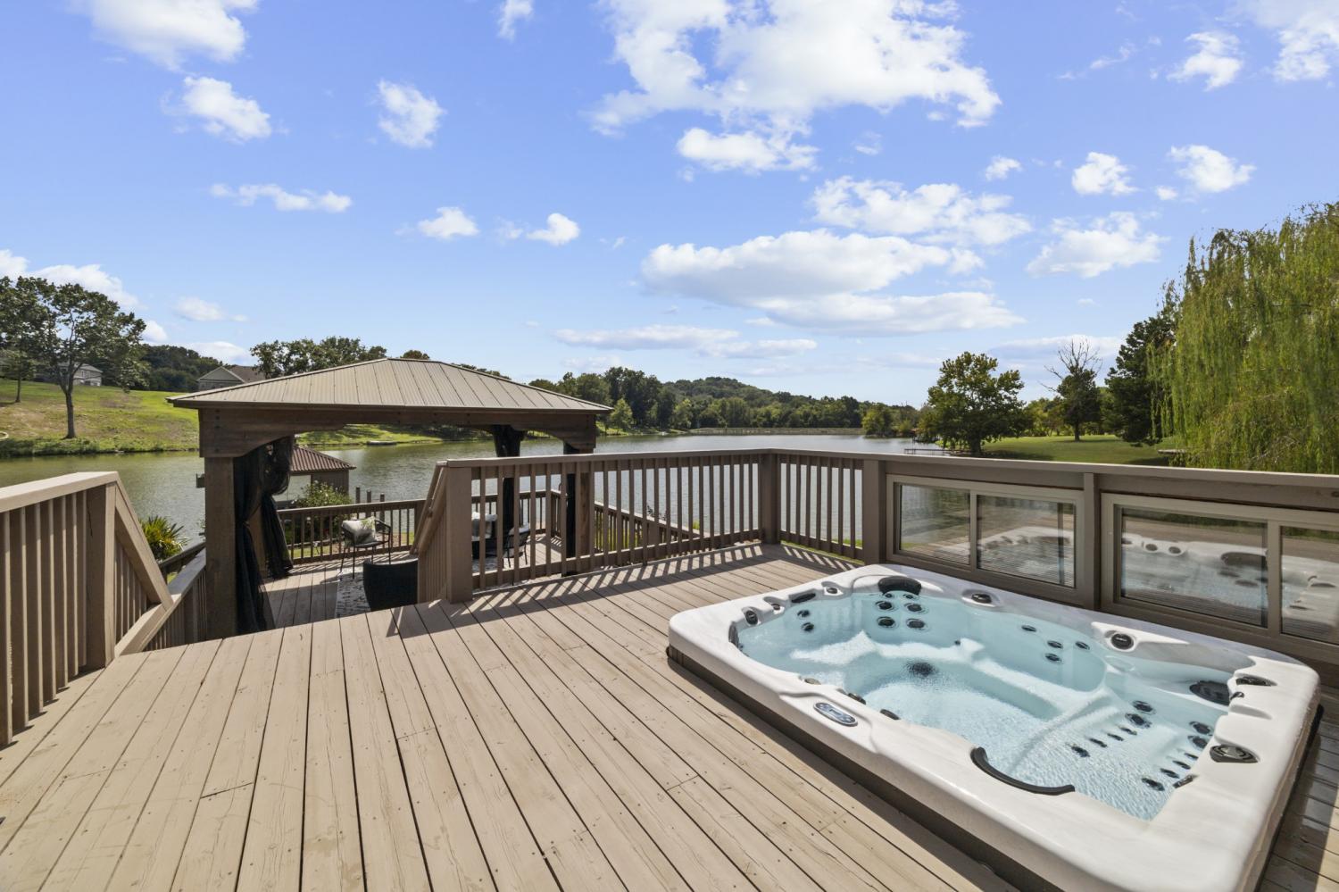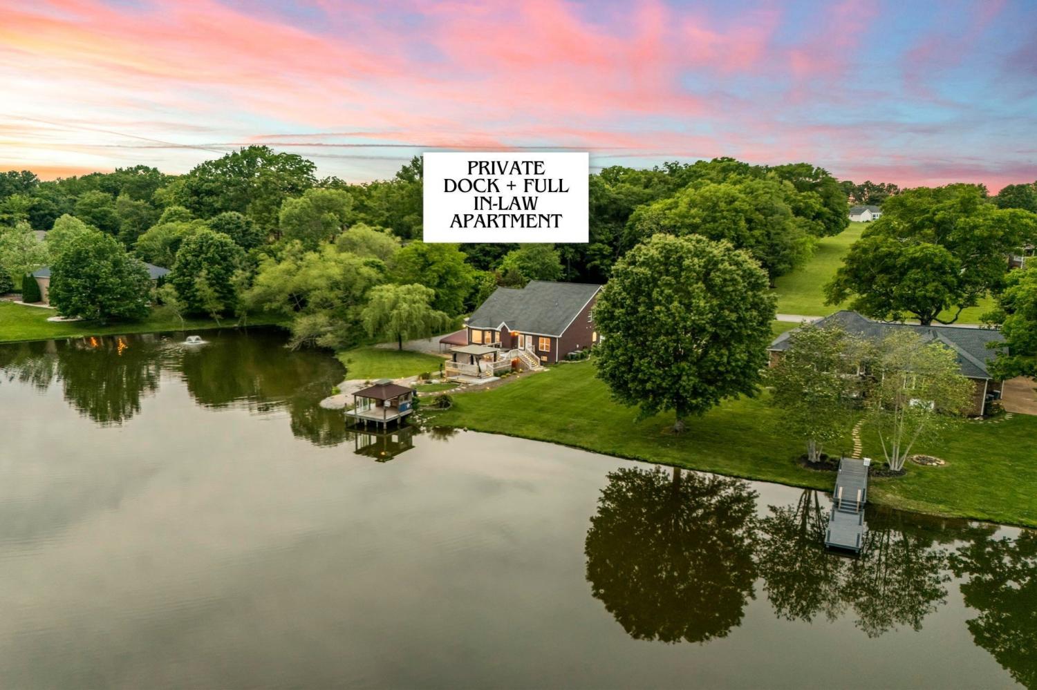 Custom Built Lakefront Living with Full In-Law Suite – Ideal for Multi-Generational living, potential rental income, or the most incredible guest space! Space for 4+ bedrooms! With a private dock for kayaking, fishing, and boating, and two fully independent living spaces, this home at this price is truly a steal! The main level offers stunning sand-and-finish hardwood floors, a spacious primary suite with serene lake views, and walk-out access to the upper deck and hot tub. Two additional guest bedrooms upstairs each include private ensuite baths. A large 3-car side-entry garage and expanded parking pad provide ample space for extra parking. Downstairs, the fully finished walk-out basement is a complete in-law apartment with its own separate entrance and driveway. This private living space includes 1 bedroom plus an office, 1.5 baths, a full kitchen, living room, laundry area, and a 3-car covered carport. Designed with accessibility in mind, the zero-step entry ensures ease of use for all. Additional features include a safe room, hidden room, and generous storage throughout. An interior staircase connects both levels, offering flexibility and convenience while preserving privacy when needed. Start your mornings in the breakfast nook overlooking the water, and unwind in the evenings with nature’s show: bald eagles, herons, turtles, ducks, deer, beavers, migrating birds, and fish jumping which is all visible from your deck or dock. Ready to build community? This HOA offers the most fun and unique events- including poker by boat on the lake! Enjoy peaceful lakeside living just minutes from all that Spring Hill has to offer. Homes with this level of flexibility, natural beauty, and thoughtful design are rare. Don’t miss your chance to make it yours! UC with a 48 hr kickout clause- continue to show!
