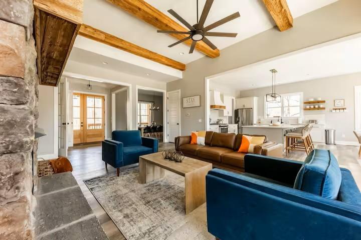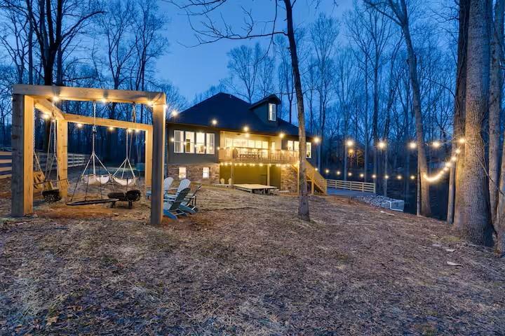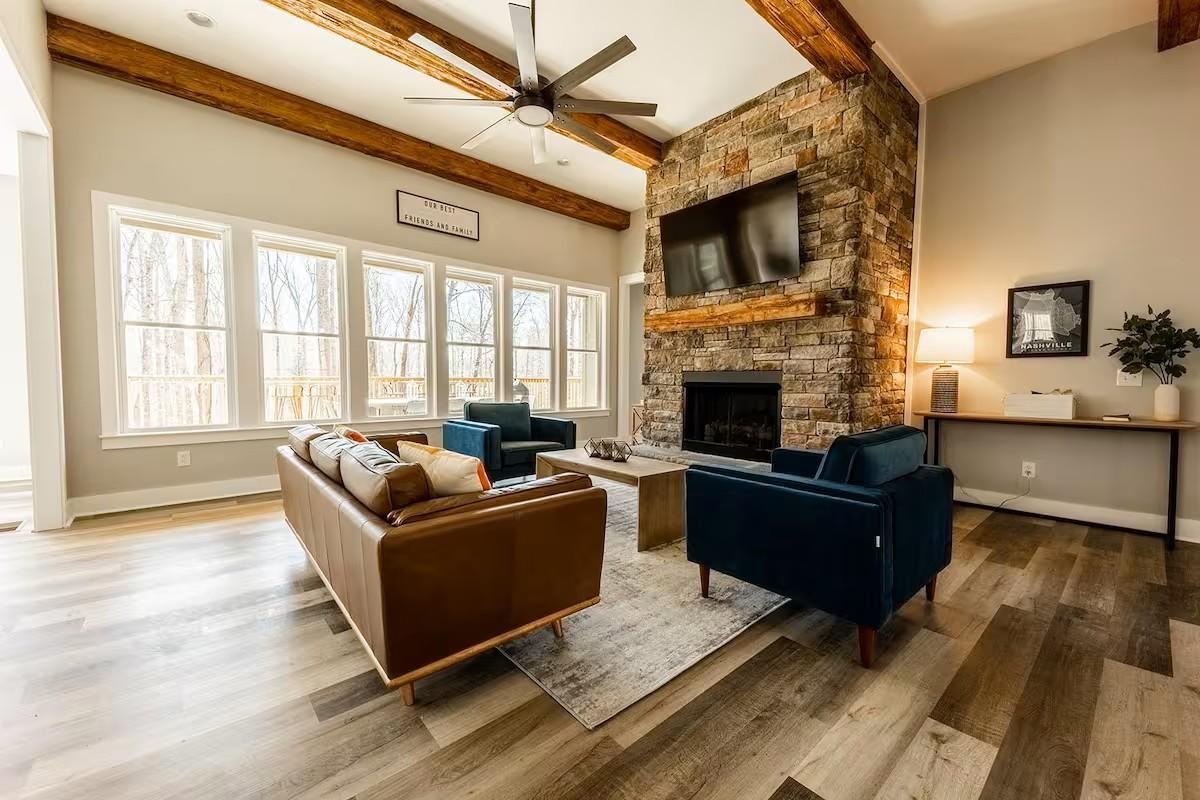 Discover the tranquility of state-park living—right at home! Nestled on a 1.27-acre wooded lot, this property sits well off the road, offering privacy, peace, and a true connection to nature. Enjoy daily sightings of deer, turkeys, and songbirds, while quiet streets invite evening strolls and outdoor adventure. Canoeing, fishing, kayaking, and miles of scenic trails are just minutes away at Montgomery Bell State Park. Inside, more than 3,400 sq ft of comfort and thoughtful design await: Spacious Kitchen: Granite counters, ample cabinetry, and a sunny breakfast area flow seamlessly into the family room with 10-ft ceilings, a stone fireplace, and oversized windows. Main-Level Suite: The primary suite is conveniently located downstairs, while upstairs features three generous bedrooms, two full baths, and a versatile bonus room. Stylish Finishes: LVP flooring, tile accents, 8-ft entry doors, and a welcoming foyer create an elegant, inviting feel. All appliances remain for convenience. Outdoor Living & Functionality: Relax or entertain on the covered deck overlooking your private backyard. The four-car basement garage and finished rec room provide incredible flexibility, storage, and entertainment options. Turnkey & Income Producing Airbnb, Short Term Rental: This home comes fully furnished and equipped, making it truly move-in ready. It has also been successfully operated as a short-term rental (Airbnb), generating over $102,000 in gross revenue in the past 12 months—a rare opportunity to own both a dream residence and an income-producing property. Ideal Location: Just 25 minutes to Downtown Nashville for dining, music, and nightlife—while still enjoying the peace and privacy of Kingston Springs.