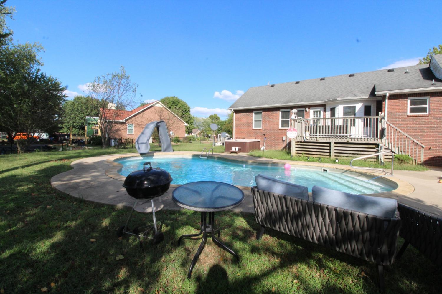No HOA, 1 level living with bonus room and In-laws suite. Split floor plan with spacious Living room, Master has trey ceiling, Bath has His and Hers, walk in closets, Large Bonus room with gas fireplace. Fenced back yard with inground pool and hot tub. Hot tub needs to be fixed.
