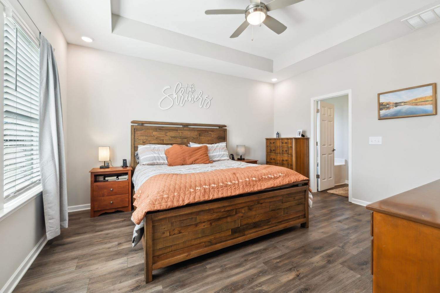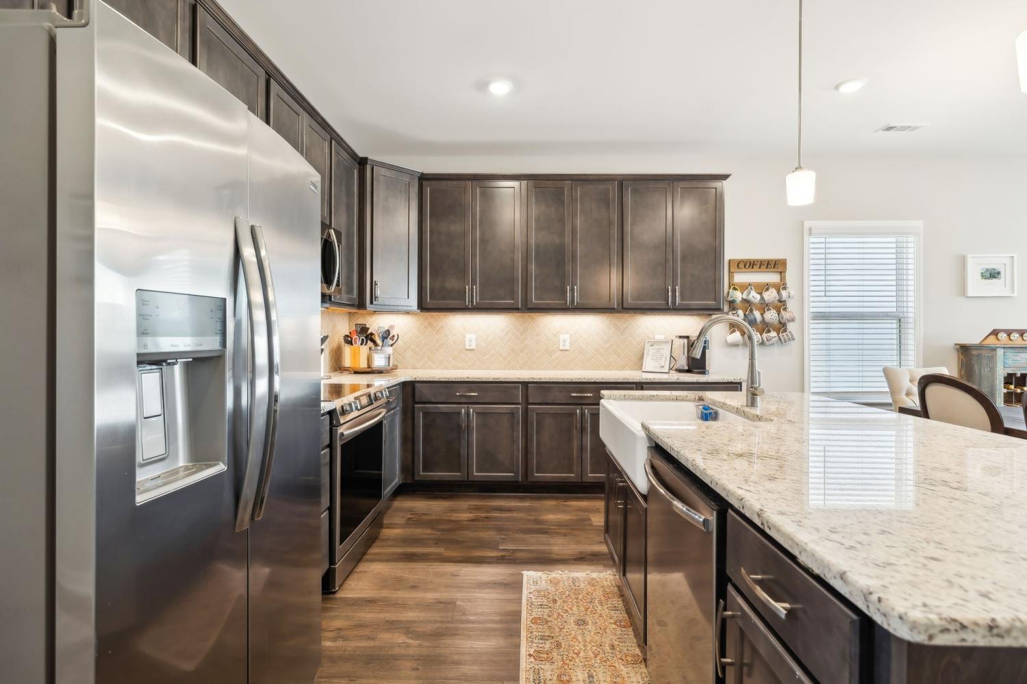 This could be your new home before the holidays and the seller is offering HUGE Buyer incentives to help make that happen! This upgraded 4BR/2.5BA, 2,569 sq. ft. home was built just 2 years ago and offers a downstairs primary suite, open floor plan, arched doorways, iron stair spindles, and luxury vinyl plank flooring. The fenced backyard backs to green space and a walking trail (no rear neighbors) and features an extended covered patio perfect for year-round enjoyment. A must have 3 car garage with expanded driveway, extra large walk-in attic storage, and all-brick construction add value and convenience. Zoned for award-winning schools! Seller will contribute $10,000 toward buyer closing costs with acceptable offer, PLUS our preferred lender will add 1% of purchase price (up to $5,490) toward closing costs or a rate buy-down for a possible total of $15,490 in incentives! wow! Get started today with Stephanie Forrest at CMG Financial, 615-474-5628, sforrest@cmgfi.com. Don't wait for new construction. This one is ready now and priced to sell!