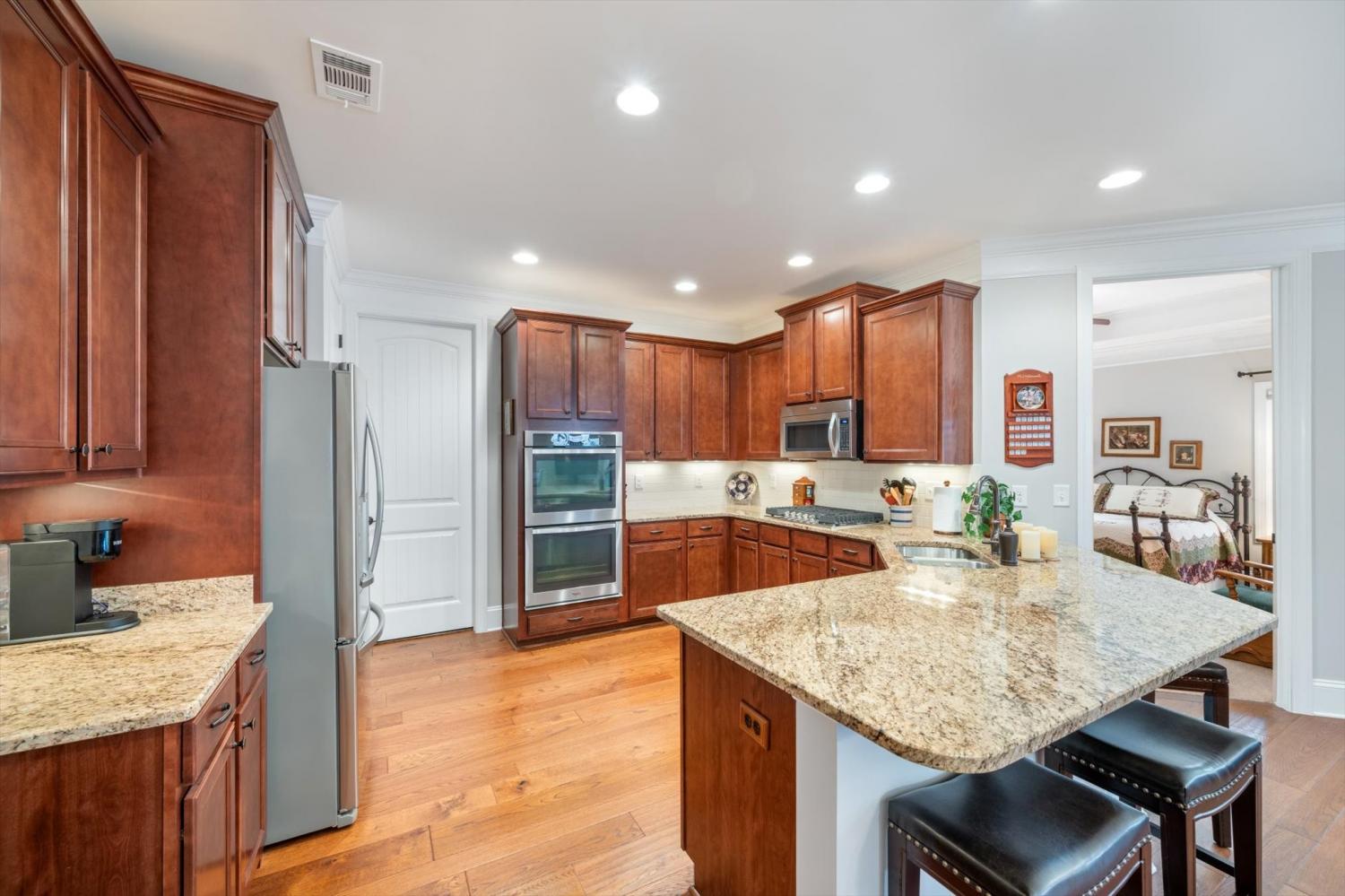 Welcome to 3067 Kirkland Circle in the gated community The Village. The meticulously kept home features 3 bedrooms - primary suite downstairs, 3 bathrooms, bonus room, and a screened in porch with trex deck. It also features a soaring foyer, real hardwood floors, extended ceilings, extended cabinets, SS appliances, extended doorways, and an incredible amount of storage. The home backs to community space to add to the peacefulness. The stunning community also offers sidewalks with mature landscape throughout, and front yard mowing through HOA. Being in Providence, the ease to shopping, restaurants, and interstate is unbeatable.